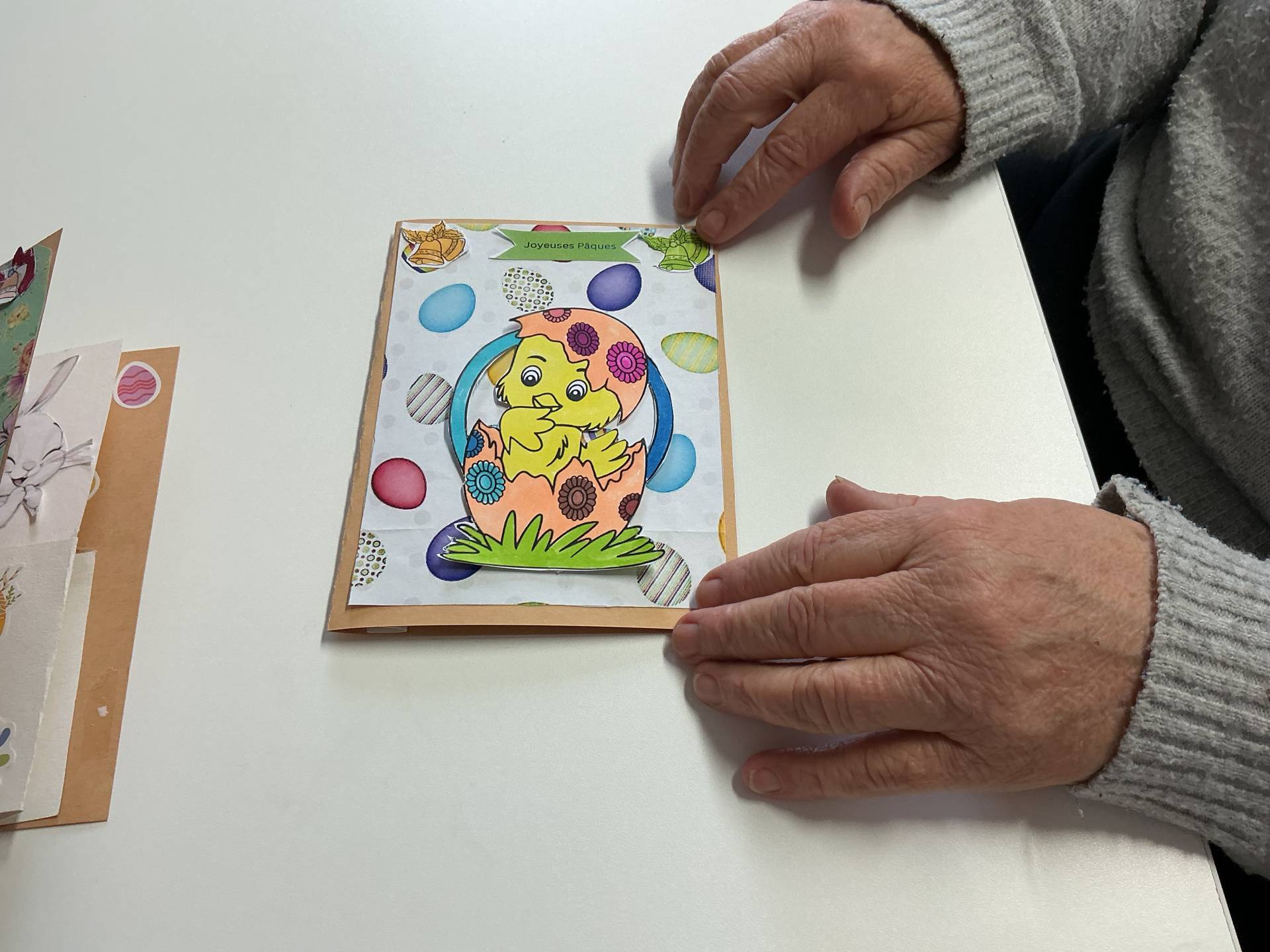 Dans le cadre de leur examen, le jeudi 26 mars un groupe d'élèves de CAPA deuxième année se sont rendus à St Quentin Fallavier accompagné par mesdames Aubert et Thibaud. Ils ont proposé à des personnes âgées de réaliser une carte sur le thème de Pâques avec à l’intérieur un mécanisme faisant apparaître un lapin lorsqu’on ouvre celle-ci.