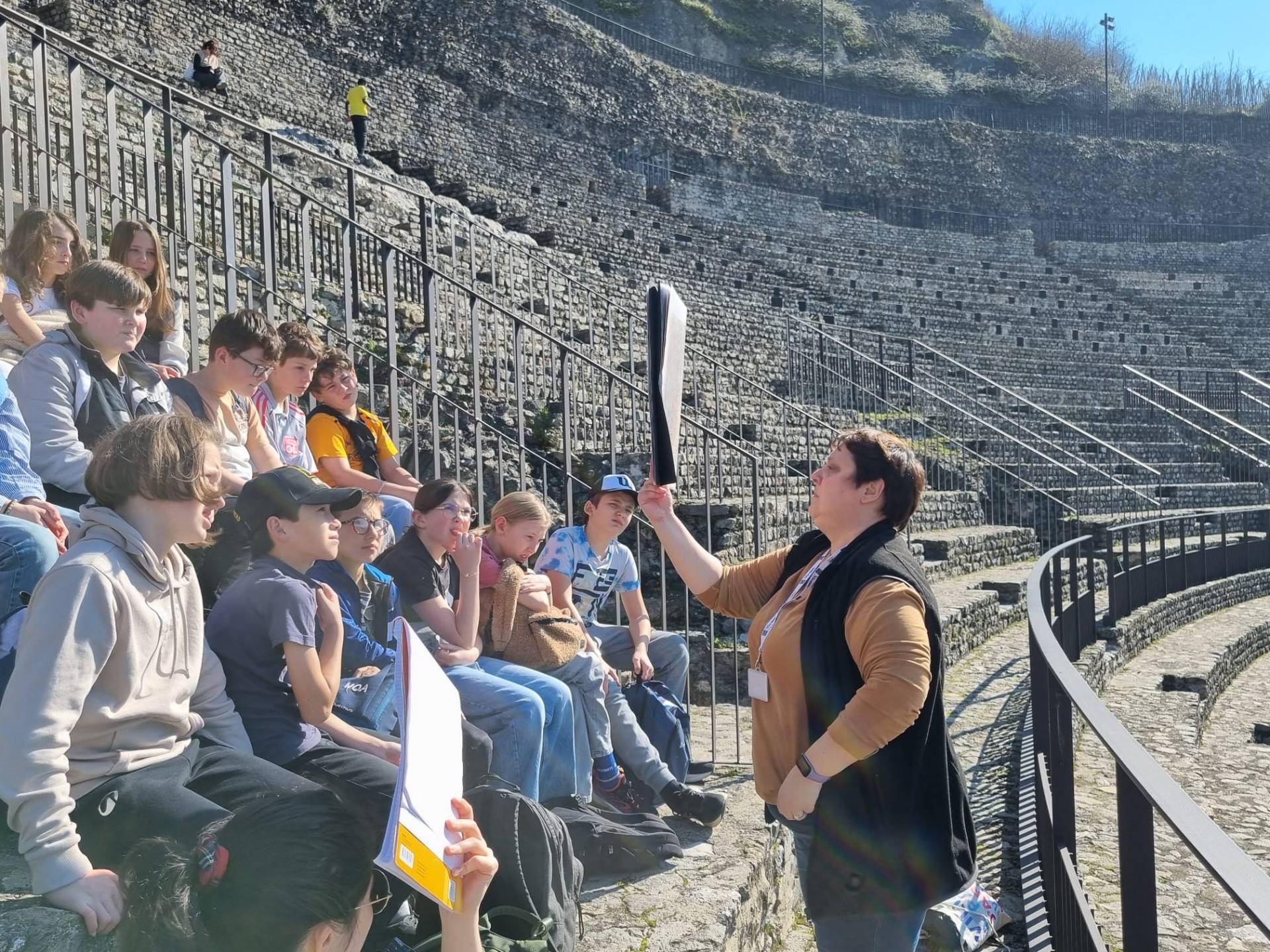 L’après-midi, la découverte s’est poursuivie avec une visite guidée du centre historique de Vienne. Les élèves ont exploré le Théâtre antique de Vienne, impressionnant témoignage de l’époque gallo-romaine.