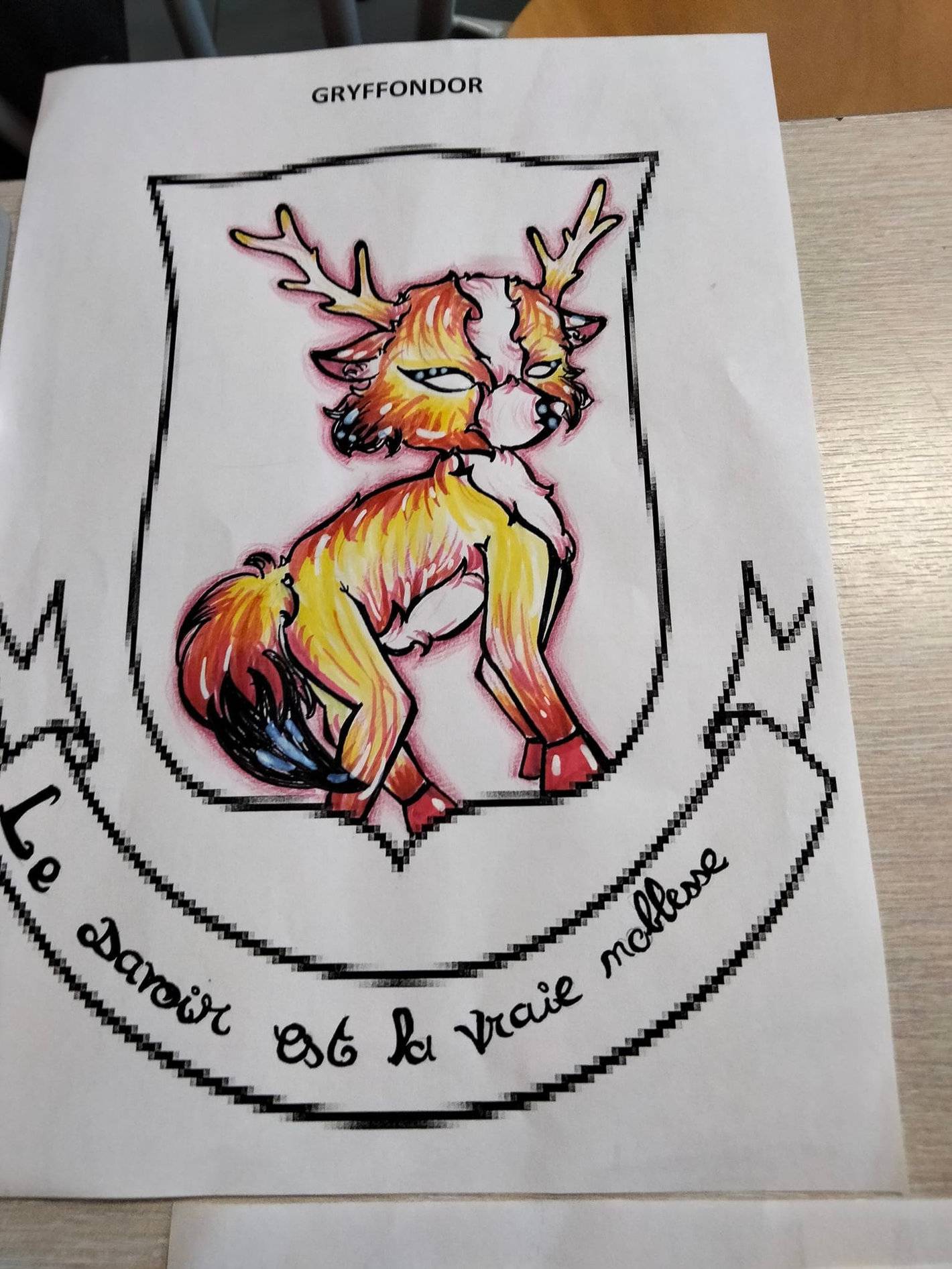 "Aujourd'hui, nous avons créé la banderole de notre maison en travaillant sur la symétrie. Nous pourrons nous en servir pour encourager notre équipe lors des compétitions de Quidditch