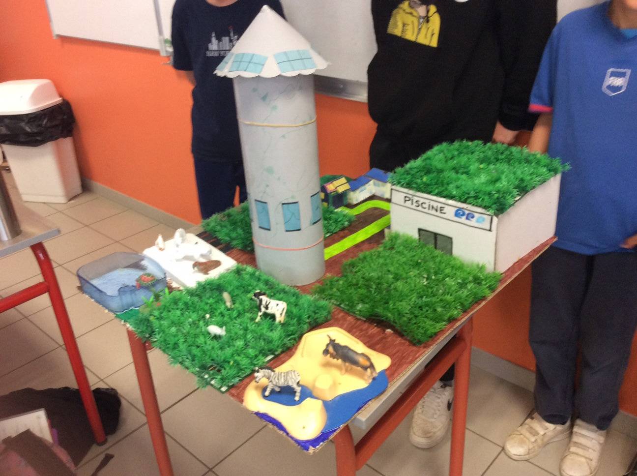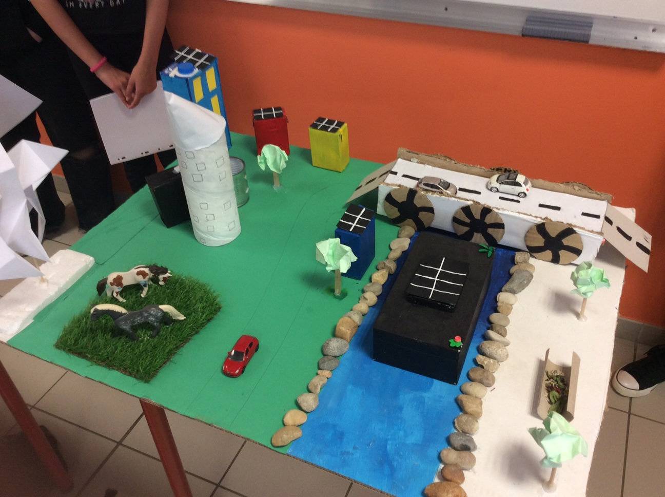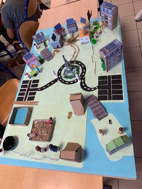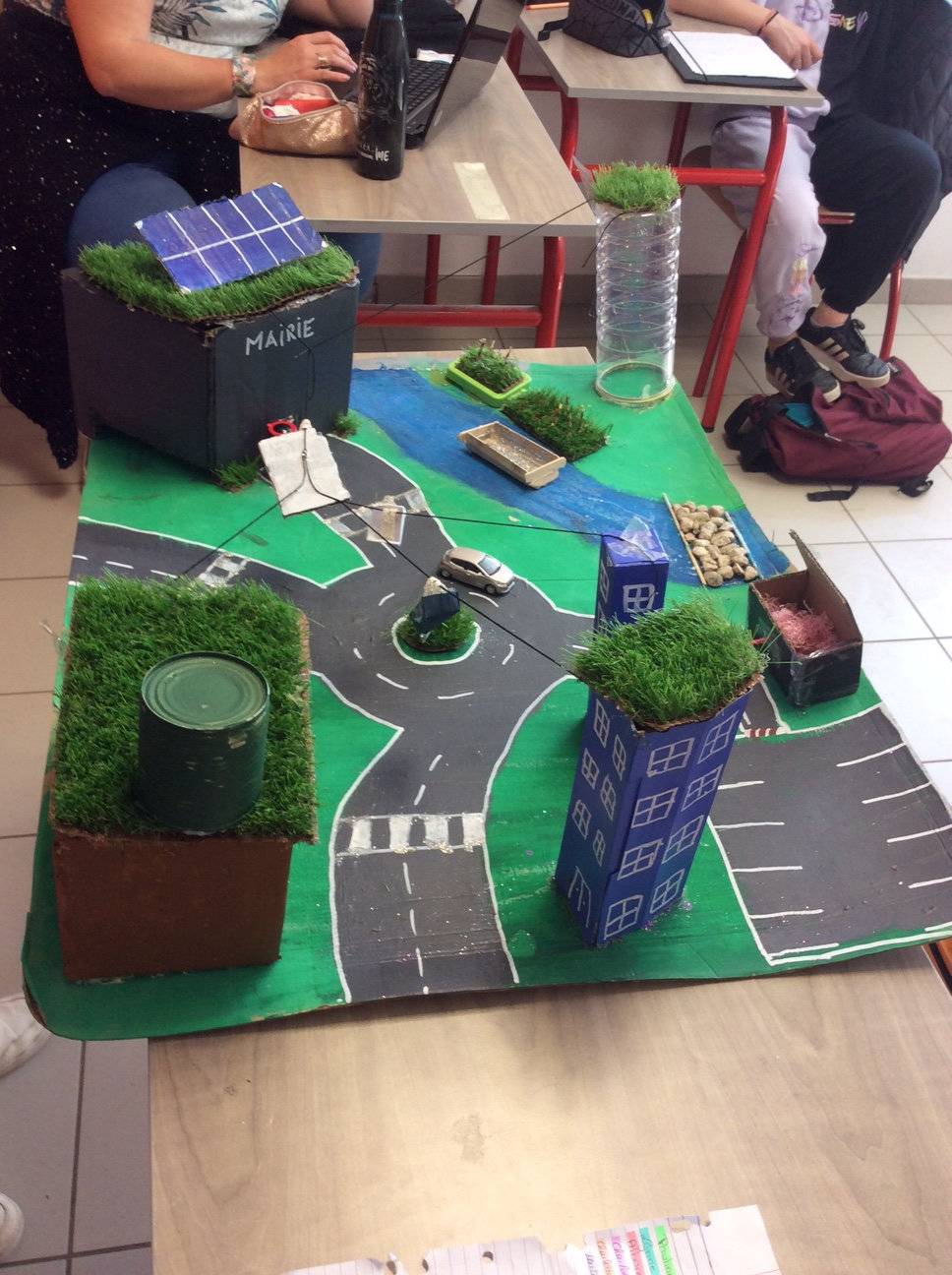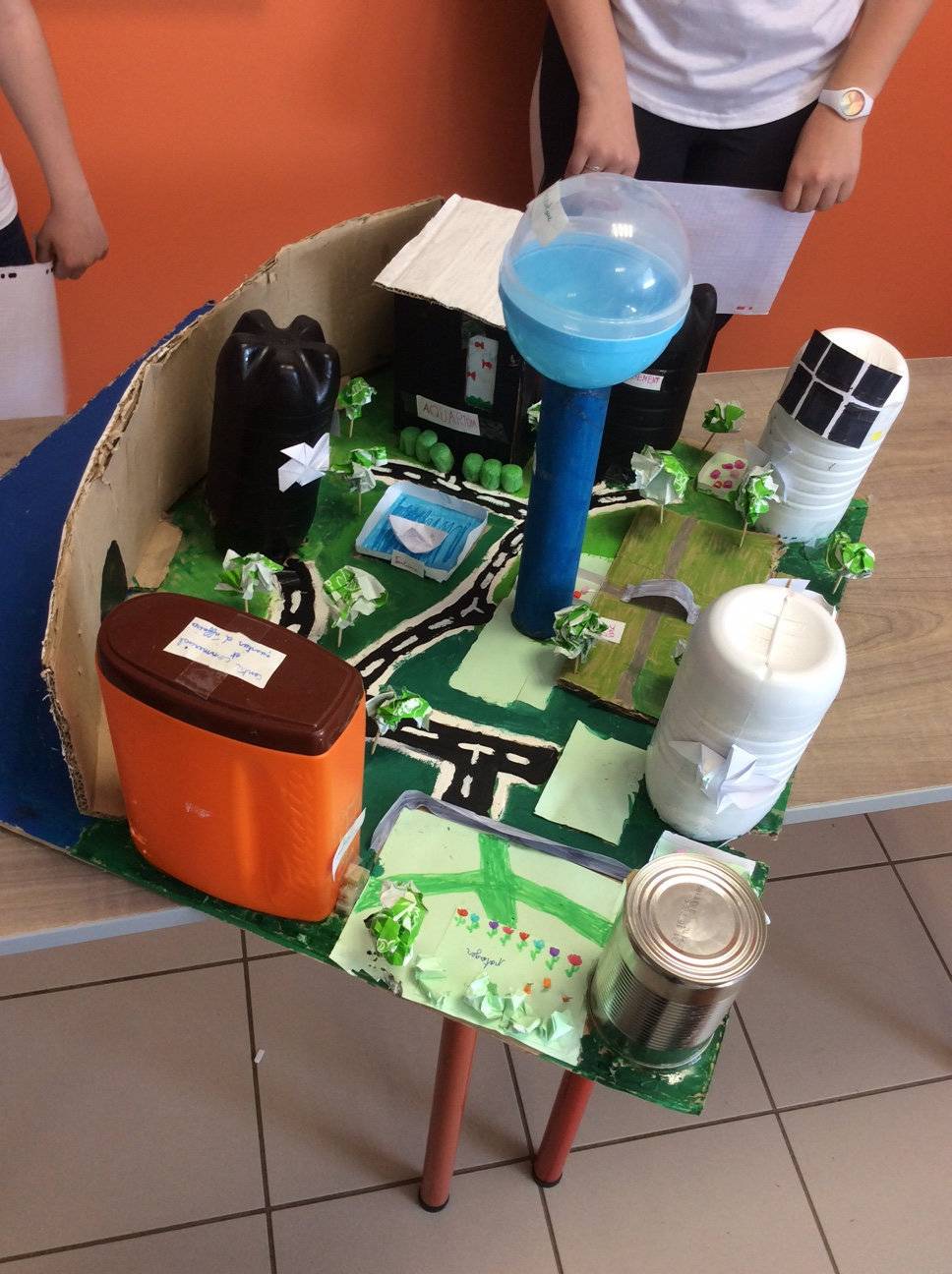 Nos élèves ont donc travaillé, seuls ou en groupes, à l’élaboration de maquettes, qui leur ont permis d’exprimer leur imagination, leur créativité, après avoir réfléchi aux différents aménagements de leur future ville sur papier. Une consigne leur était imposée : élaborer leur ville de demain avec des matériaux de récupération.