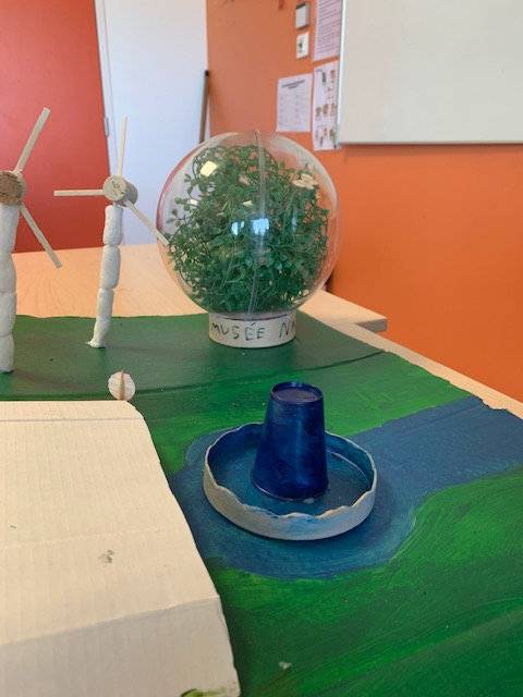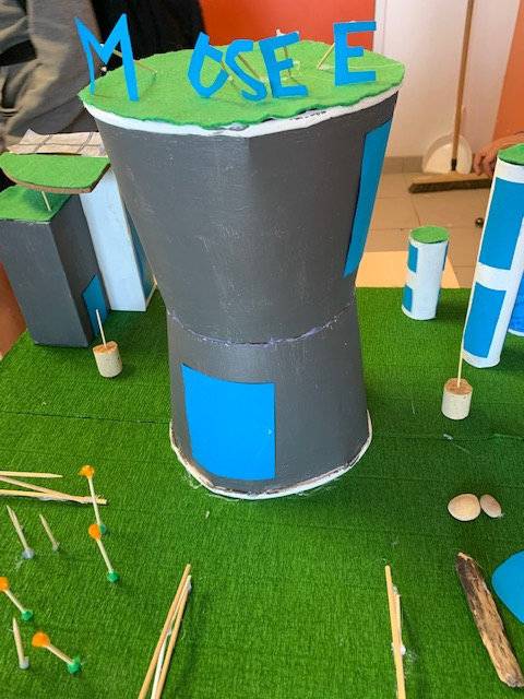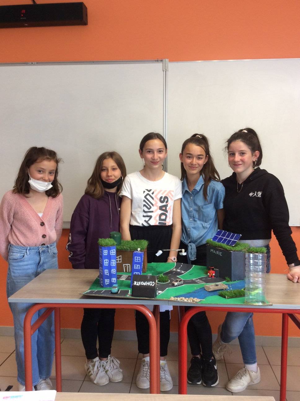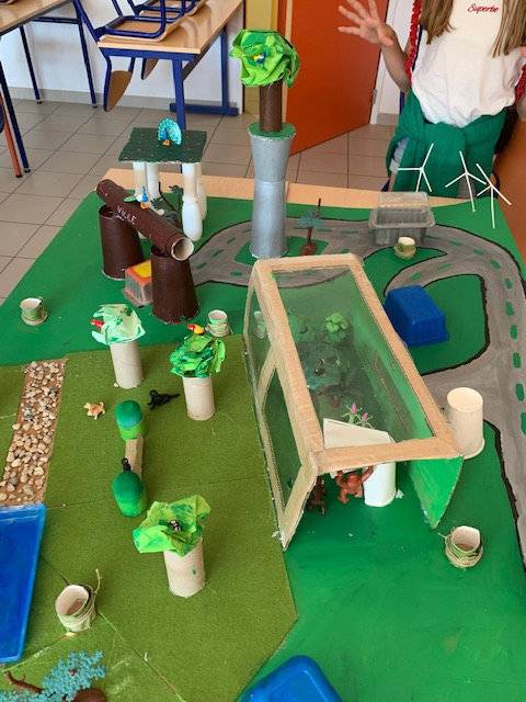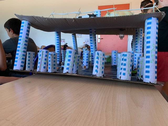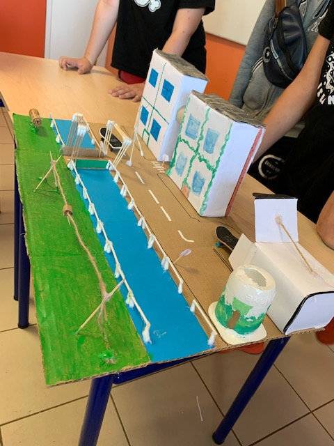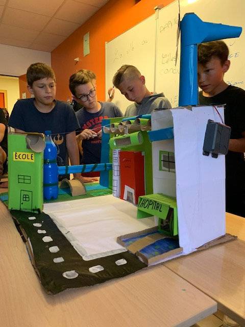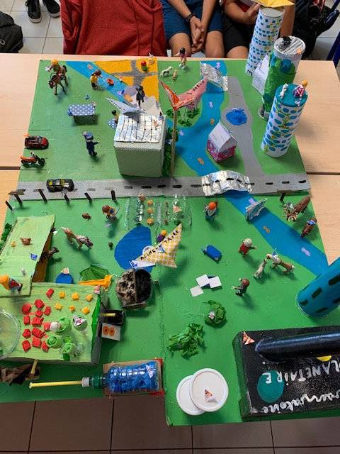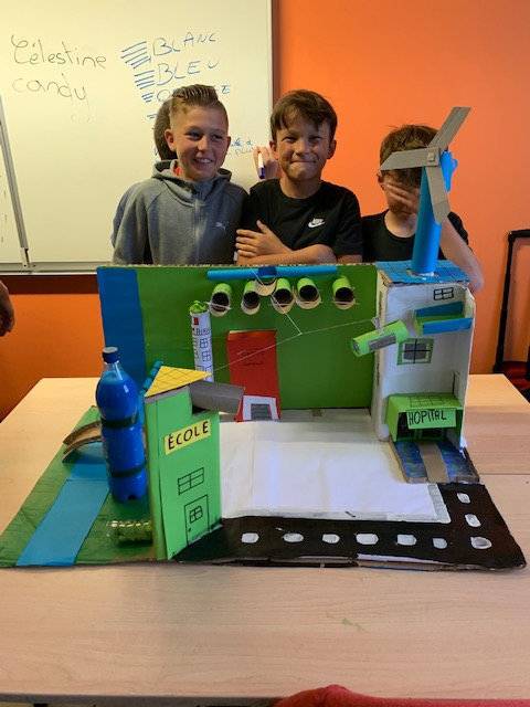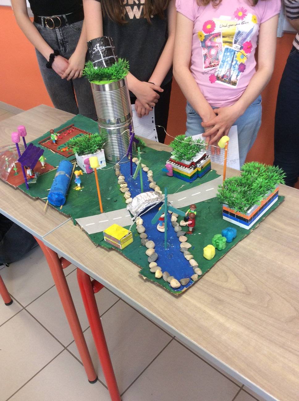 Nos élèves ont donc travaillé, seuls ou en groupes, à l’élaboration de maquettes, qui leur ont permis d’exprimer leur imagination, leur créativité, après avoir réfléchi aux différents aménagements de leur future ville sur papier. Une consigne leur était imposée : élaborer leur ville de demain avec des matériaux de récupération.
