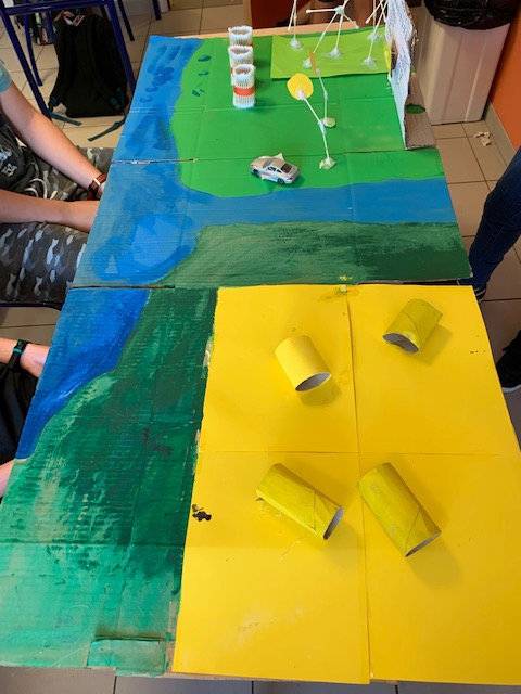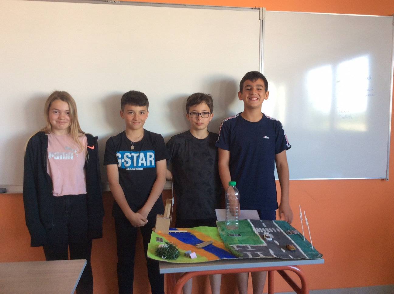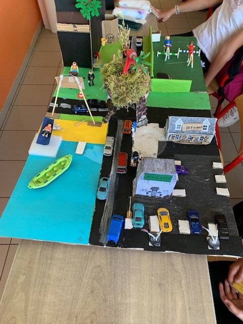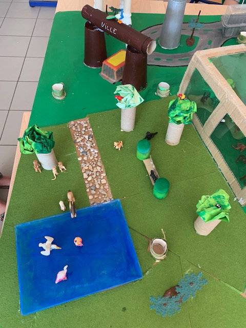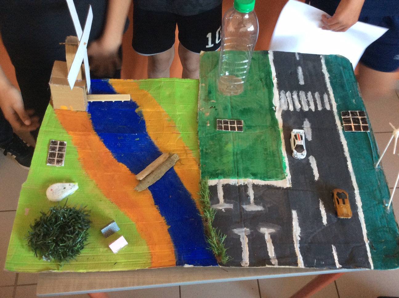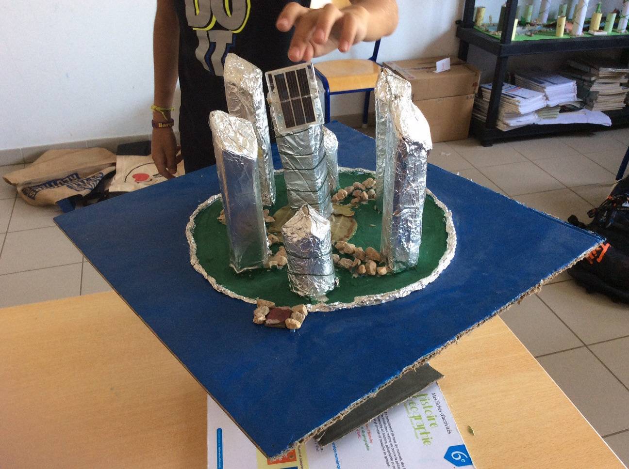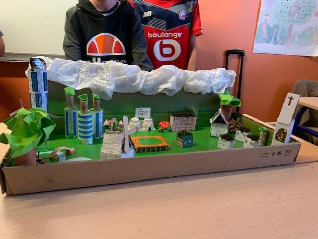 Nos élèves ont donc travaillé, seuls ou en groupes, à l’élaboration de maquettes, qui leur ont permis d’exprimer leur imagination, leur créativité, après avoir réfléchi aux différents aménagements de leur future ville sur papier. Une consigne leur était imposée : élaborer leur ville de demain avec des matériaux de récupération.