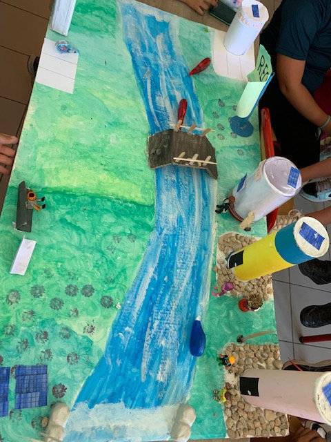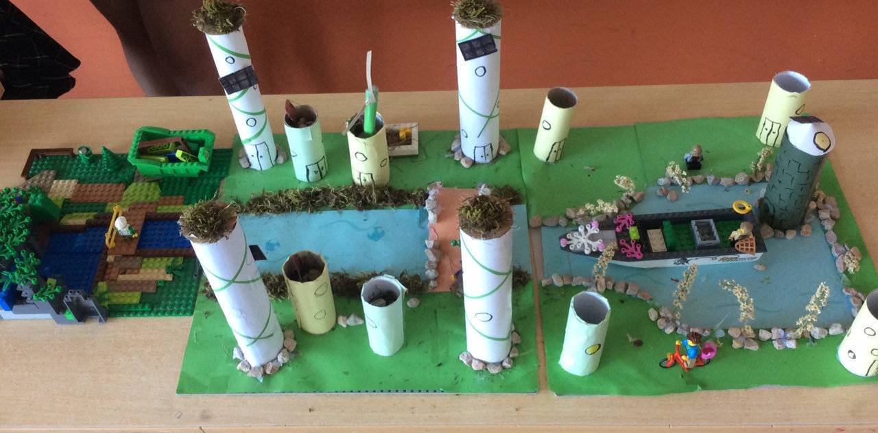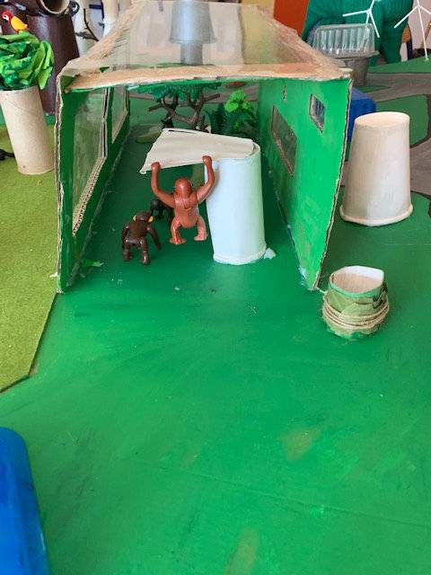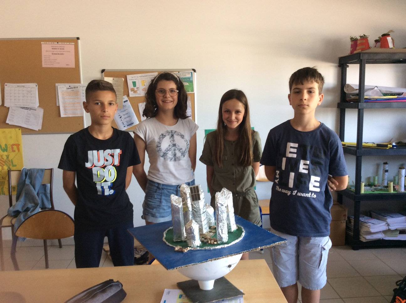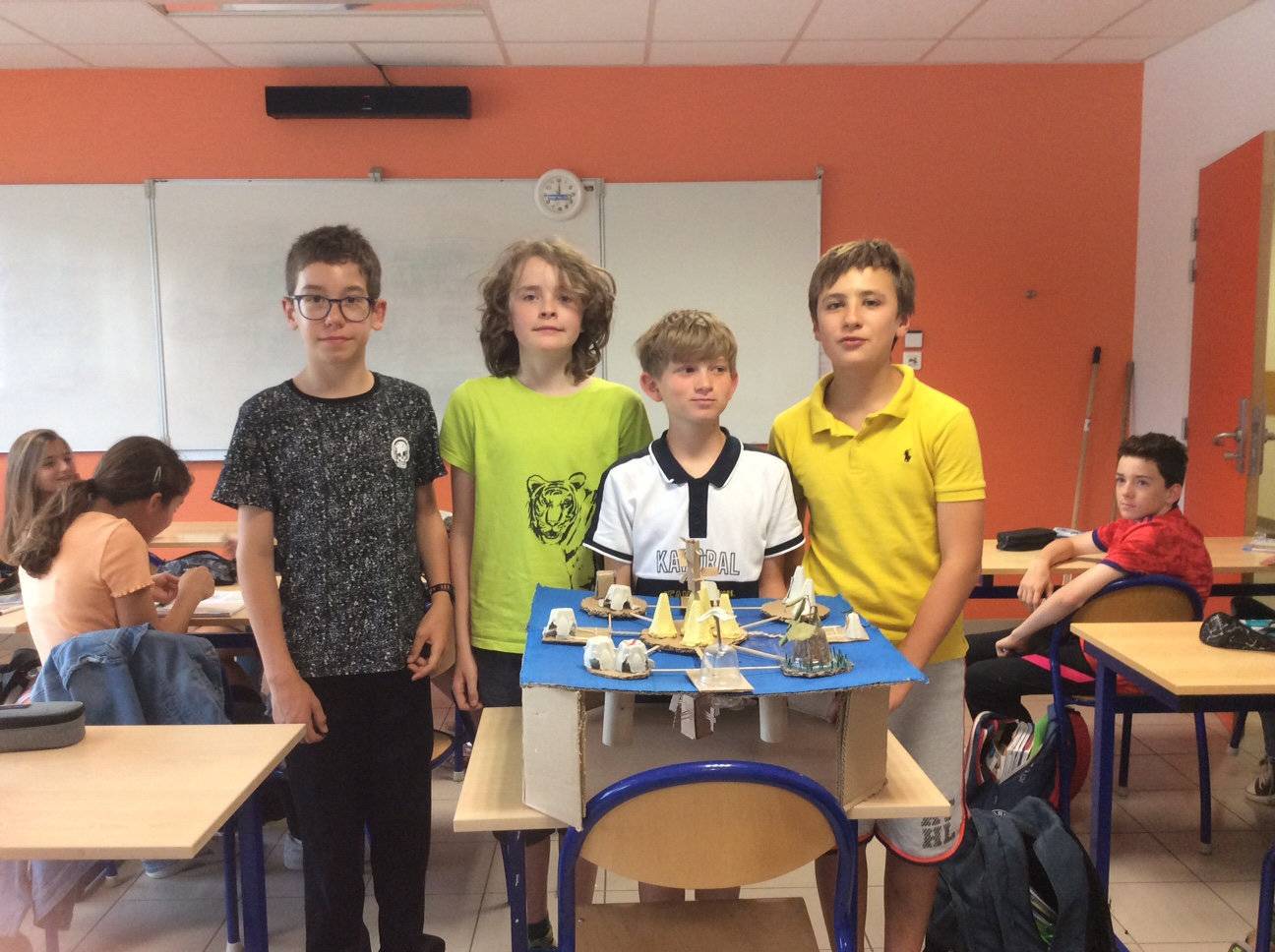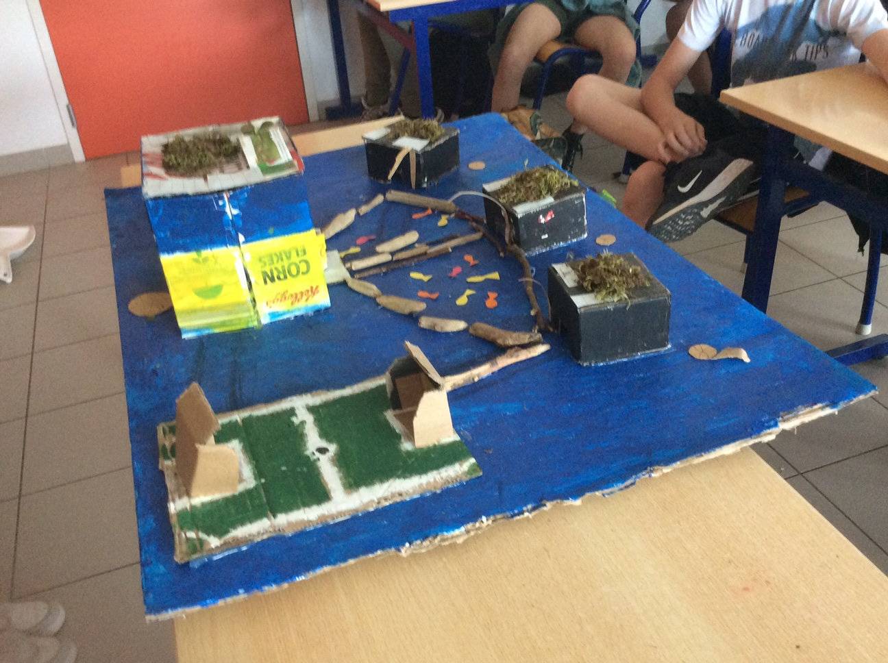 Nos élèves ont donc travaillé, seuls ou en groupes, à l’élaboration de maquettes, qui leur ont permis d’exprimer leur imagination, leur créativité, après avoir réfléchi aux différents aménagements de leur future ville sur papier. Une consigne leur était imposée : élaborer leur ville de demain avec des matériaux de récupération.