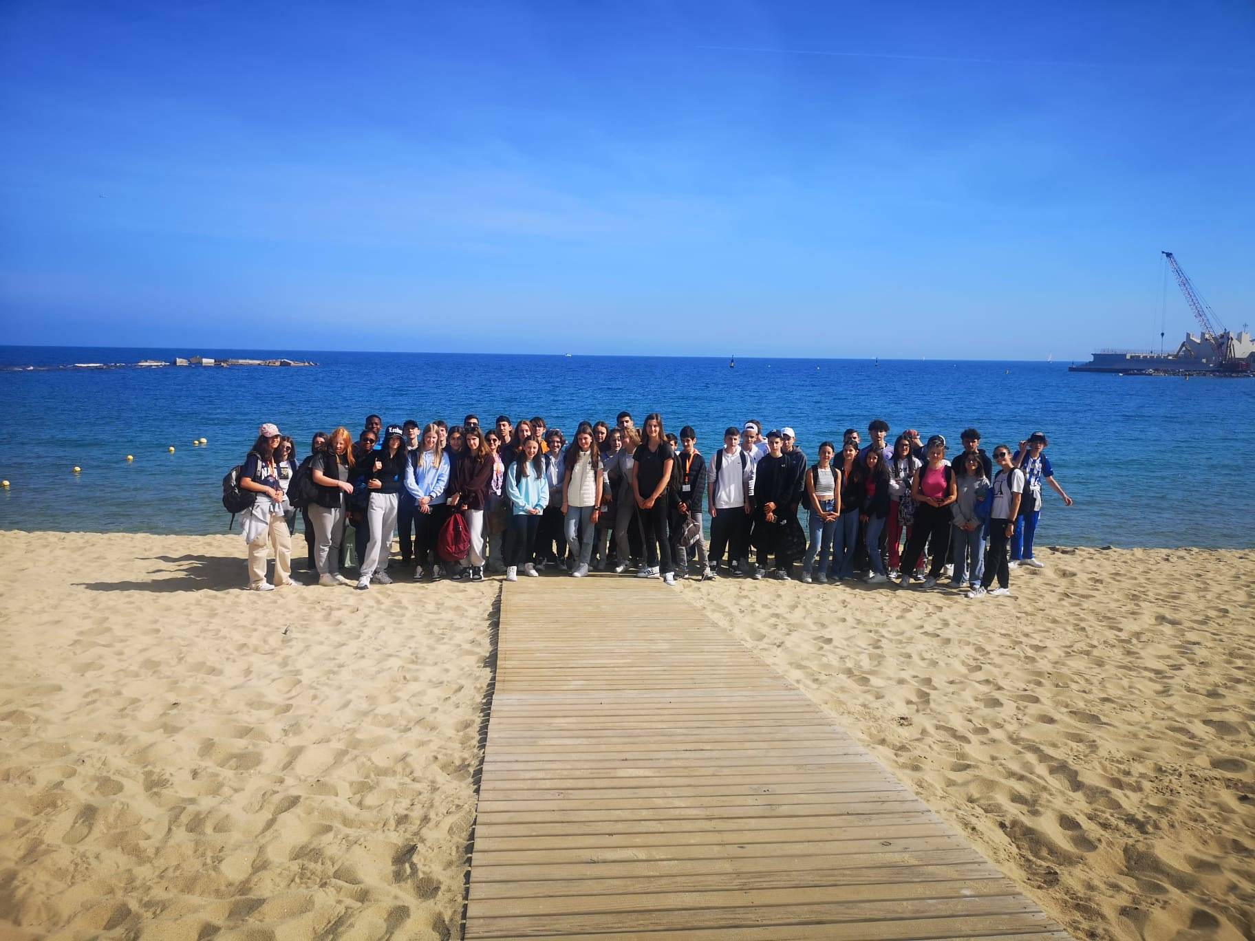 Dans les cadre de l'EPI sur l'écologie et le développement durable, les élèves de 3n1 et 3n2 sont partis à Barcelone pour découvrir quelles solutions trouve un autre pays européen pour préserver l'environnement même au sein d'un grande ville comme la capitale de la Catalogne. Pour le moment les élèves ont visité un potager urbain, le parc Güell et découvert quelques secrets de l'architecture moderniste de Gaudí pour économiser l'eau par exemple, ils ont également visité le district 22@, un ancien quartier industriel réhabilité en "ville-village". Sur un plan culturel les élèves se sont promenés sur les célèbres Ramblas, sont passés dans le quartier gothique et on passé de bons moments sur la plage ainsi que dans leurs familles hôtesses!