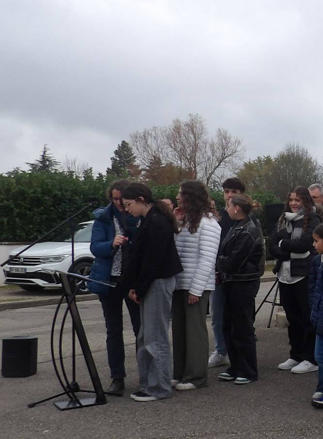 En lien avec leur programme d'histoire et le devoir de mémoire, Lily, Hanaé, Pauline, Clémence, Maëlle, Louis et Côme ont fait deux lectures de lettres de Poilus, ainsi qu'une lecture commune avec les écoliers du poème Liberté de Paul Eluard avant de chanter la Marseillaise. Un moment d'émotion et de stress pour nos lecteurs qu'ils ont réussi avec brio !