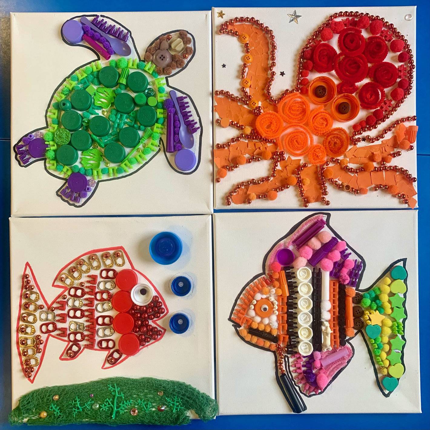 Fleurs, tortue, poissons et pieuvre: voici les oeuvres réalisées par les élèves de CAPA2 avec les enfants de la classe de CP de l'école St Augustin.