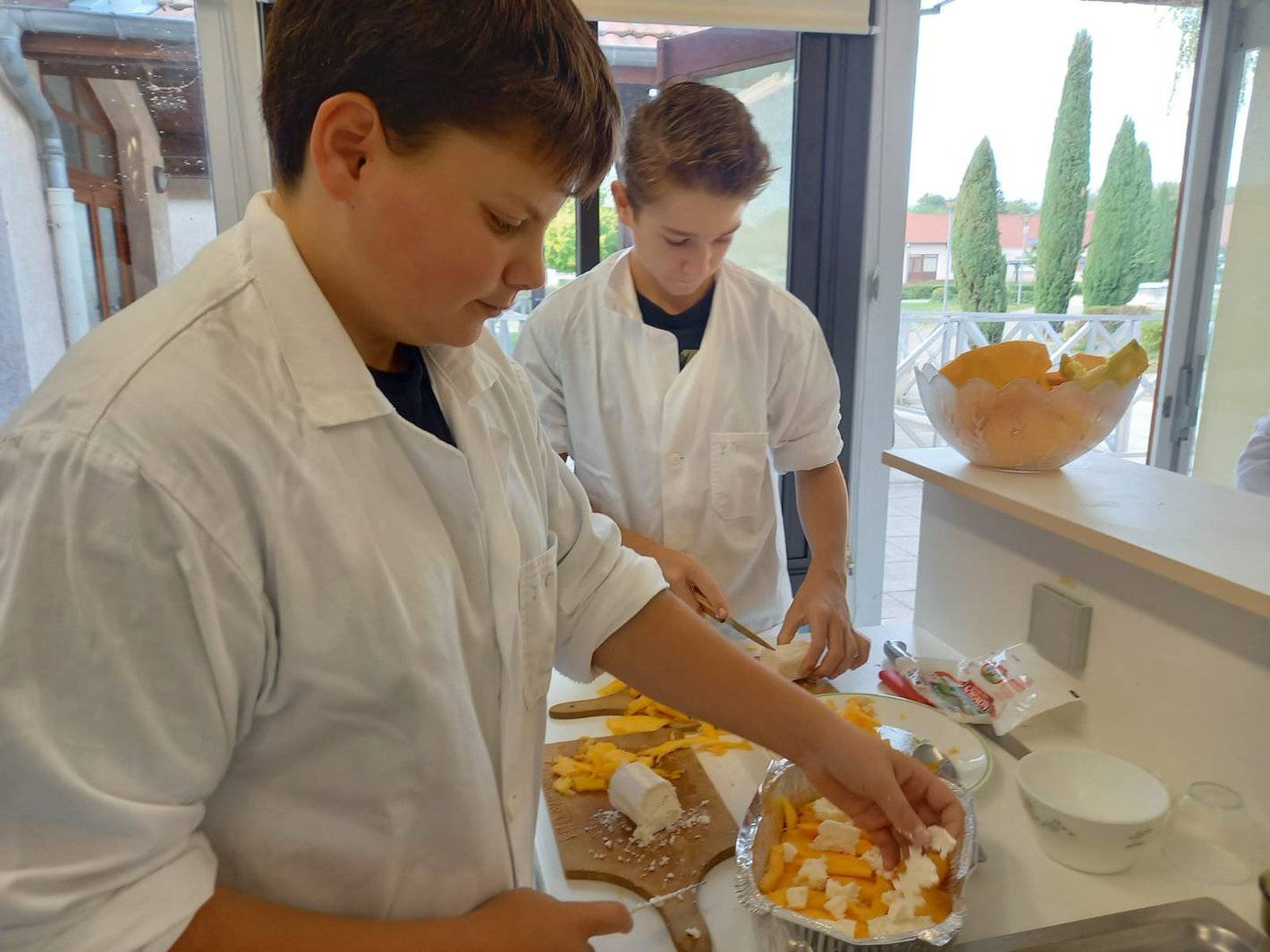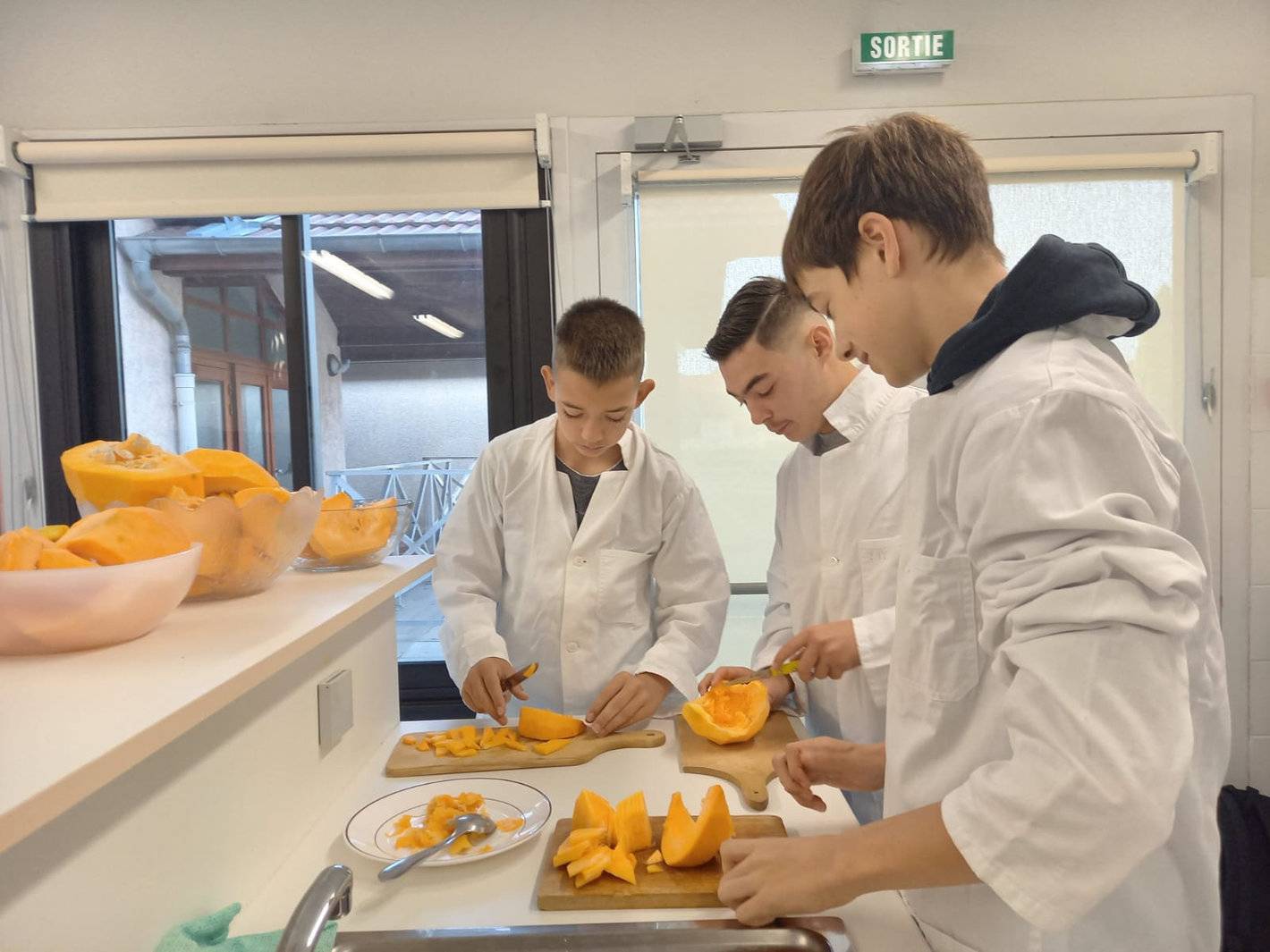 Les élèves de troisième EA3 et 4 ont cuisiné les courges, potimarron et potiron de leur jardin.