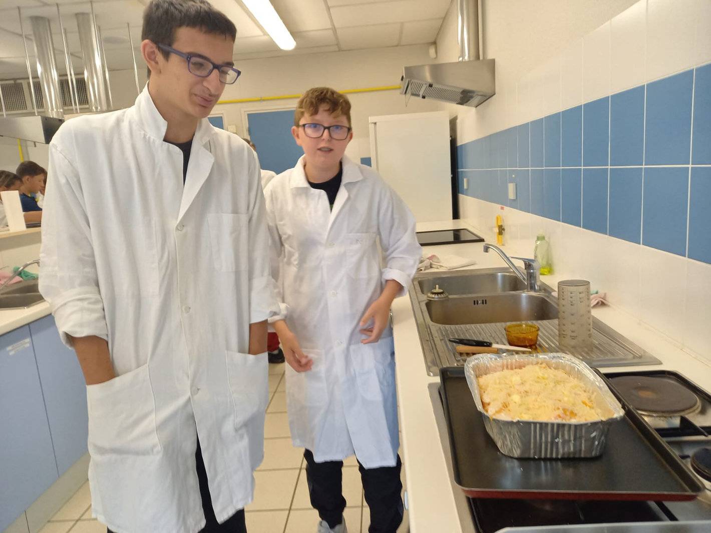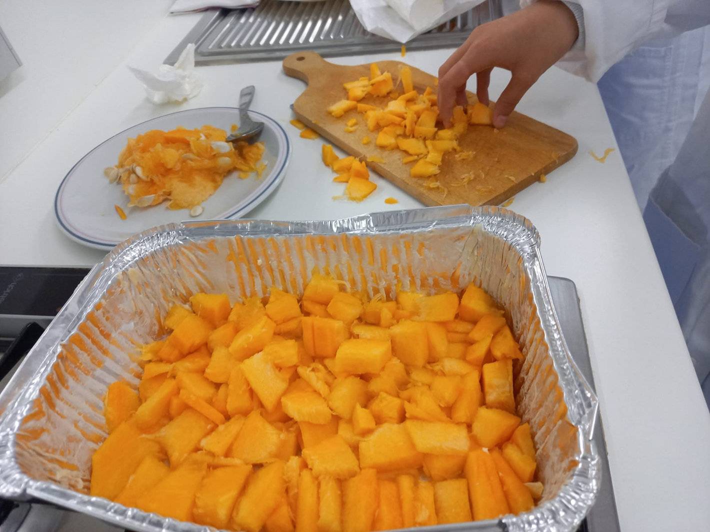Les cuisiniers ont réalisé des gratins de courges á la chèvre qu'ils ont dégusté tous ensemble á midi !!!