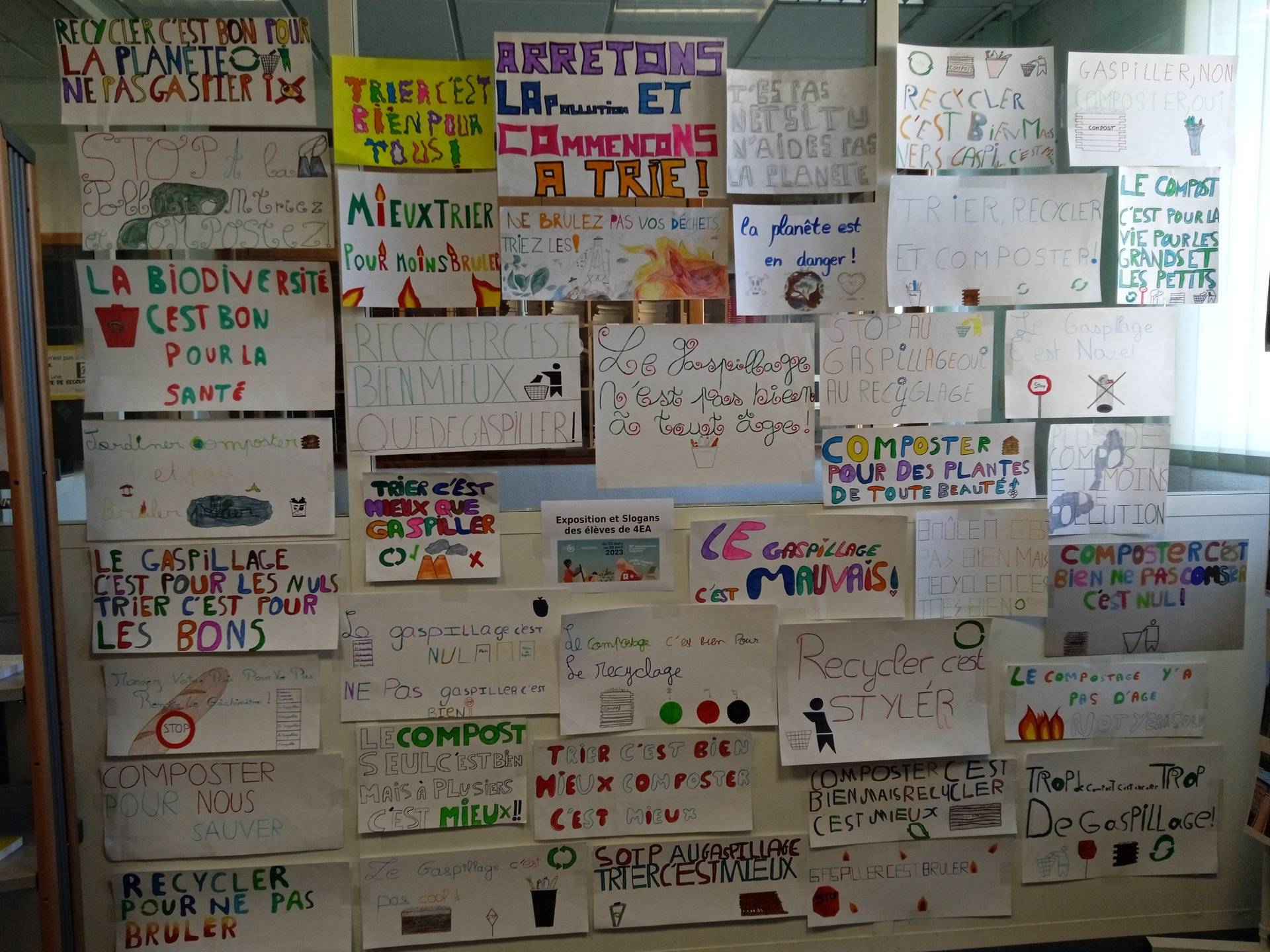 Les élèves de 4EA vous présentent une petite exposition au CDI avec leurs Slogans et quelques panneaux.