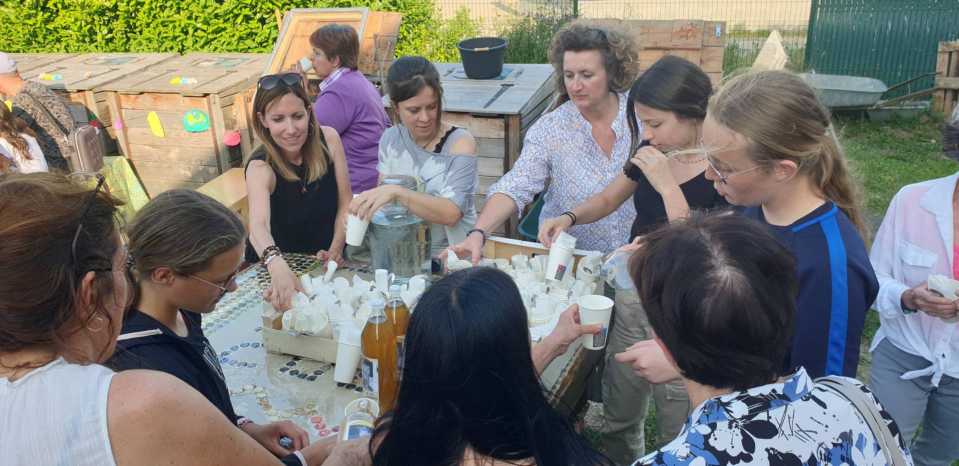 L'équipe de direction, les élèves de 4EA et leurs enseignants se sont investis dans ce projet : invitation, entretien du jardin, courses, cuisine, décoration...