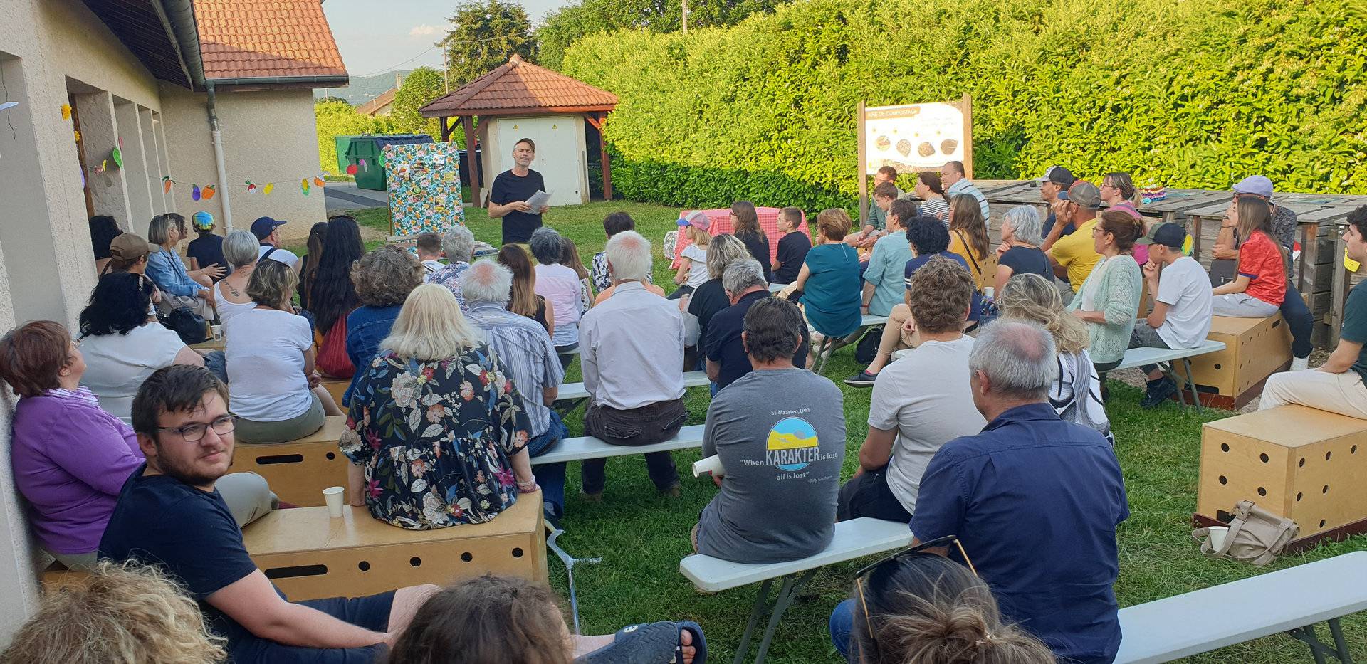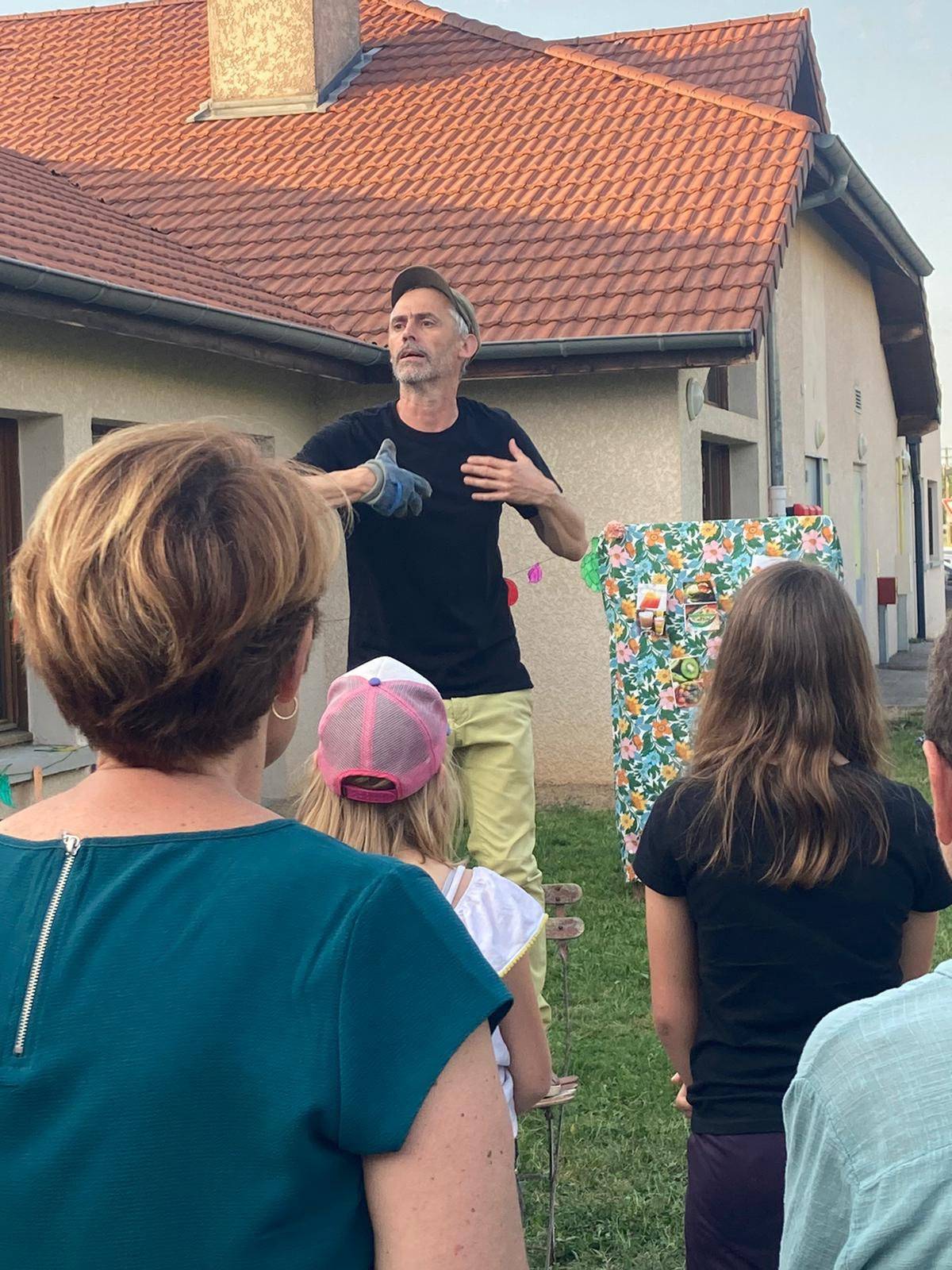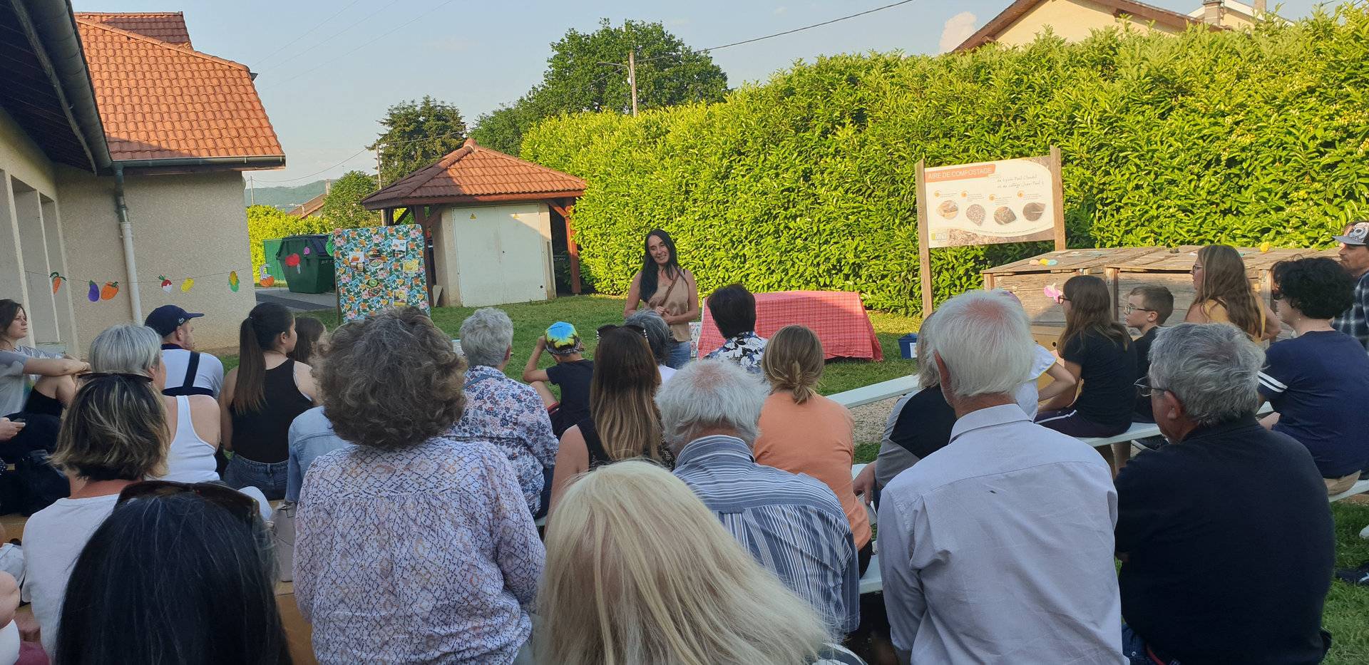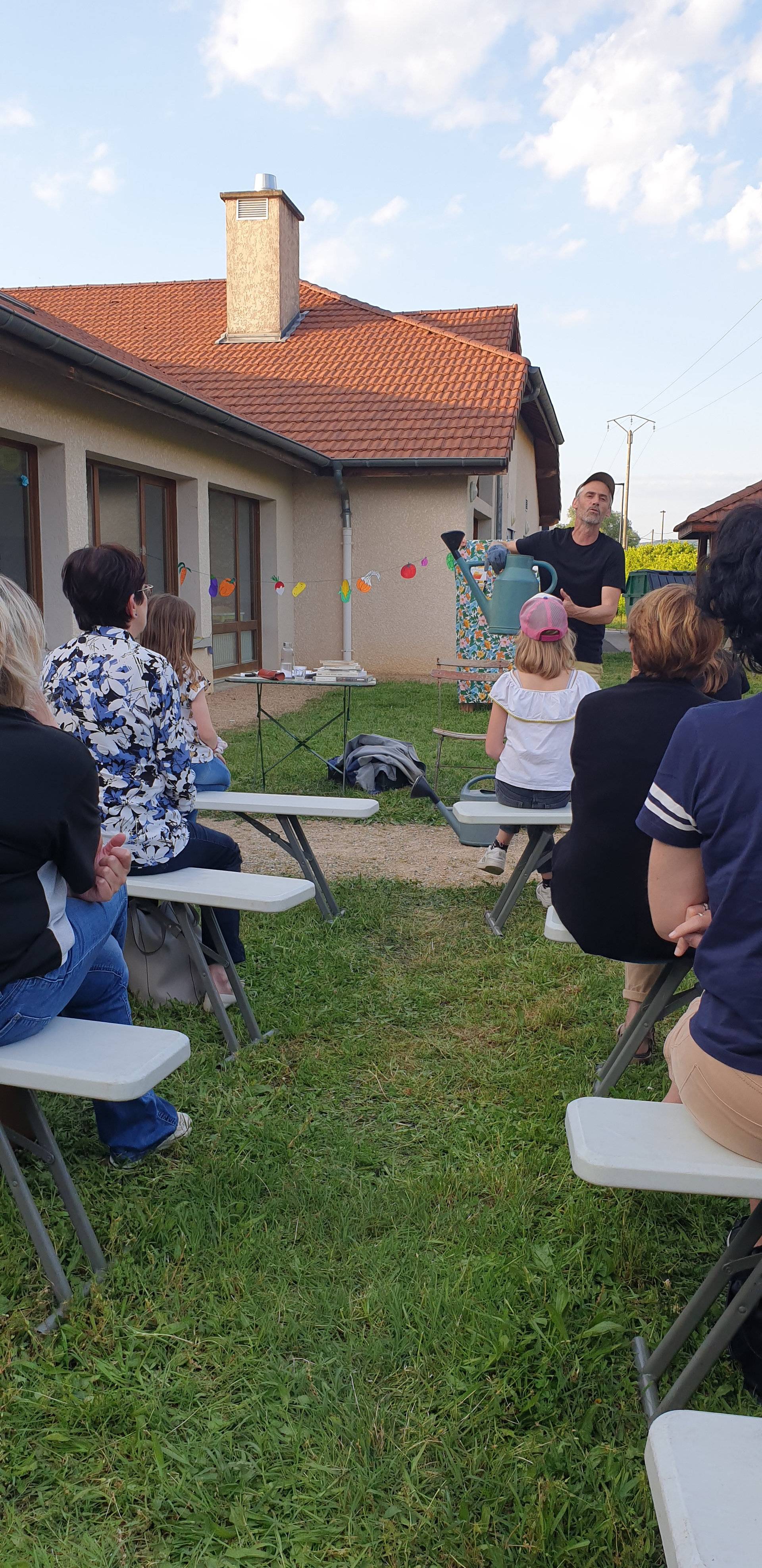 Les participants étaient nombreux: parents, élèves, enseignants, équipe de direction, membre du conseil de développement des balcons du Dauphiné, membres de la fête des possibles, acteurs de la gestion des déchets, voisins... La soirée a été très agréable, le soleil au rendez-vous, les échanges conviviaux, le spectacle amusant et poétique, les gourmandises délicieuses et fraîches.