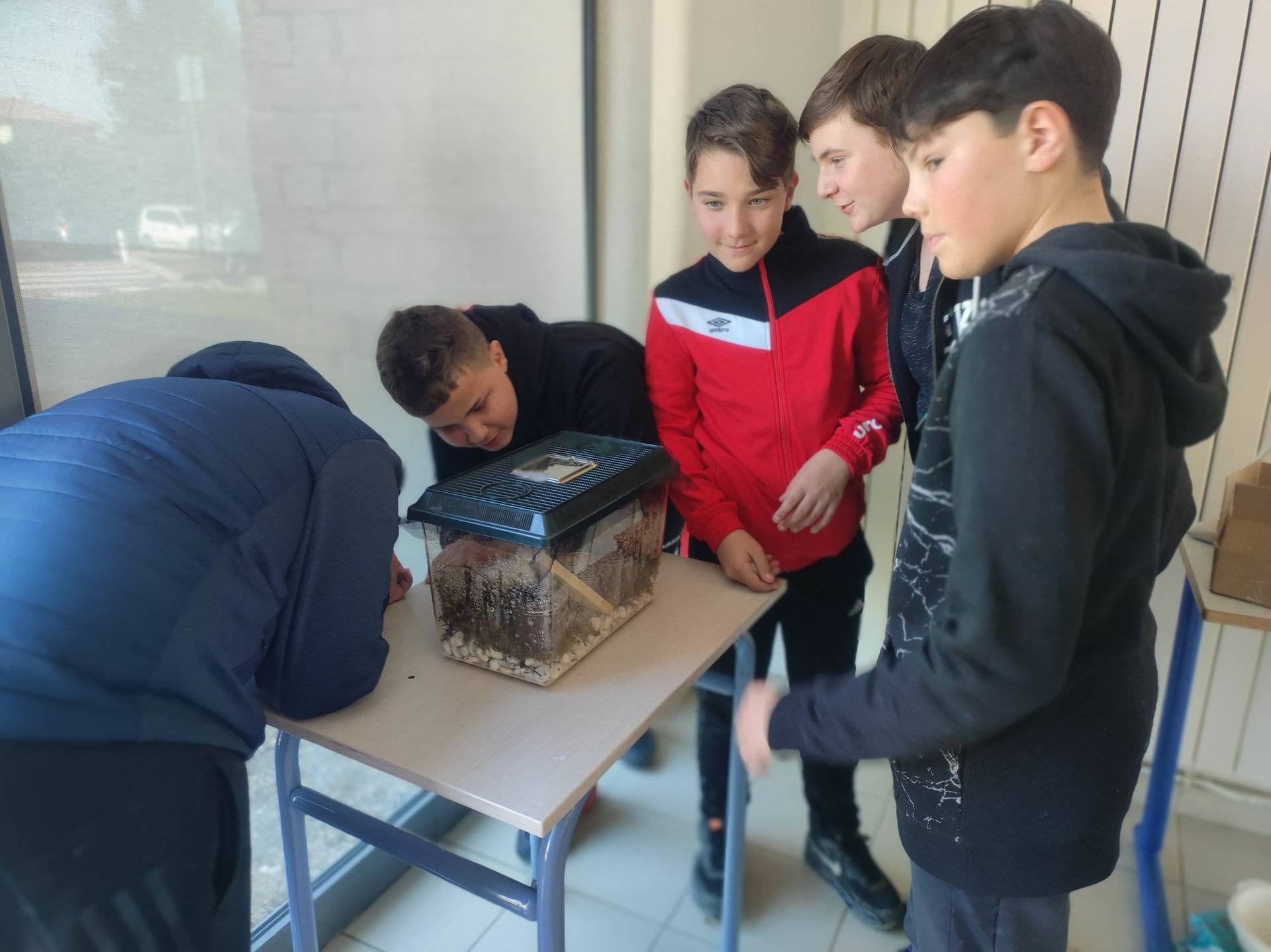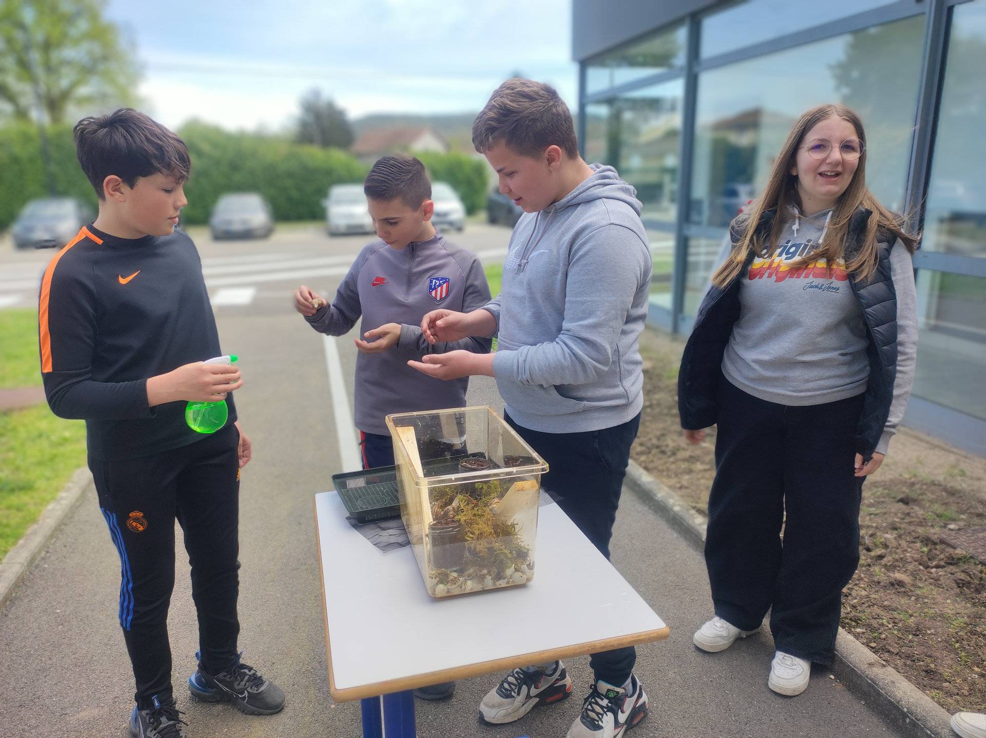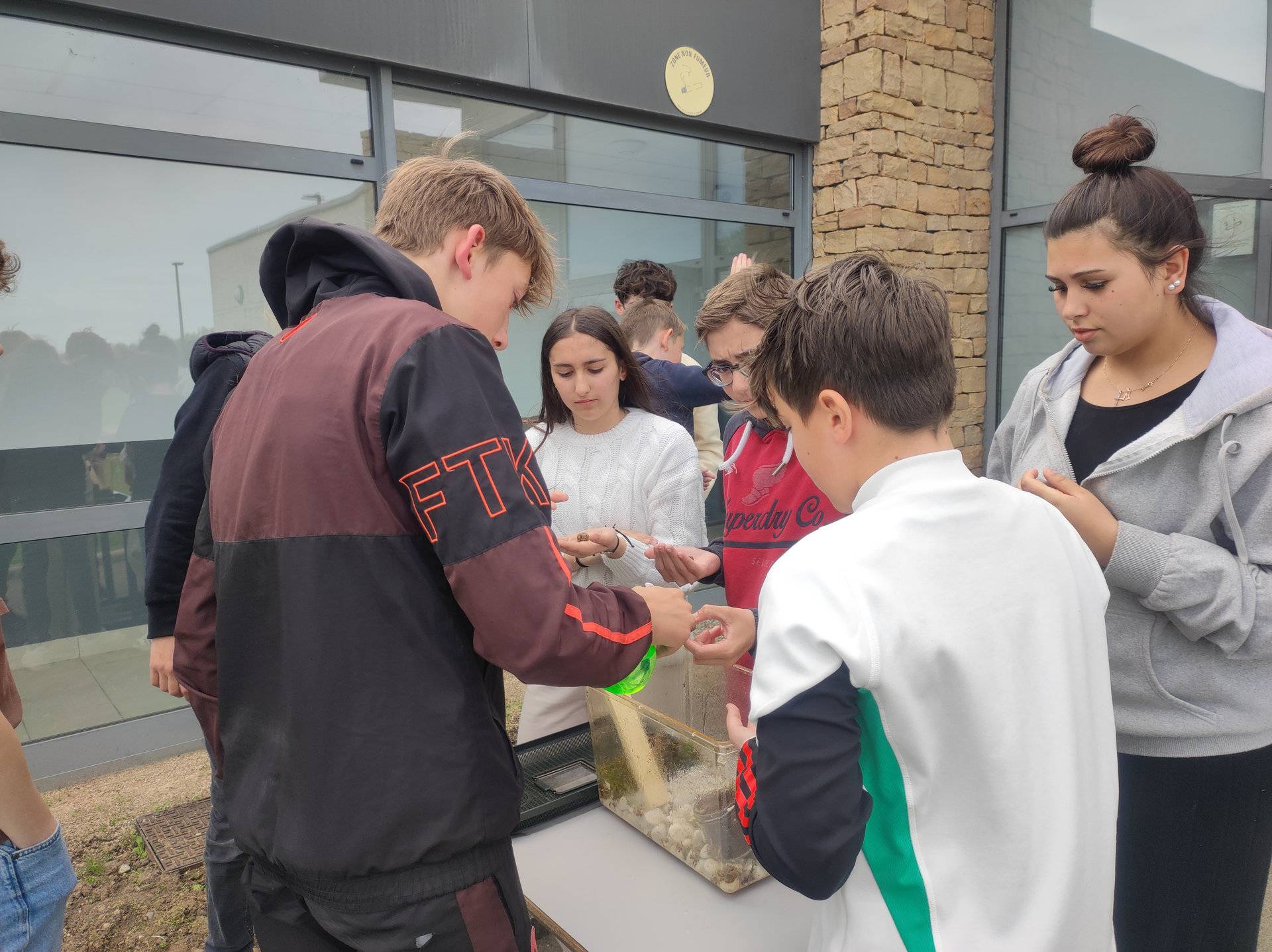 Les trois classes de 4èmes EA du lycée Paul Claudel ont commencé un élevage d’escargots. Les élèves ont pu observer ces animaux de près et étudier leur anatomie et leur mode de vie. La prochaine étape est leur reproduction, nous attendons pour bientôt la ponte des œufs et nous pourrons ainsi étudier la croissance des petits escargots.