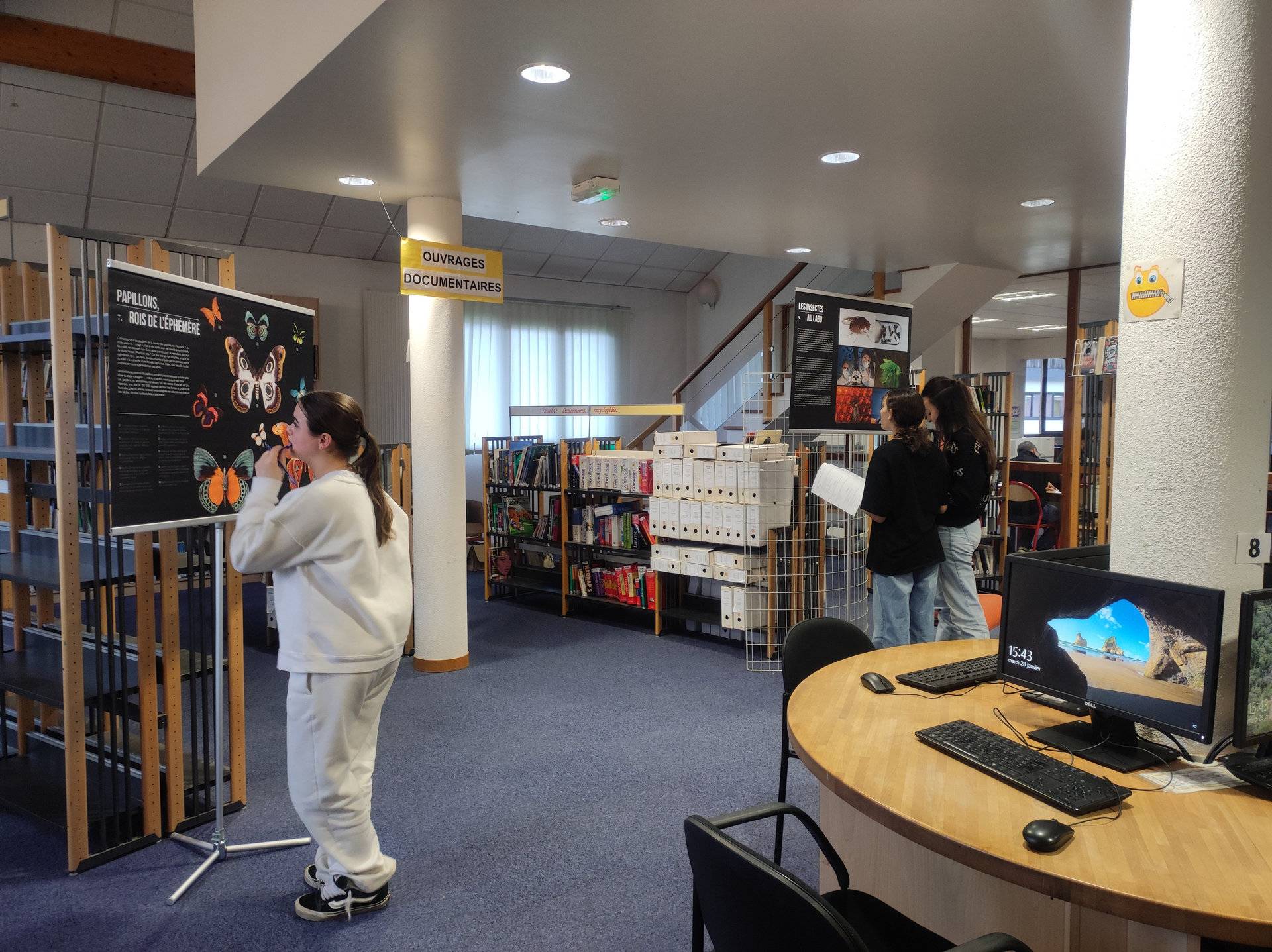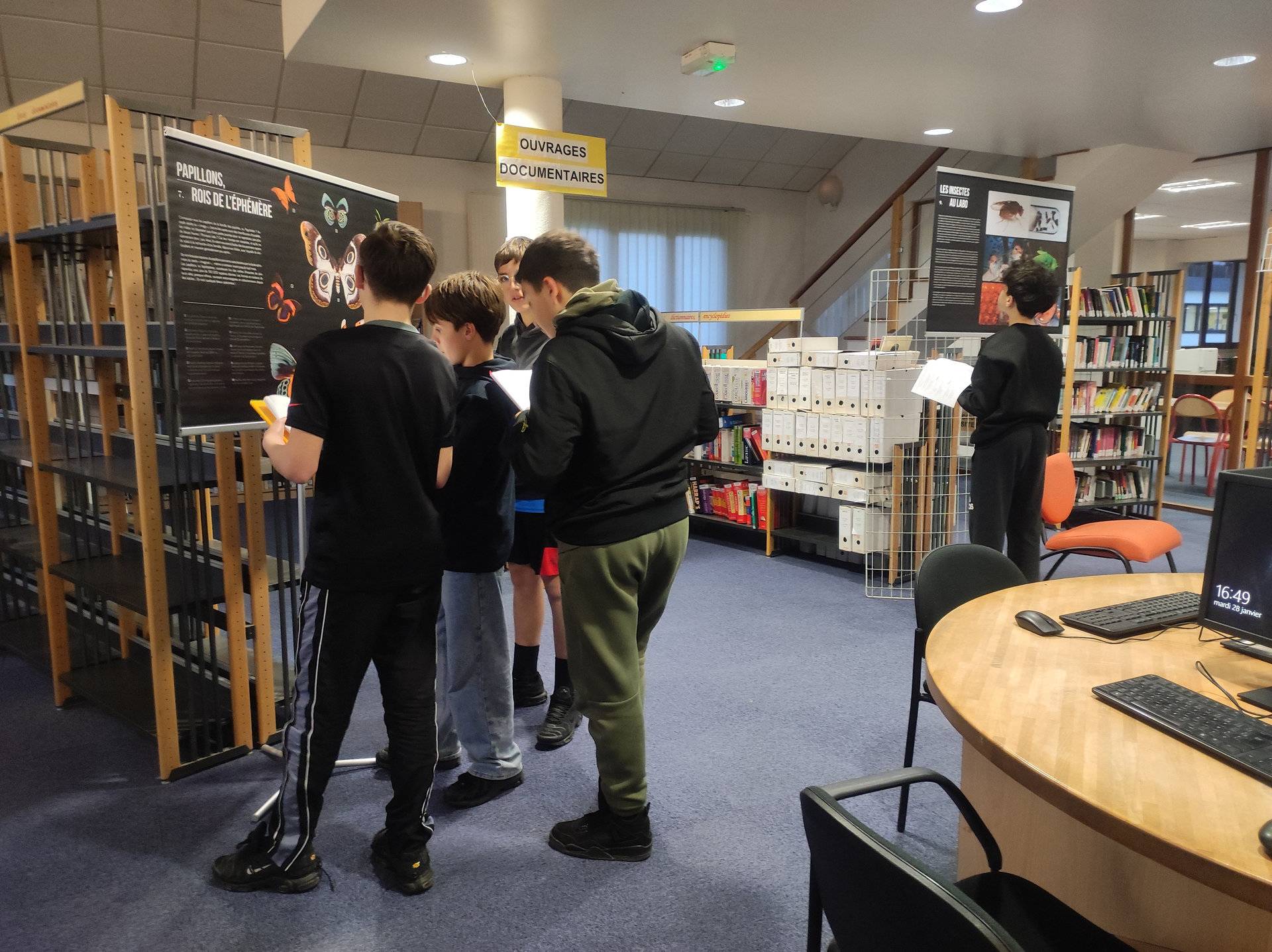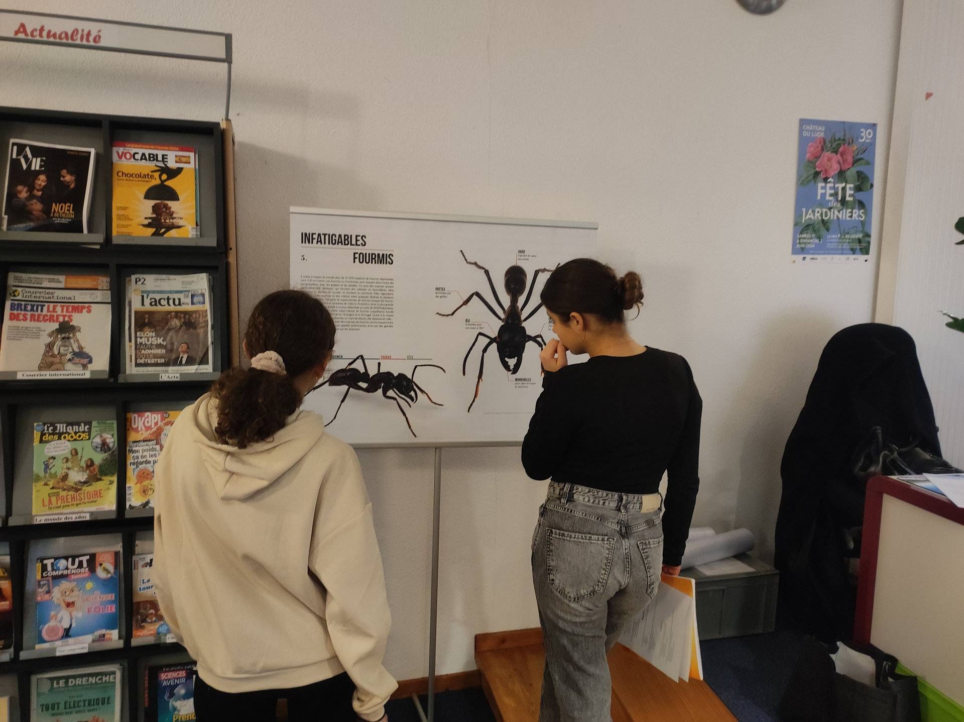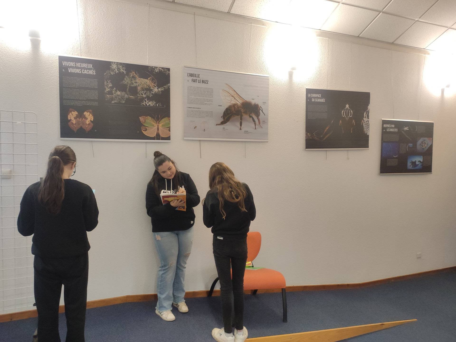 Mardi 28 janvier, les deux classes de 4èmes EA sont allées au CDI pour visiter l’exposition « Etonnants Insectes ». Ils ont étudié les 10 panneaux présentant entre autres l’anatomie de la mouche, des fourmis, et des abeilles. Ils ont également pu découvrir comment l’homme peut s’inspirer des insectes dans la vie au quotidien, avec le vol des drones imitant celui de la libellule, les billets de banque infalsifiables s’inspirant de la couleur des papillons, la fabrication de gilet pare-balles en étudiant la solidité de la soie produite par les araignées…