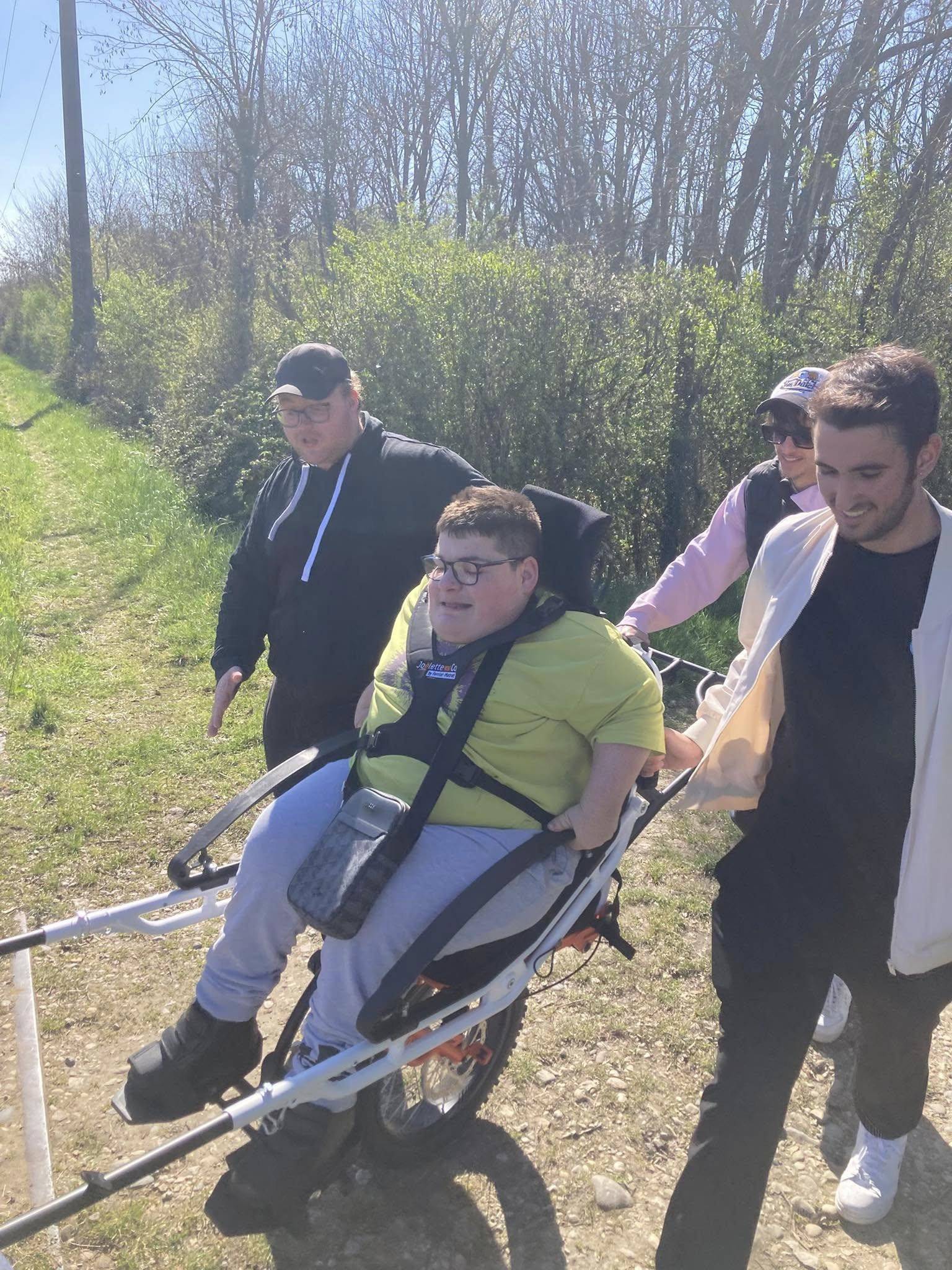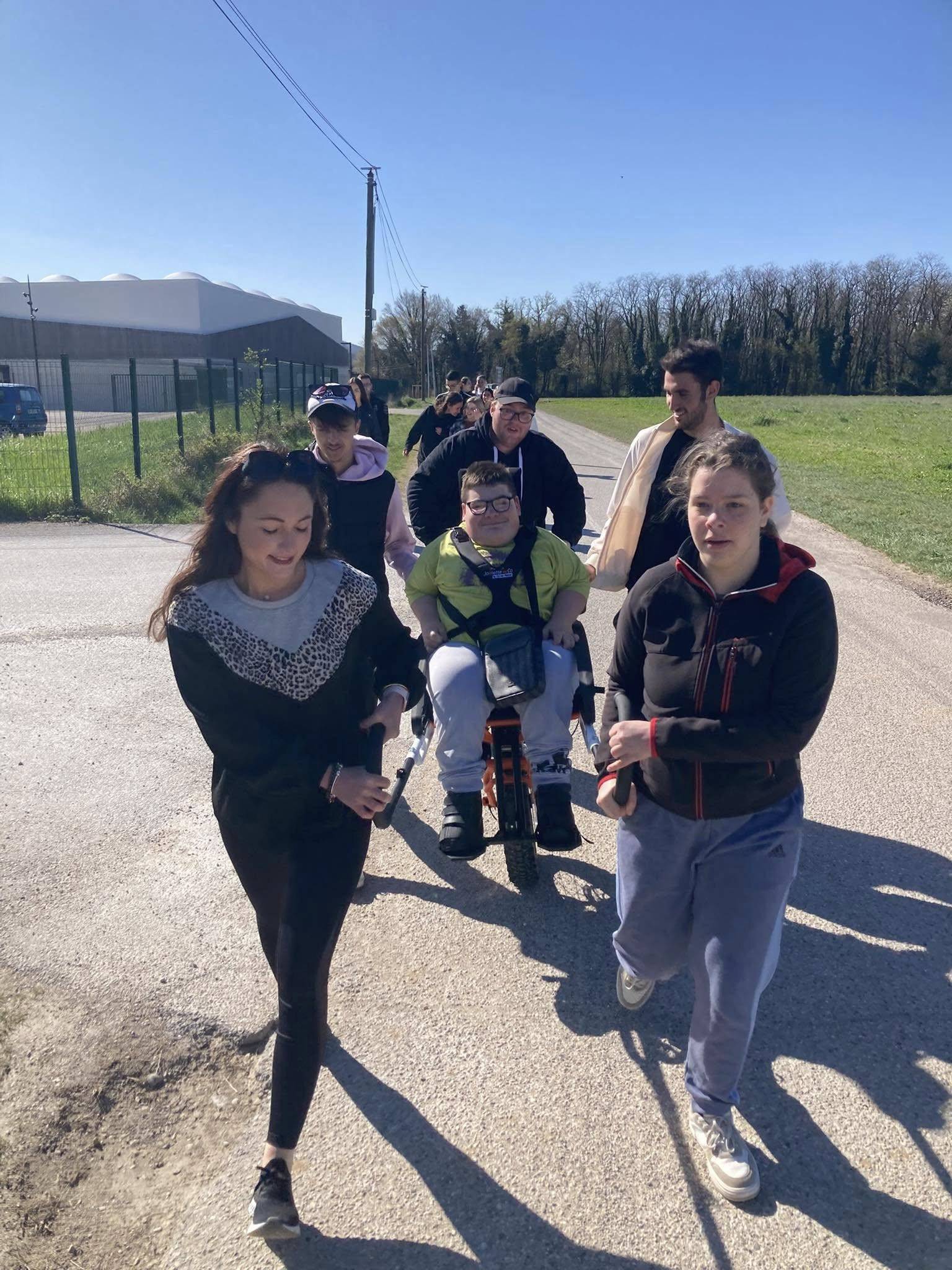 Aujourd’hui, notre séance d’éducation physique s’est transformée en une aventure pleine nature. Nos élèves de Terminale Professionnelle ont réalisé leur 4eme séance de randonnée pédestre en compagnie de leur camarade Loïc. Ce dernier, déjà acteur dans l’organisation de la séance d’Eps au lycée, a pu sortir de l’établissement grâce à une joëlette, un fauteuil tout terrain adapté. Un grand merci à l’association « Courir à Villemoirieu » pour leur soutien.