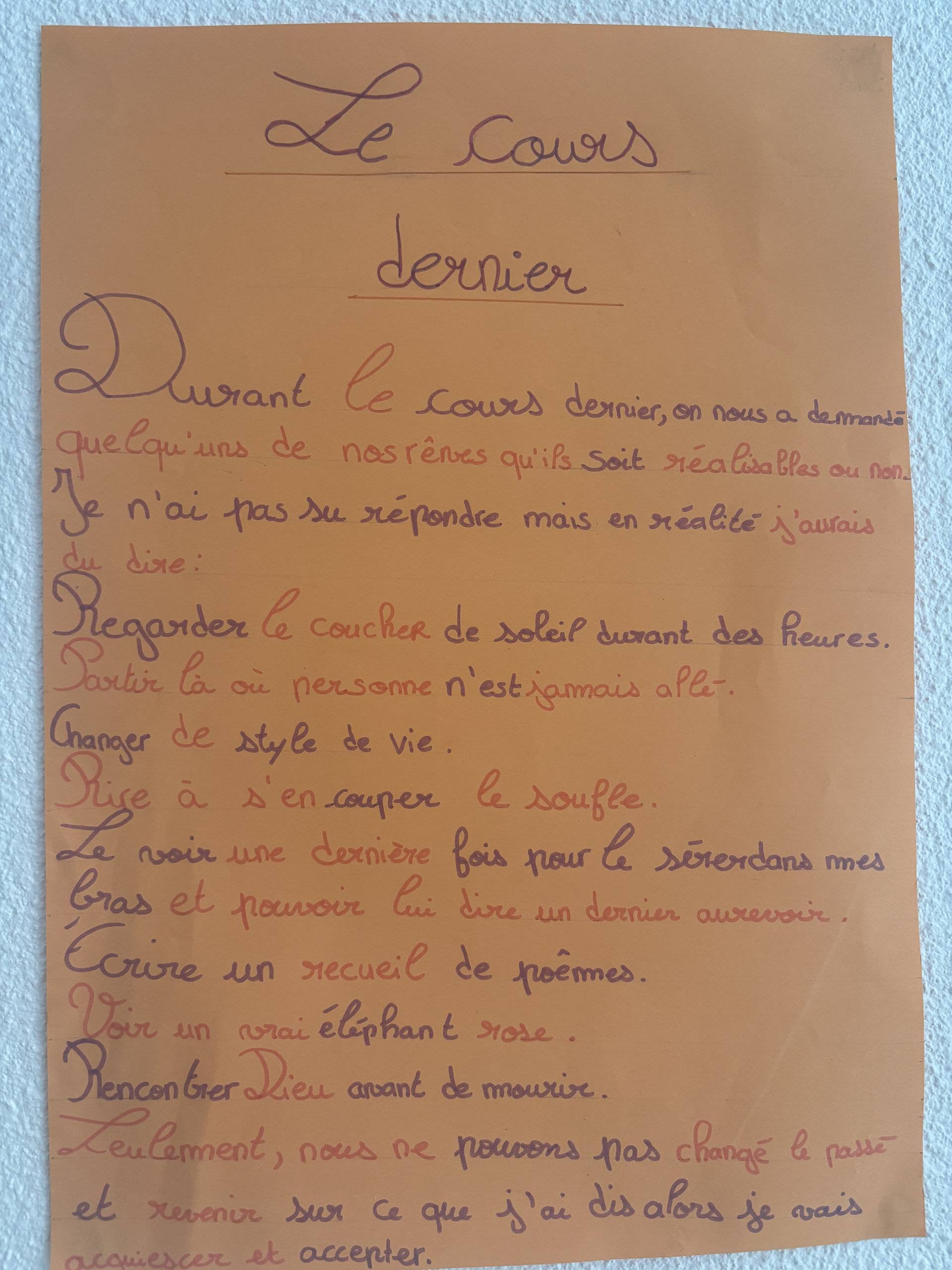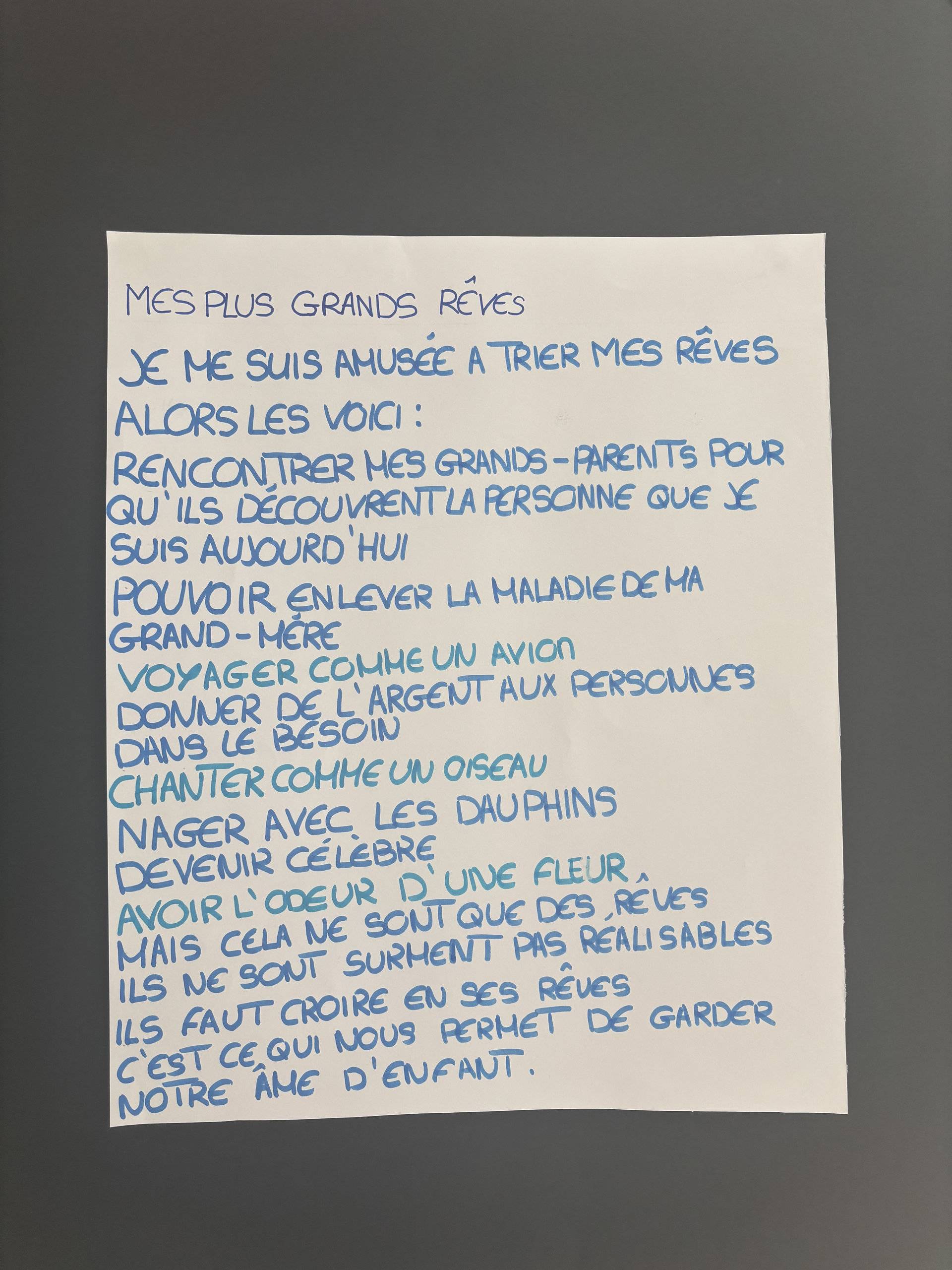 En cours de français dans le thème : les visions poétiques du monde , Les 3iemes EA 4 se sont amusées à écrire des poèmes en prose sur leurs rêves ( des plus fous , magiques au plus réalisables ) à la manière d Abdelatif Laabi. Je les félicite pour leur imagination, talent et sensibilité.