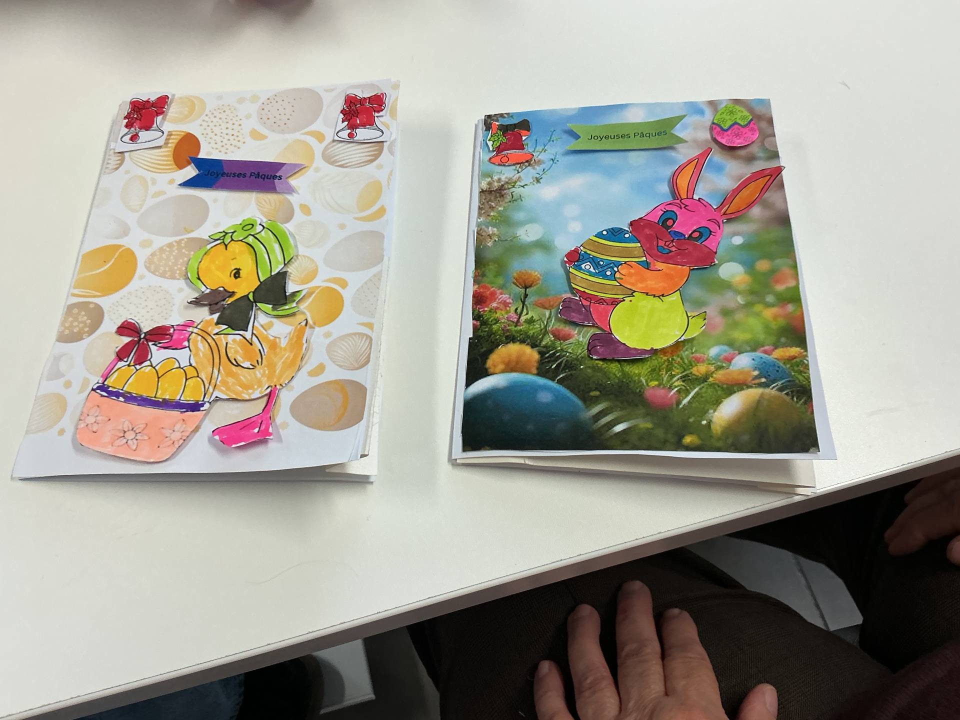 Dans le cadre de leur examen, le jeudi 26 mars un groupe d'élèves de CAPA deuxième année se sont rendus à St Quentin Fallavier accompagné par mesdames Aubert et Thibaud. Ils ont proposé à des personnes âgées de réaliser une carte sur le thème de Pâques avec à l’intérieur un mécanisme faisant apparaître un lapin lorsqu’on ouvre celle-ci.