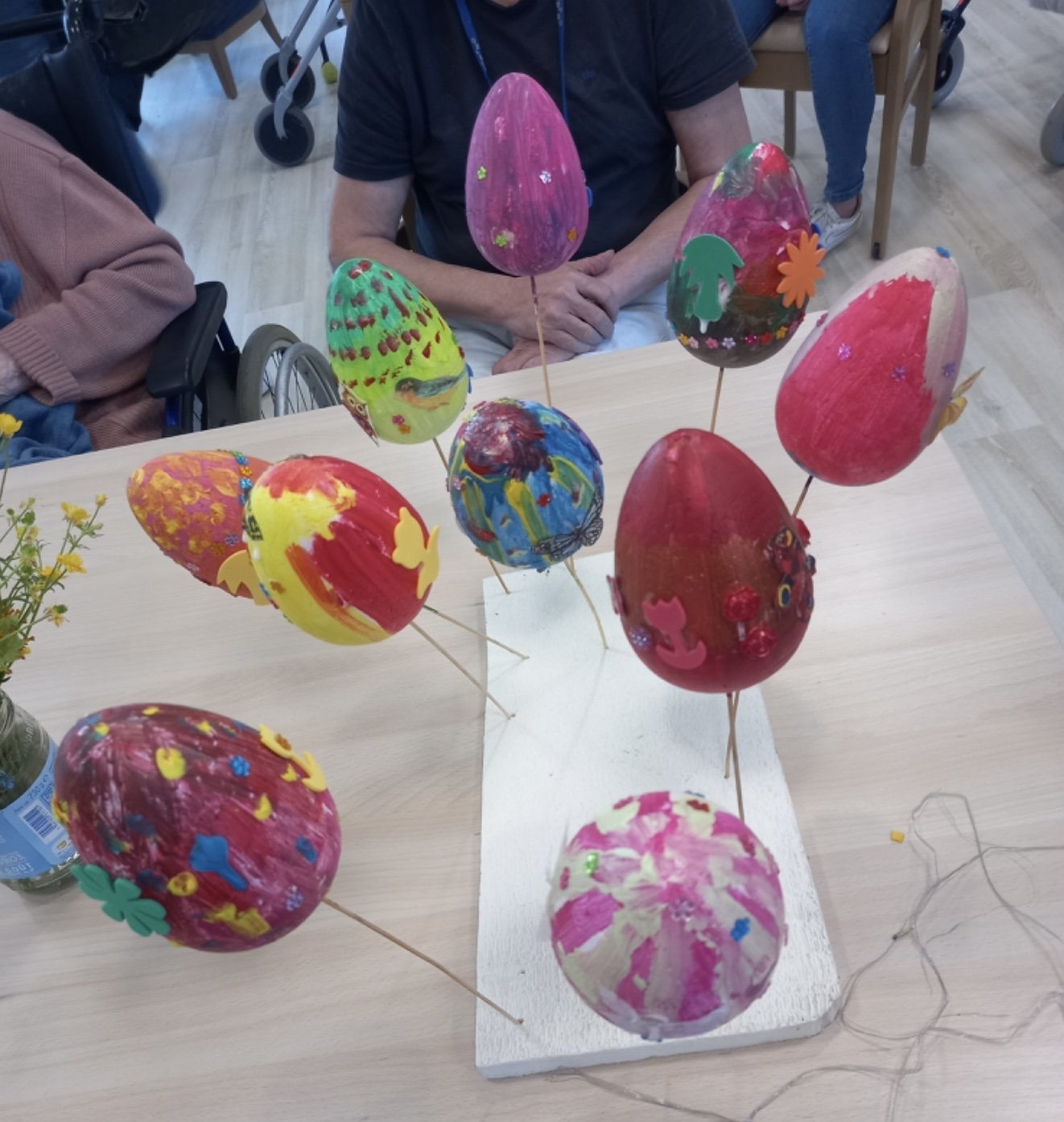 * Lundi des œufs en polystyrène ont été peints puis décorés par les personnes âgées. Ensuite un quizz leur a été proposé.
