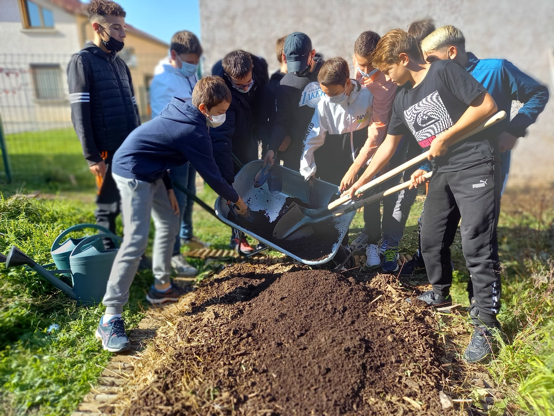 Les élèves de 4EA ont utilisé mi octobre le compost mûr réalisé à partir des restes de repas de février/mars 2021.