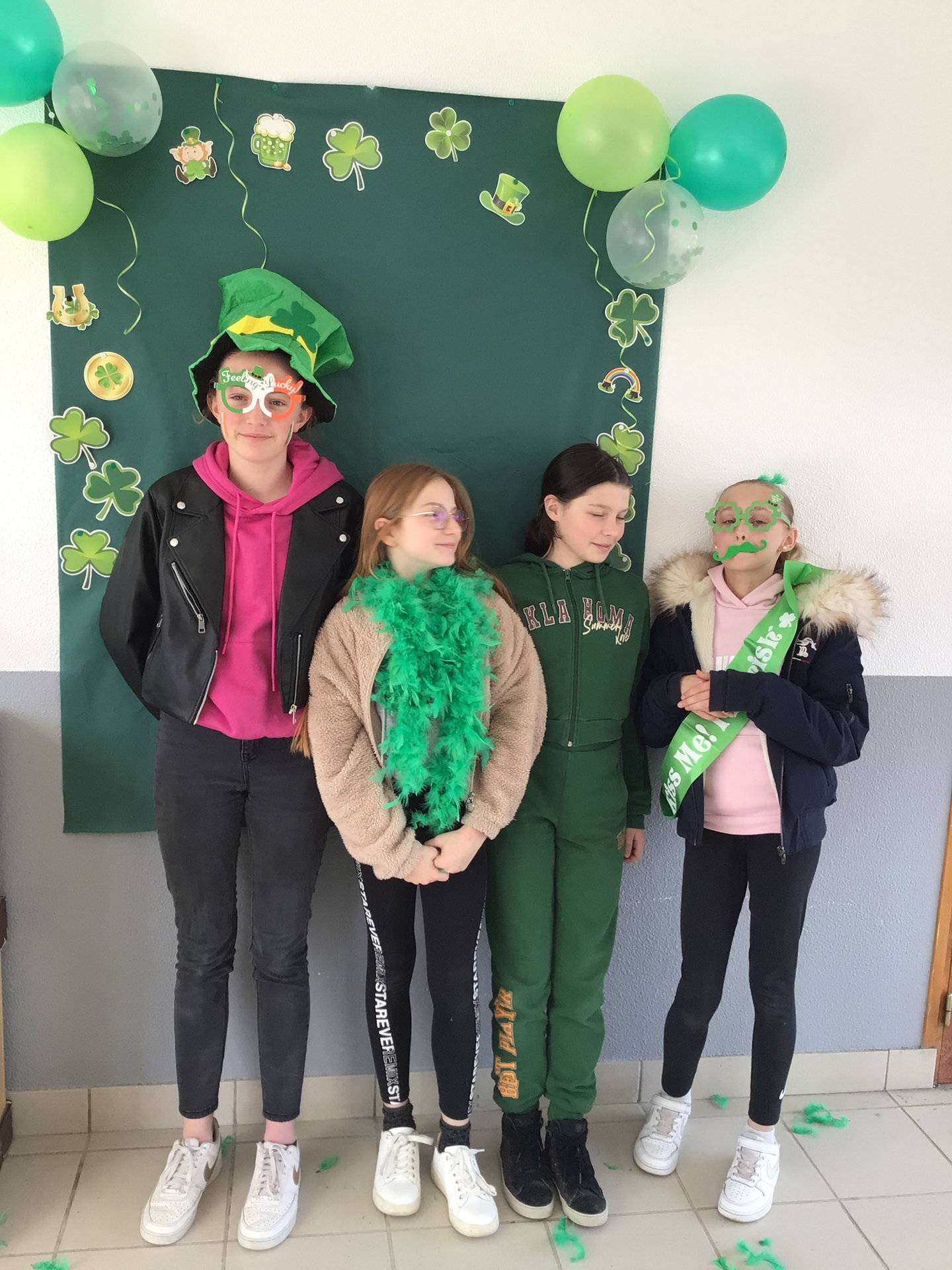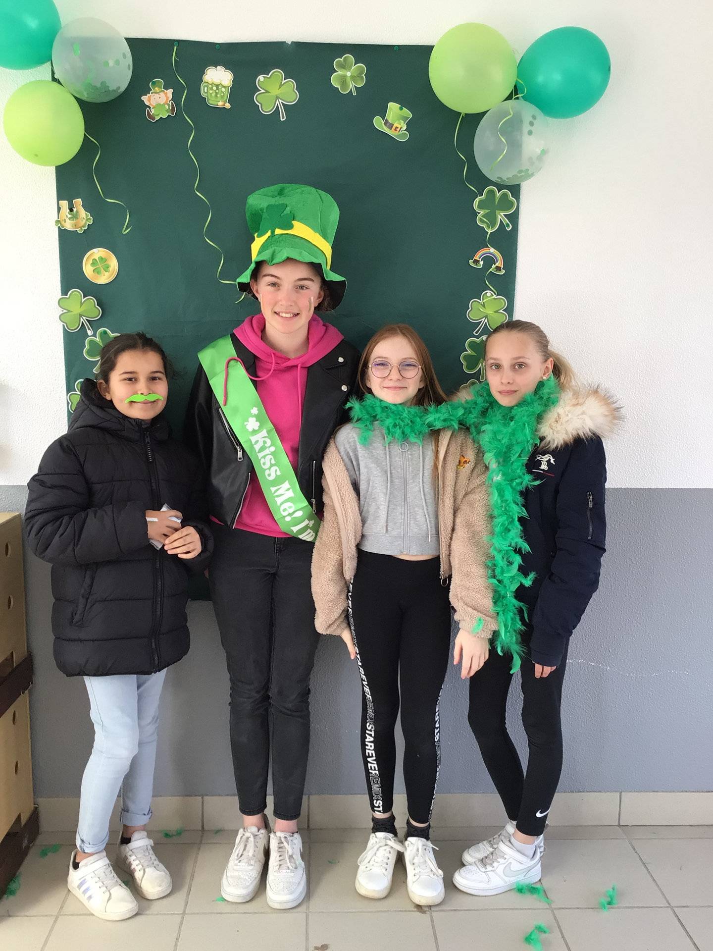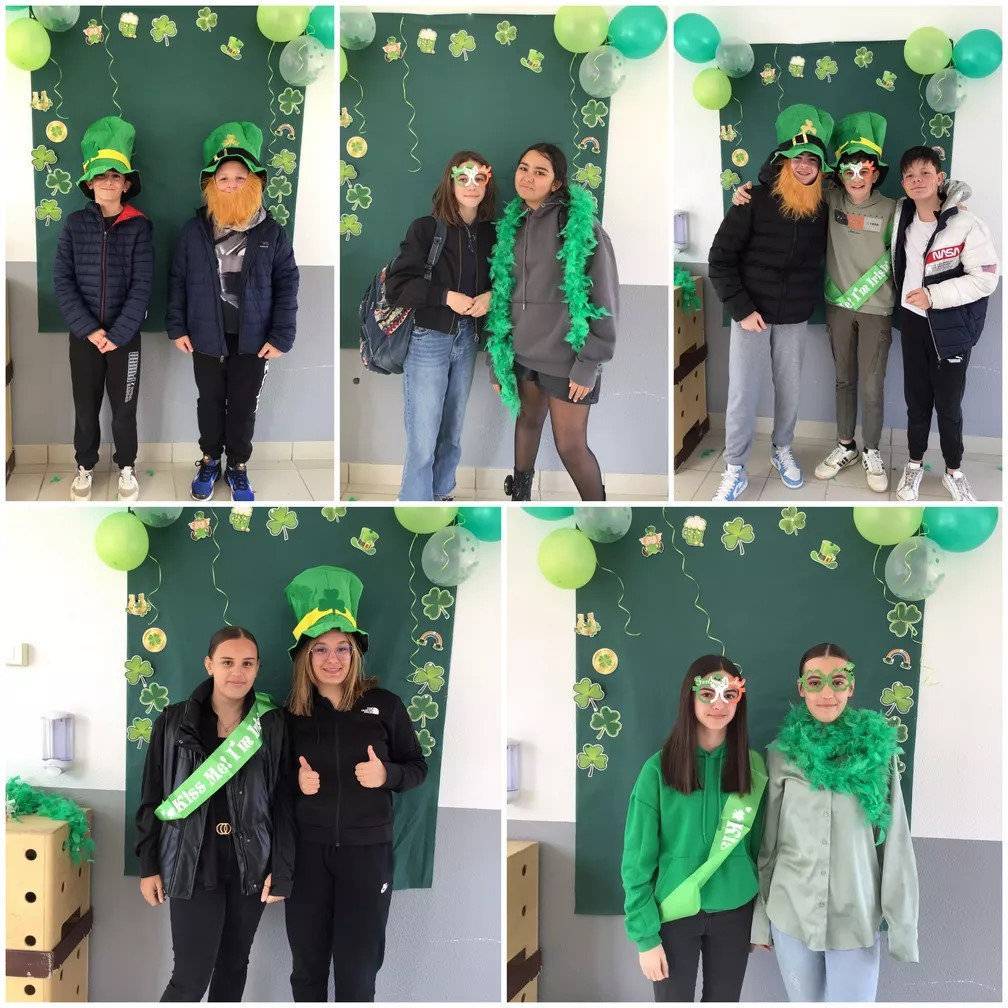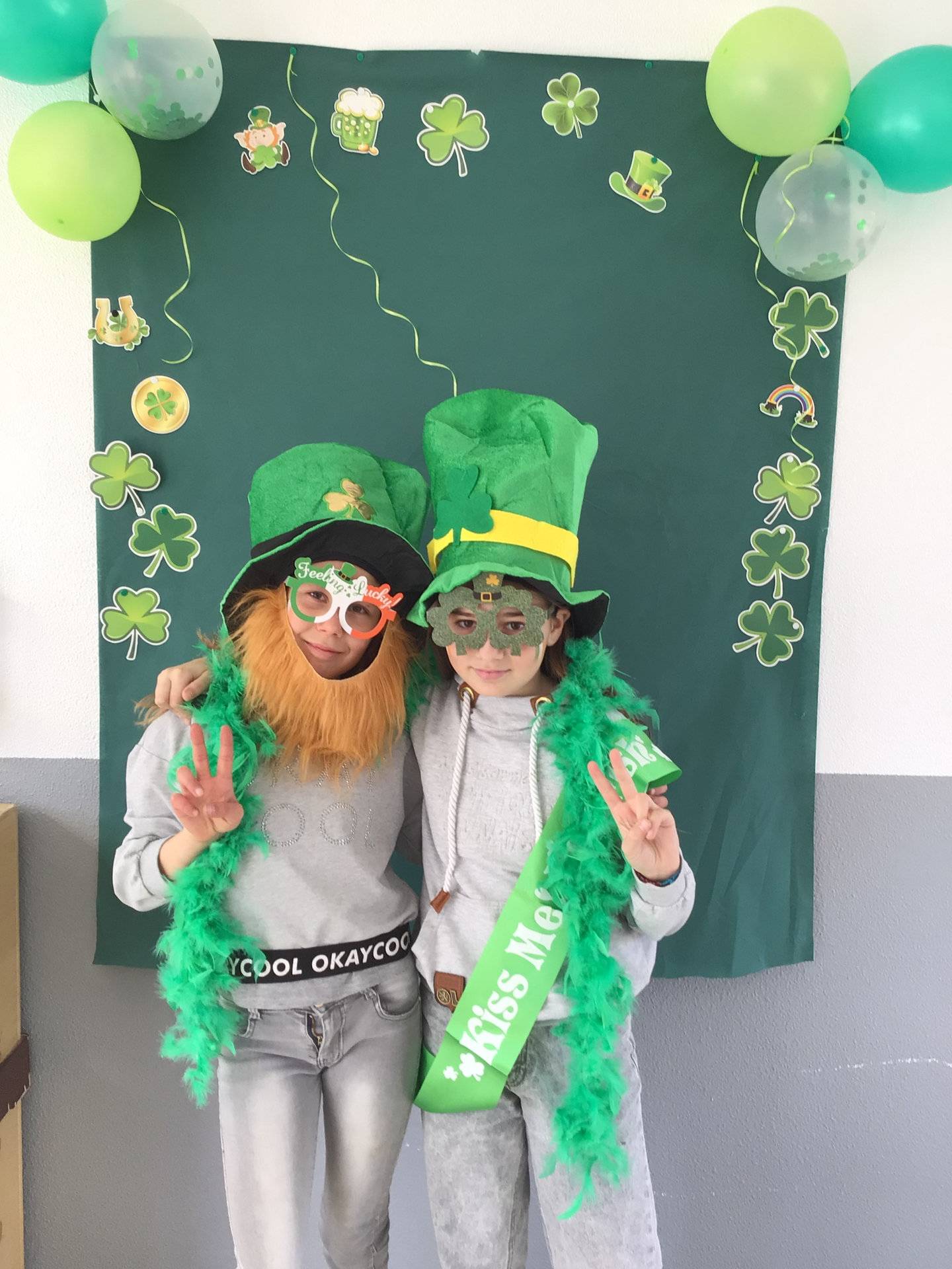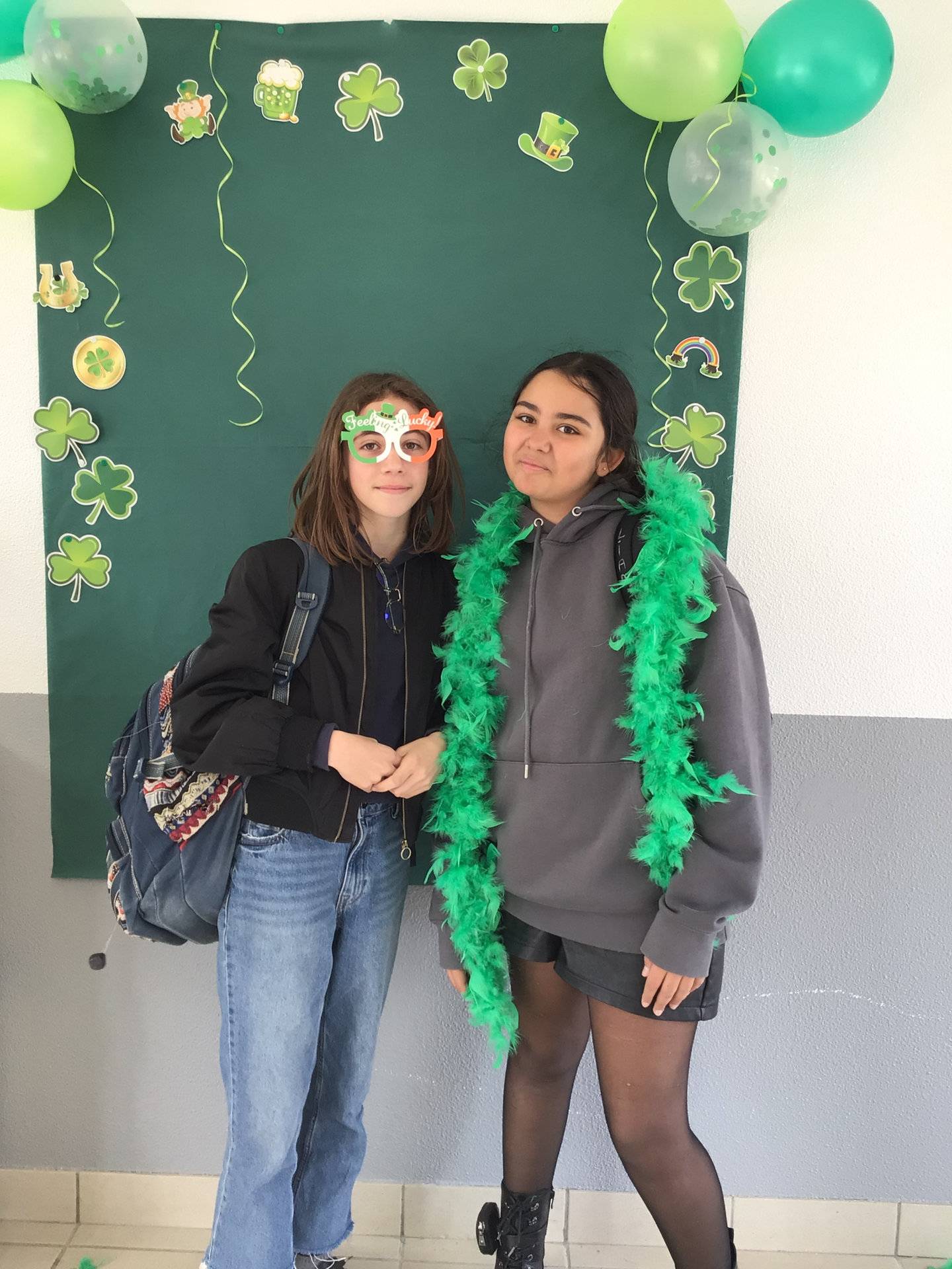 Repas irlandais à la cantine, photos dans la cour avec accessoires.