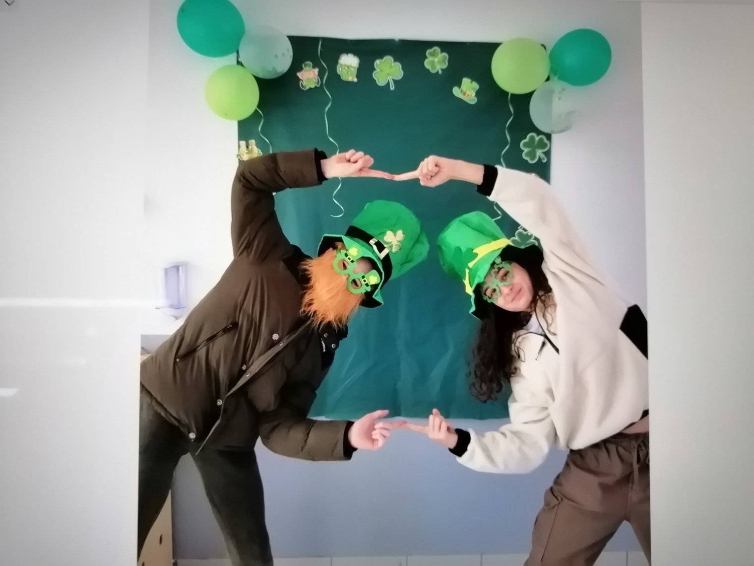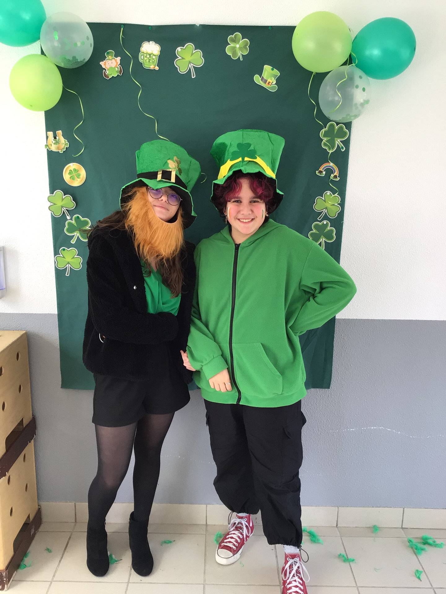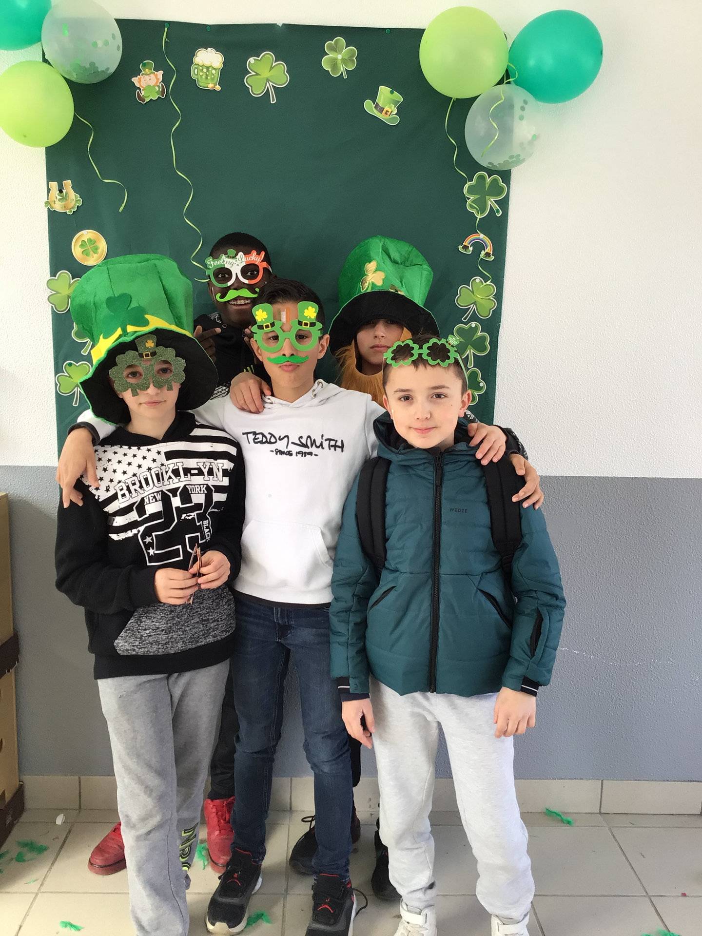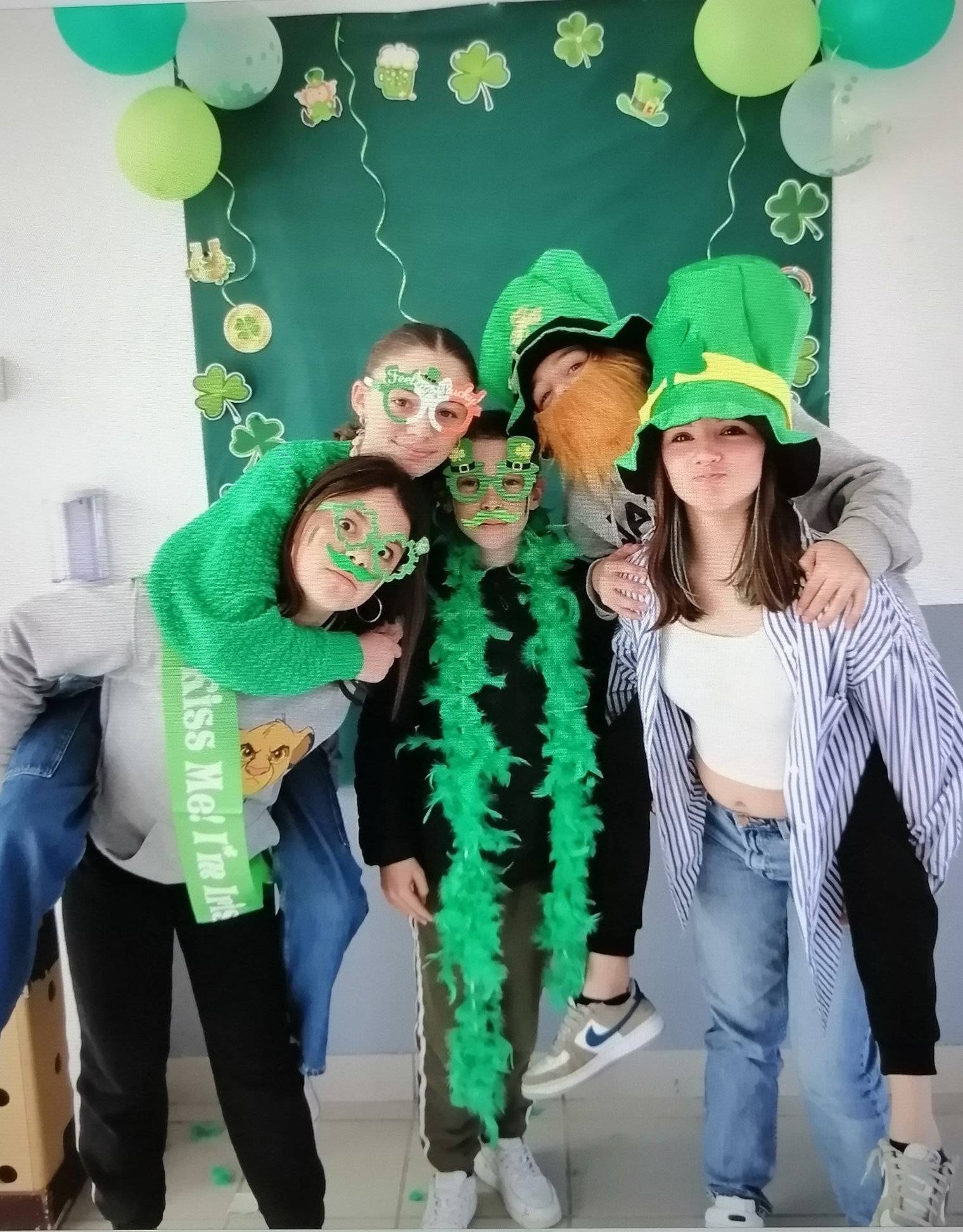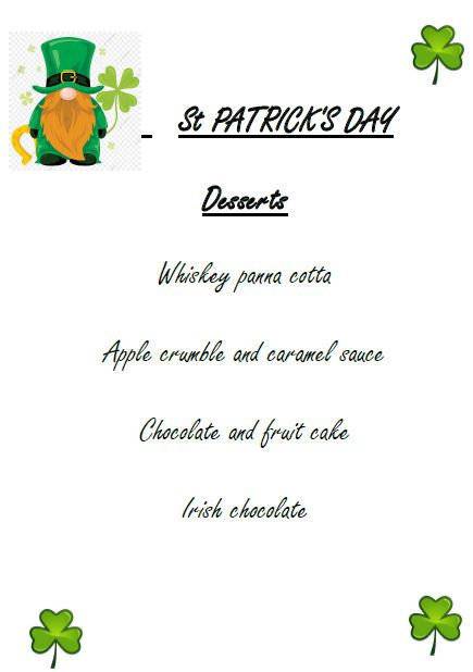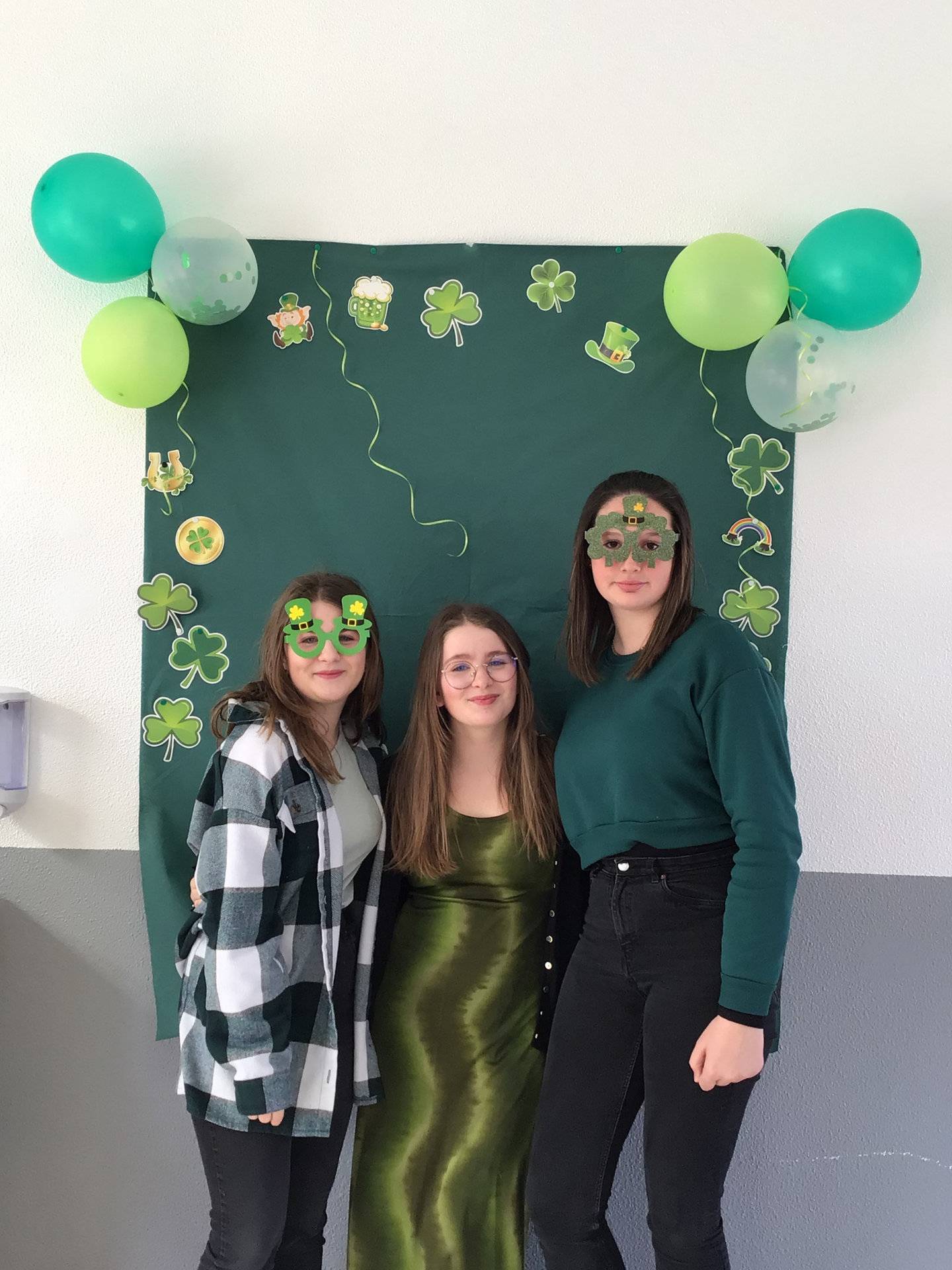 Repas irlandais à la cantine, photos dans la cour avec accessoires.