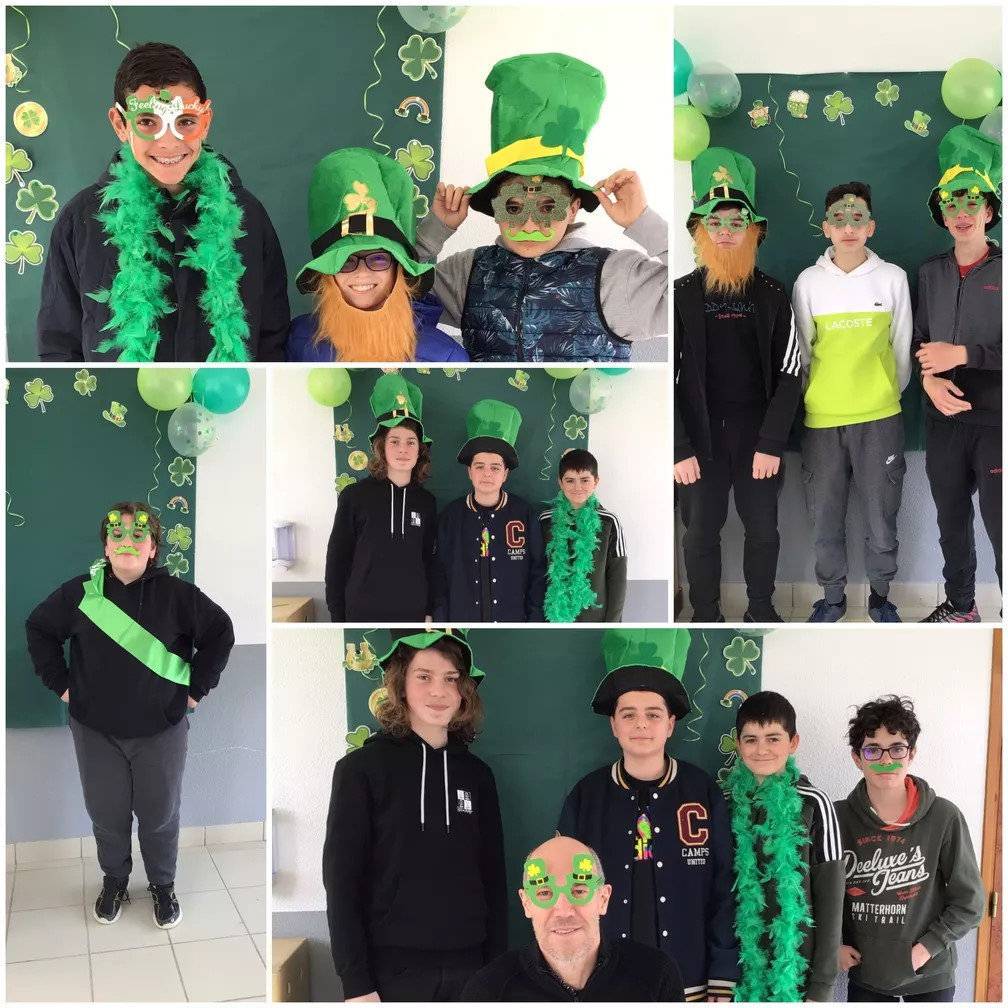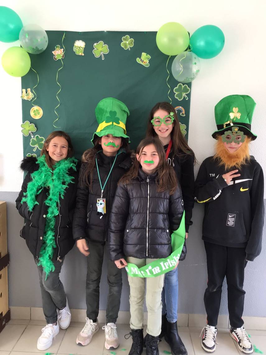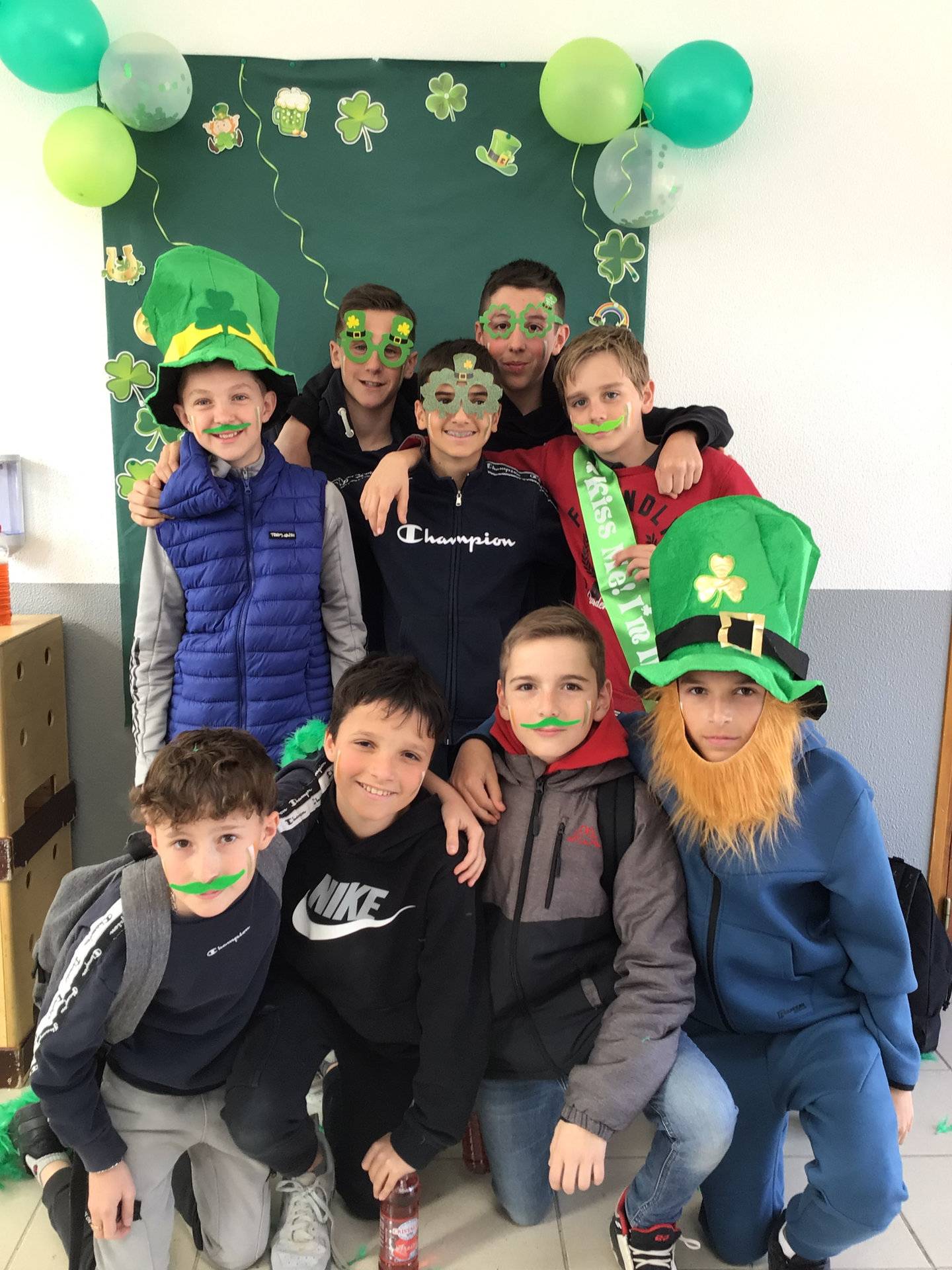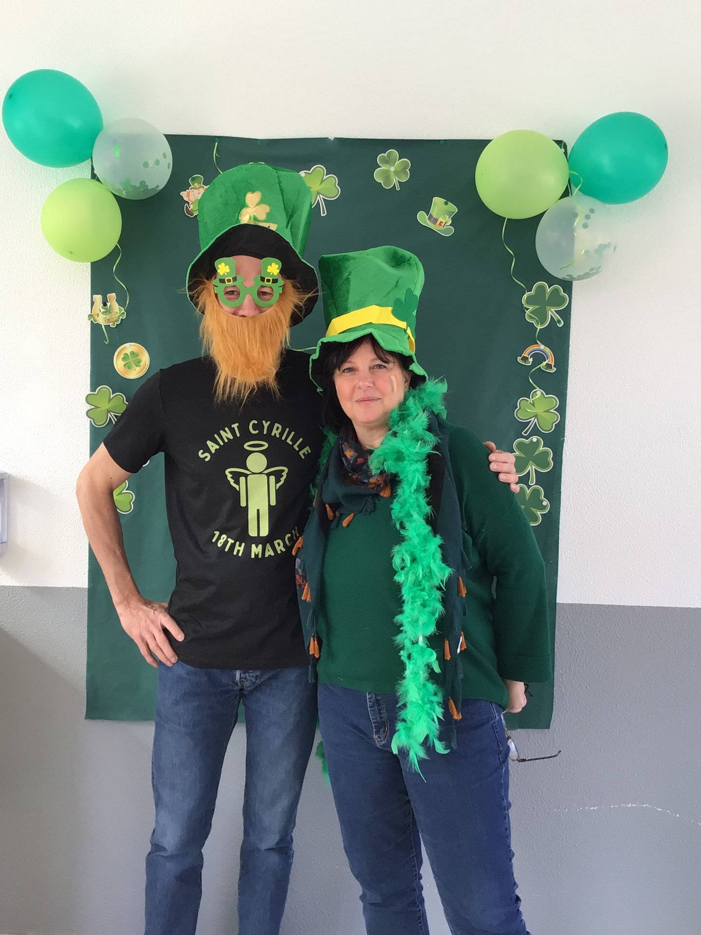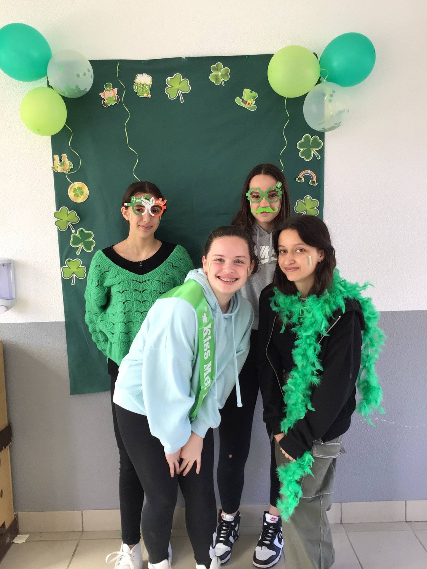 Repas irlandais à la cantine, photos dans la cour avec accessoires.