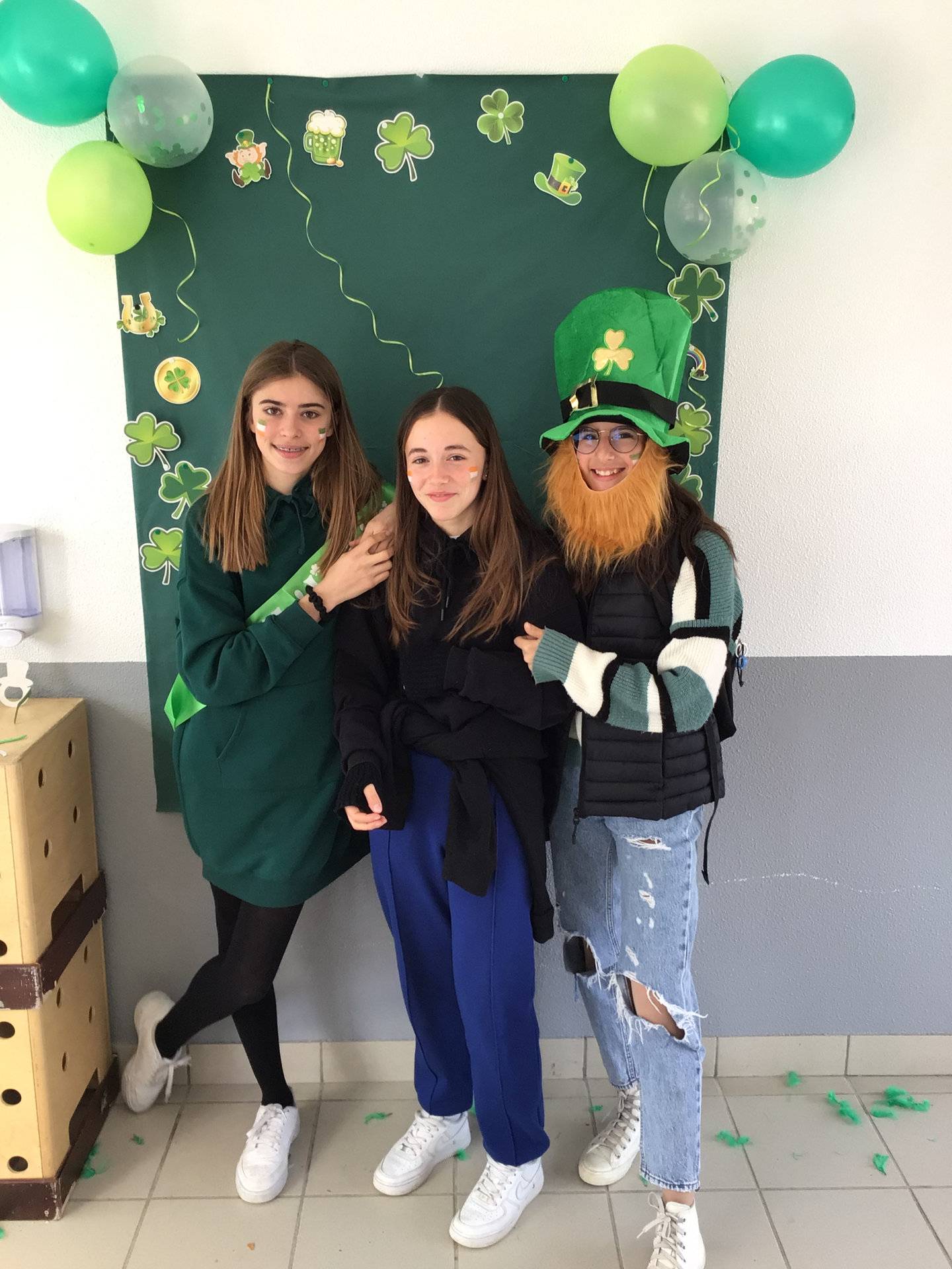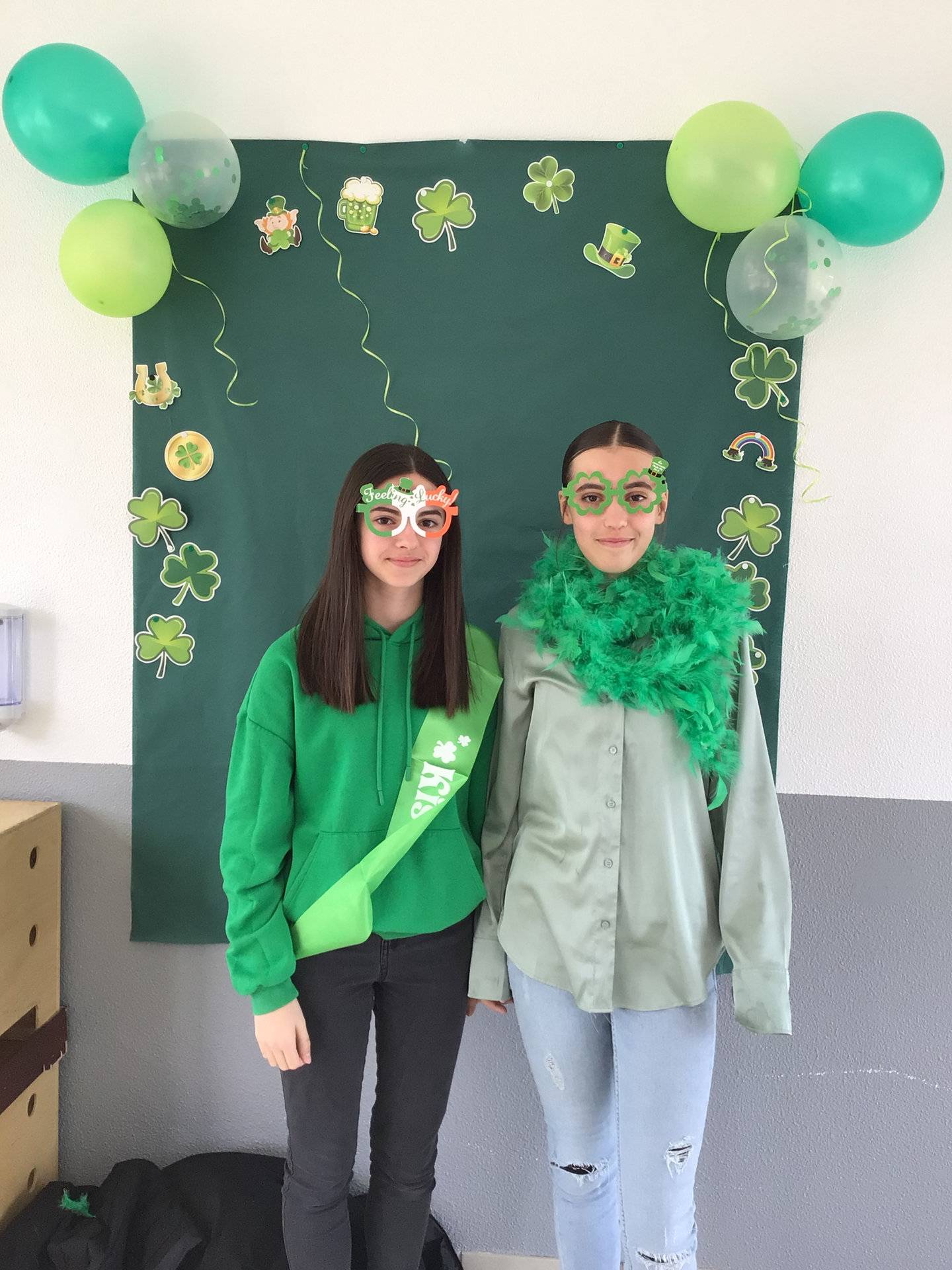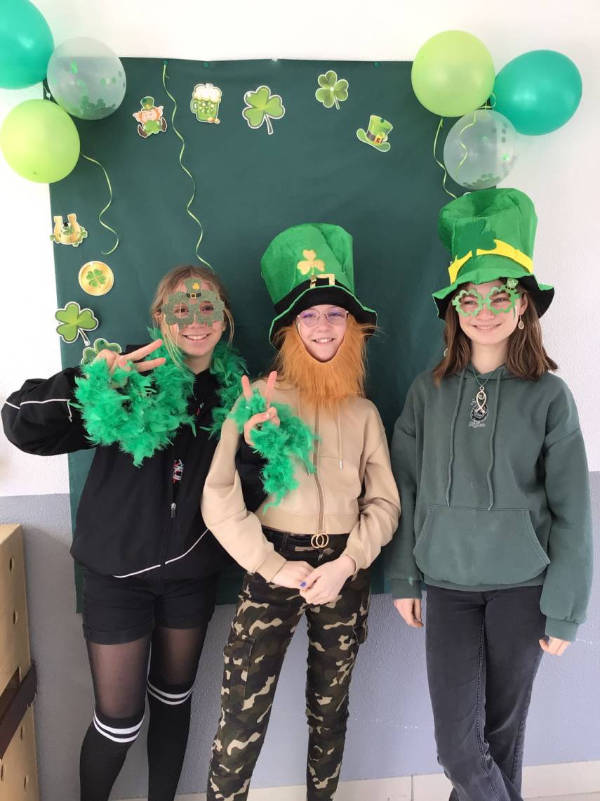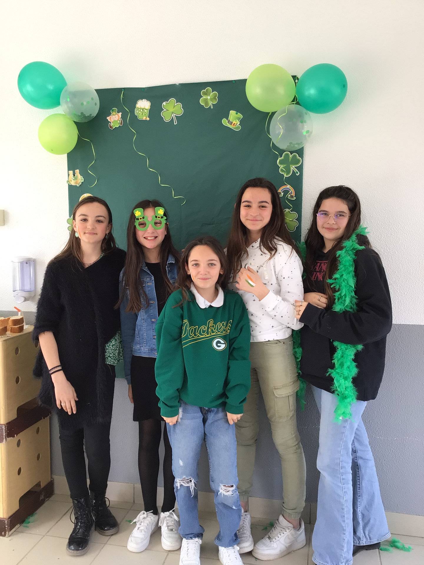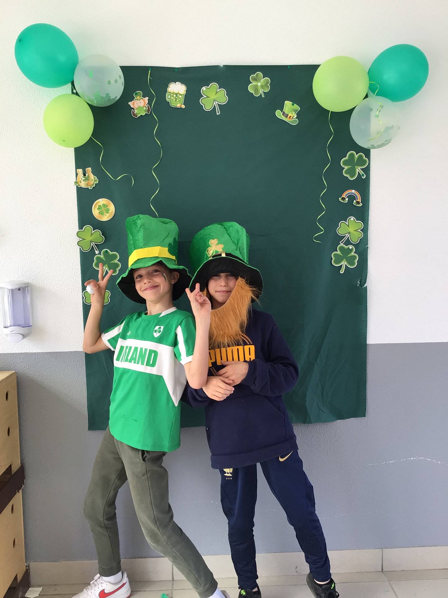 Repas irlandais à la cantine, photos dans la cour avec accessoires.
