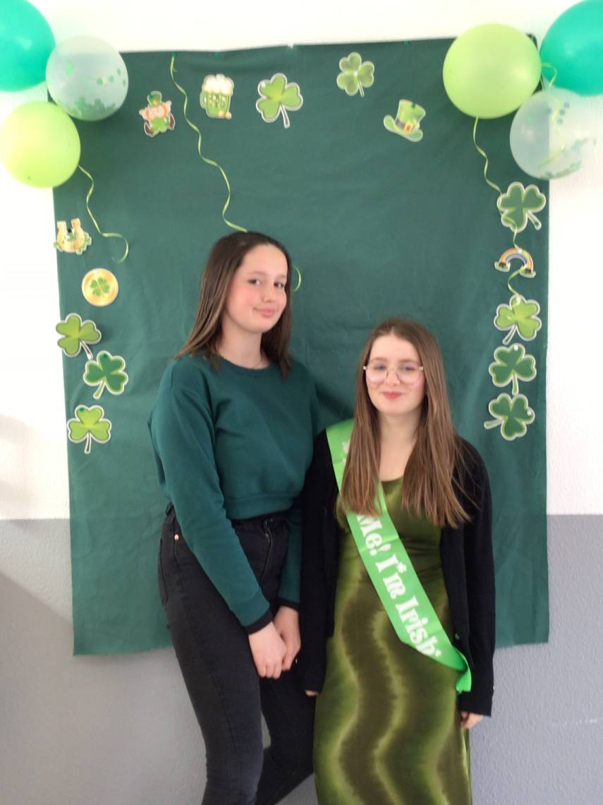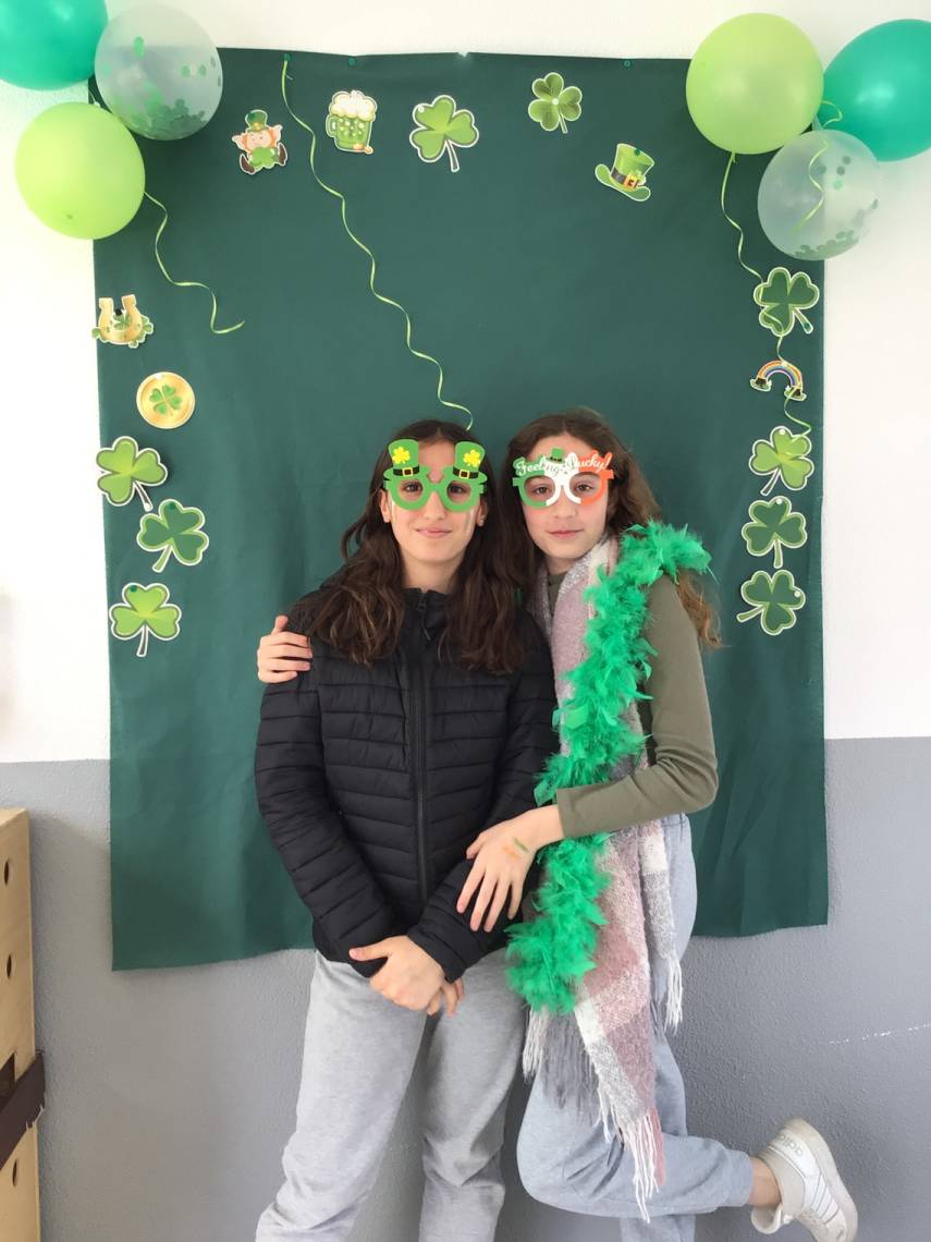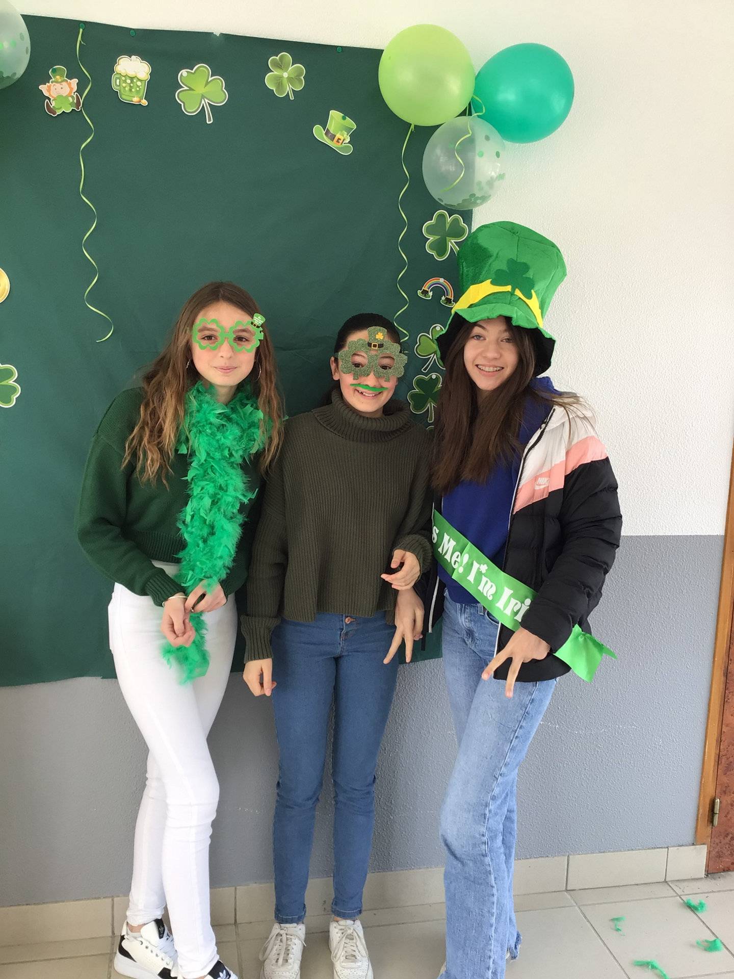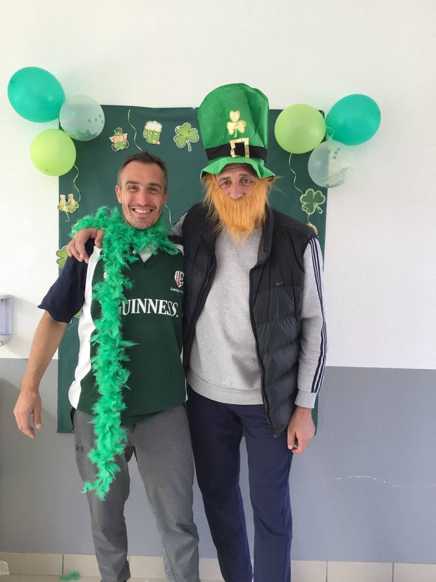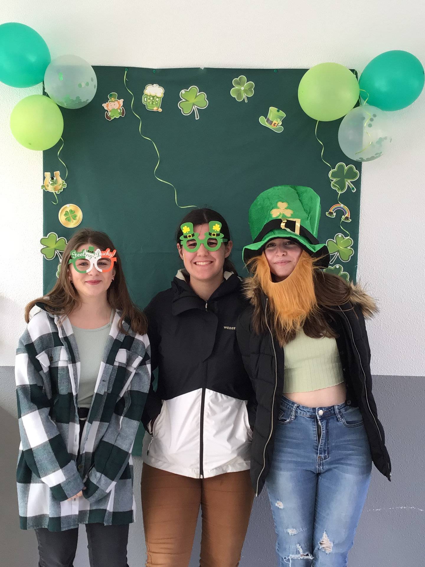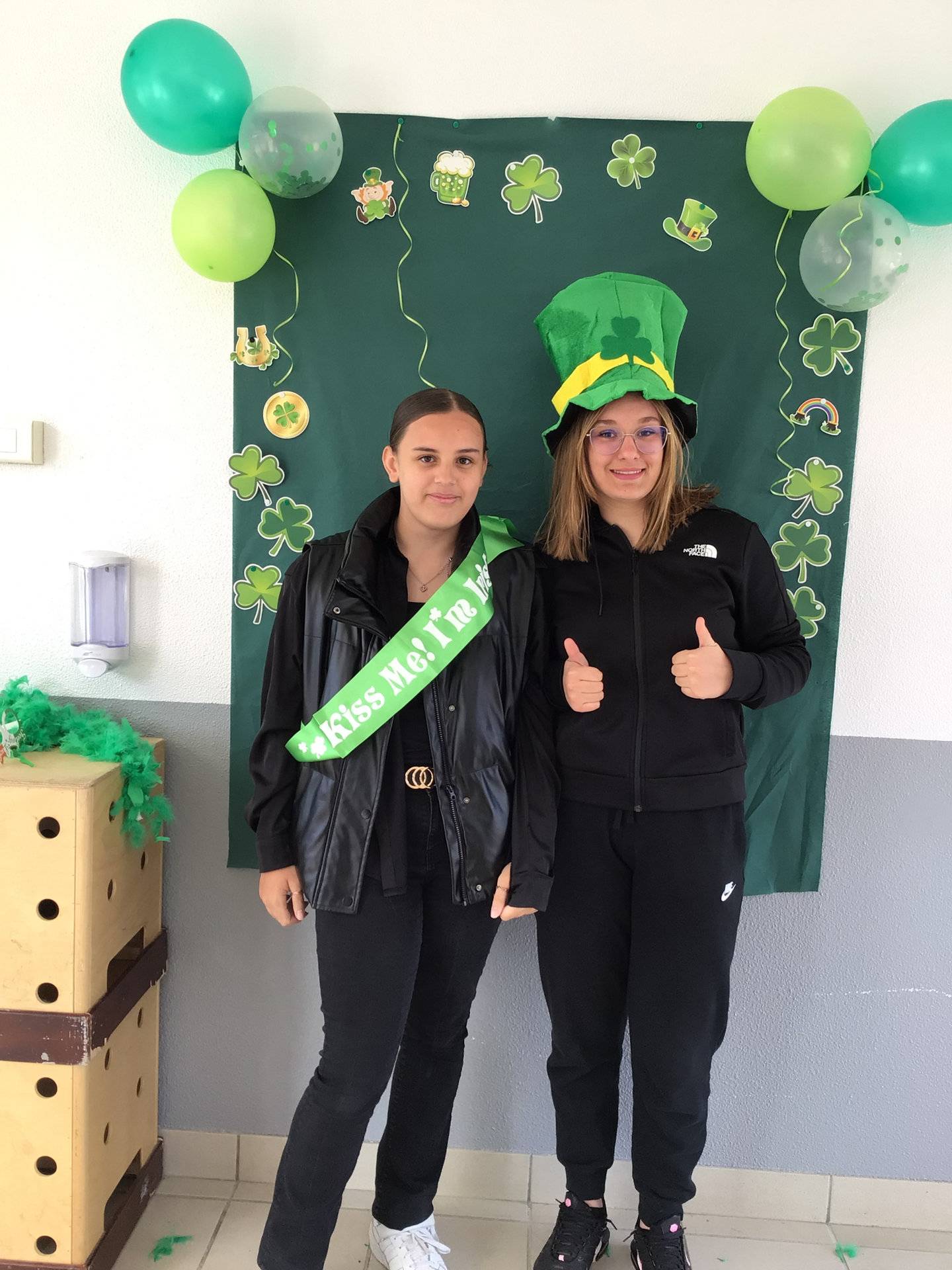 Repas irlandais à la cantine, photos dans la cour avec accessoires.