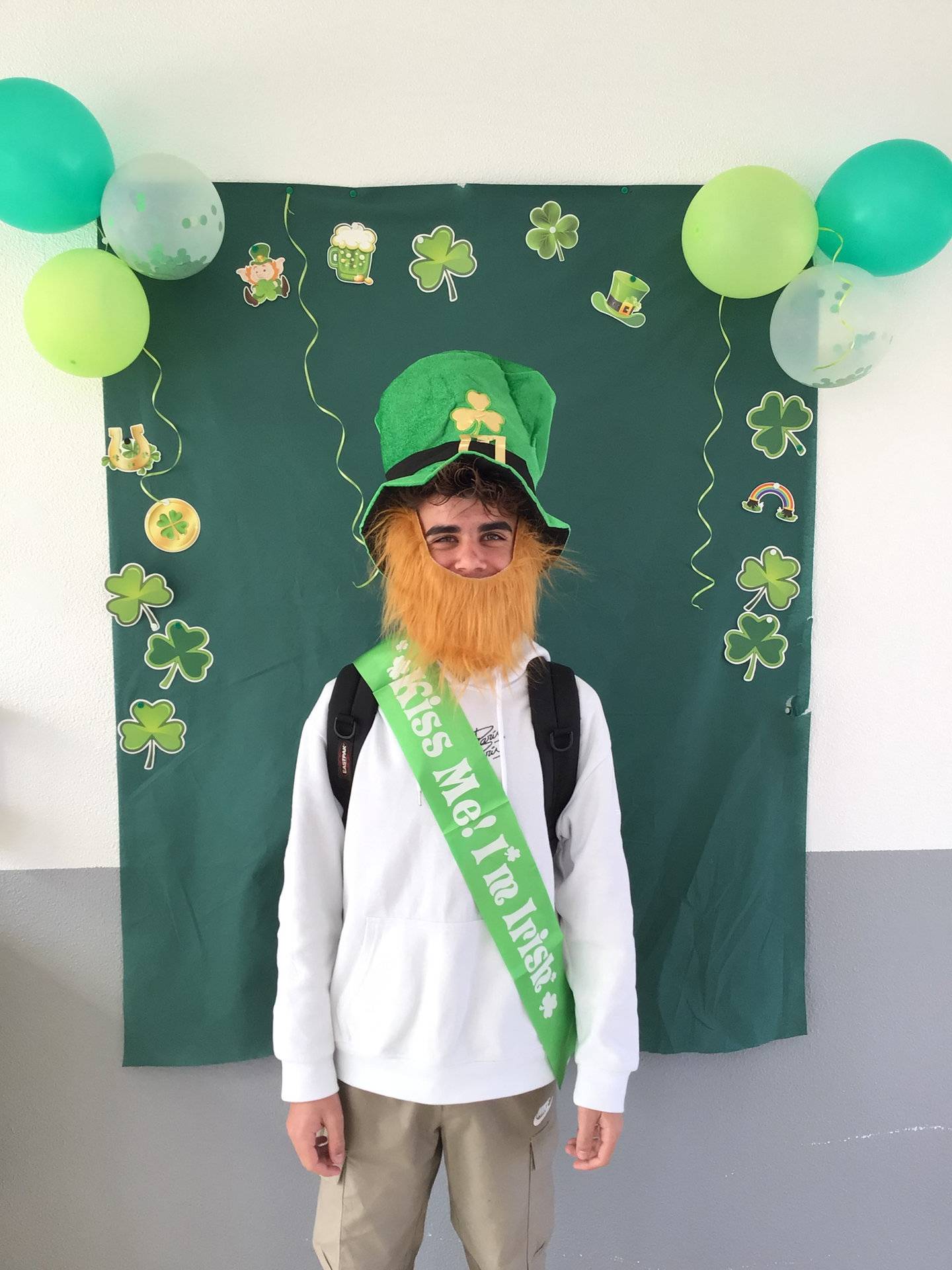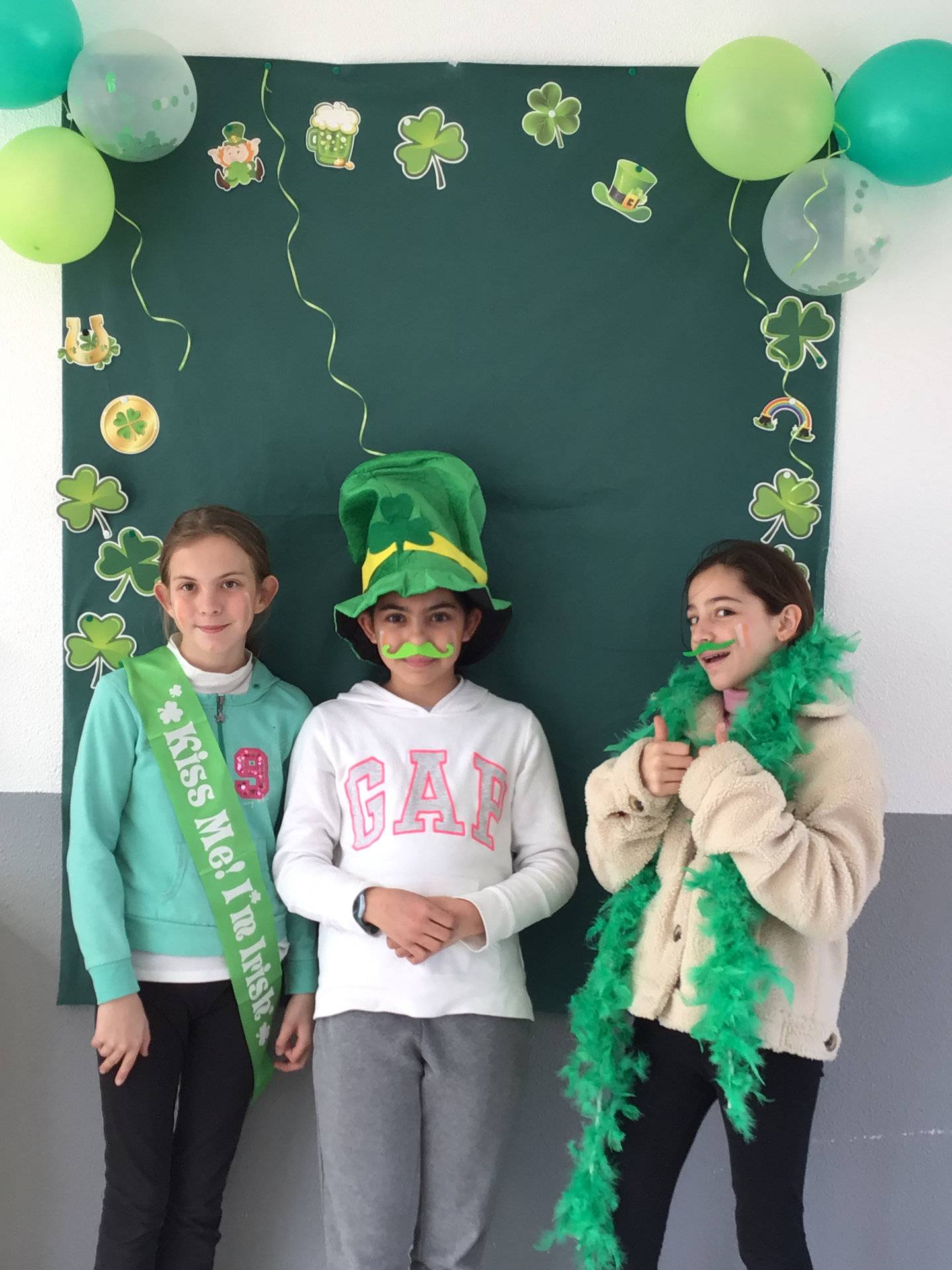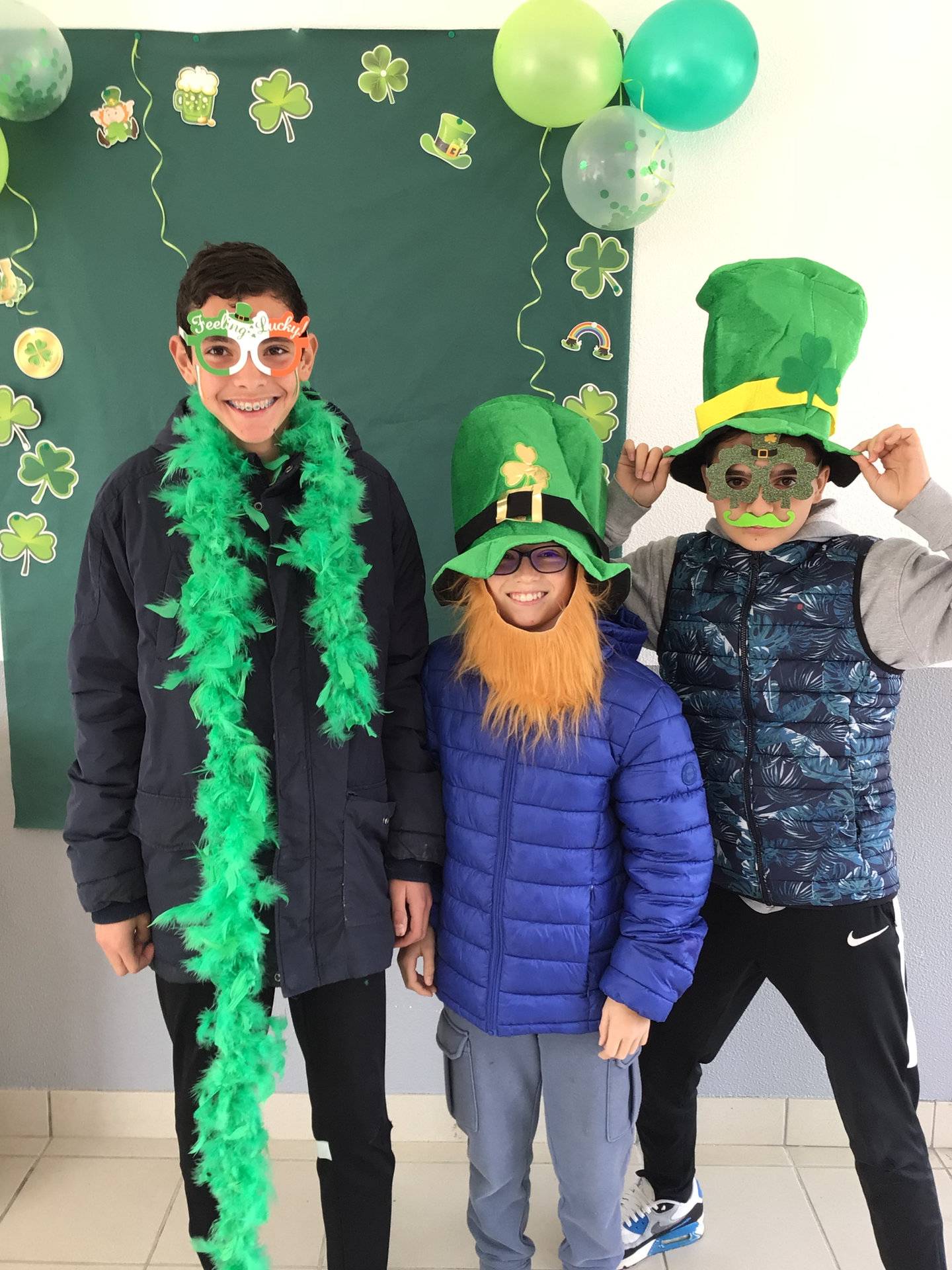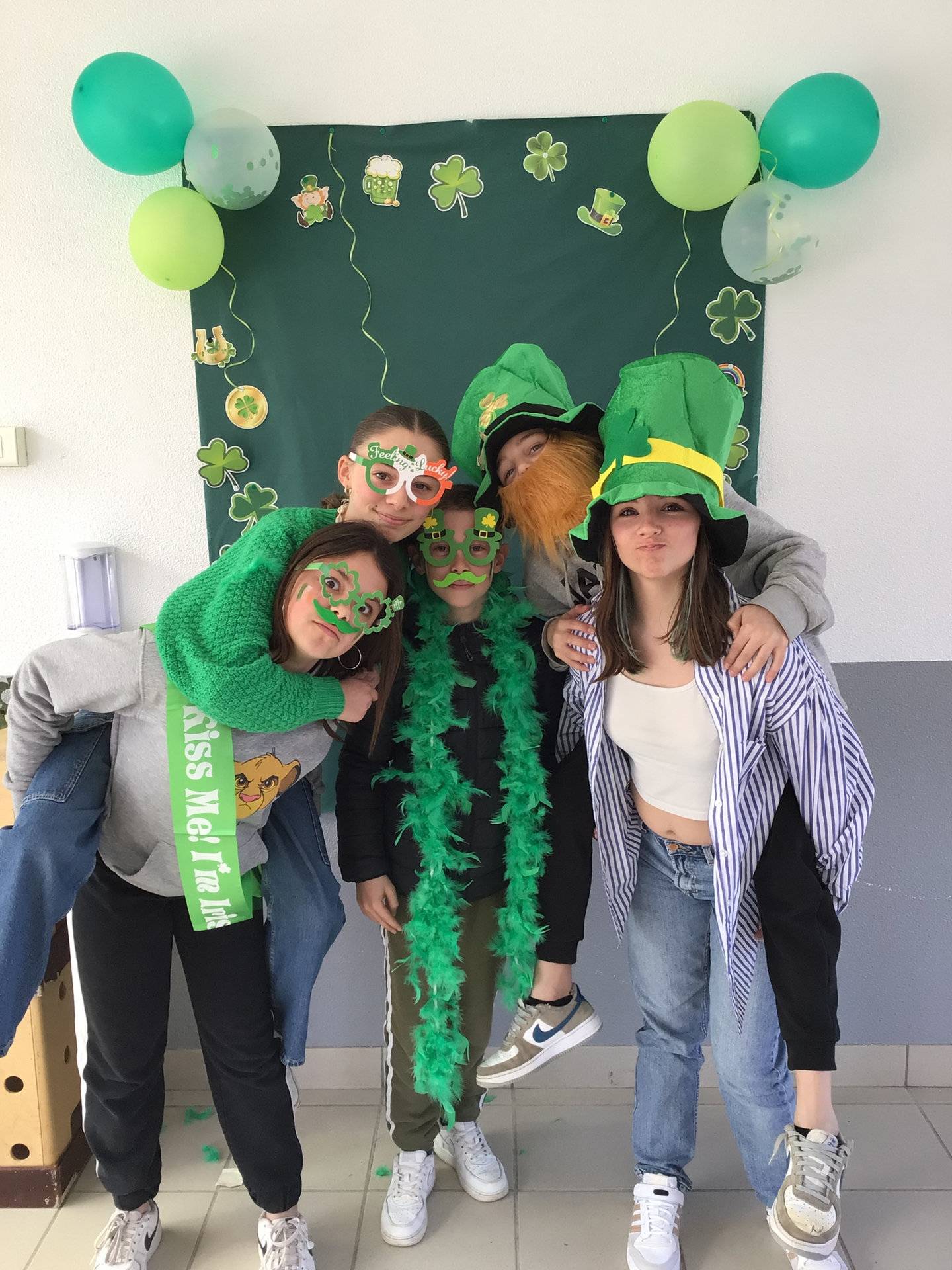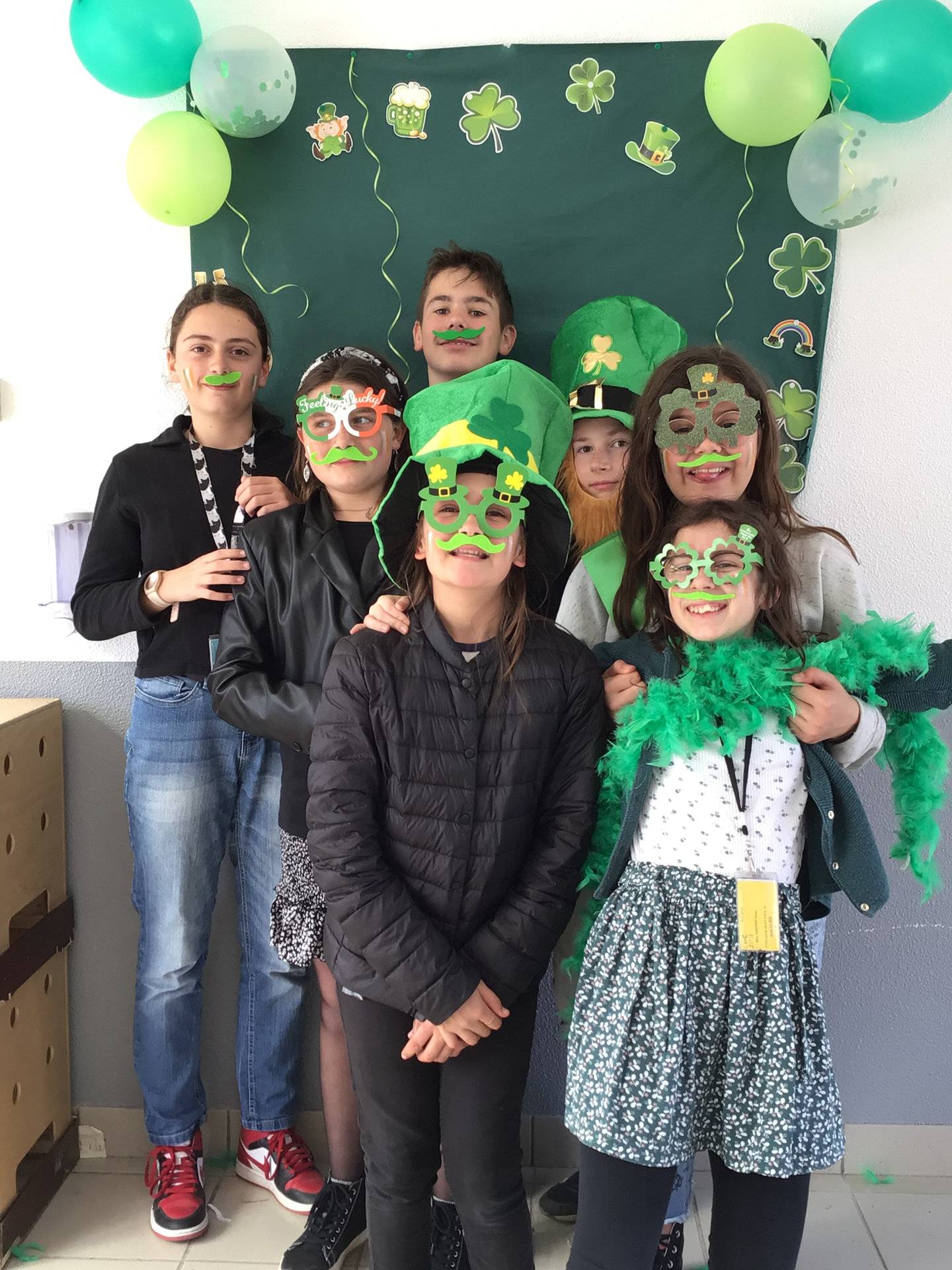 Repas irlandais à la cantine, photos dans la cour avec accessoires.