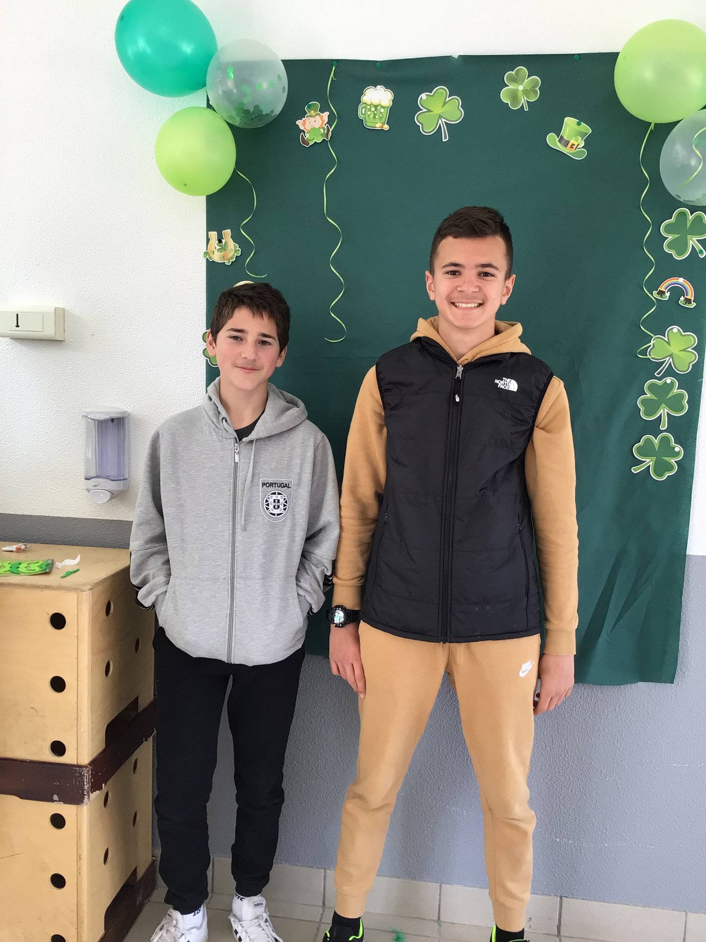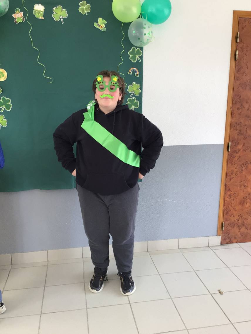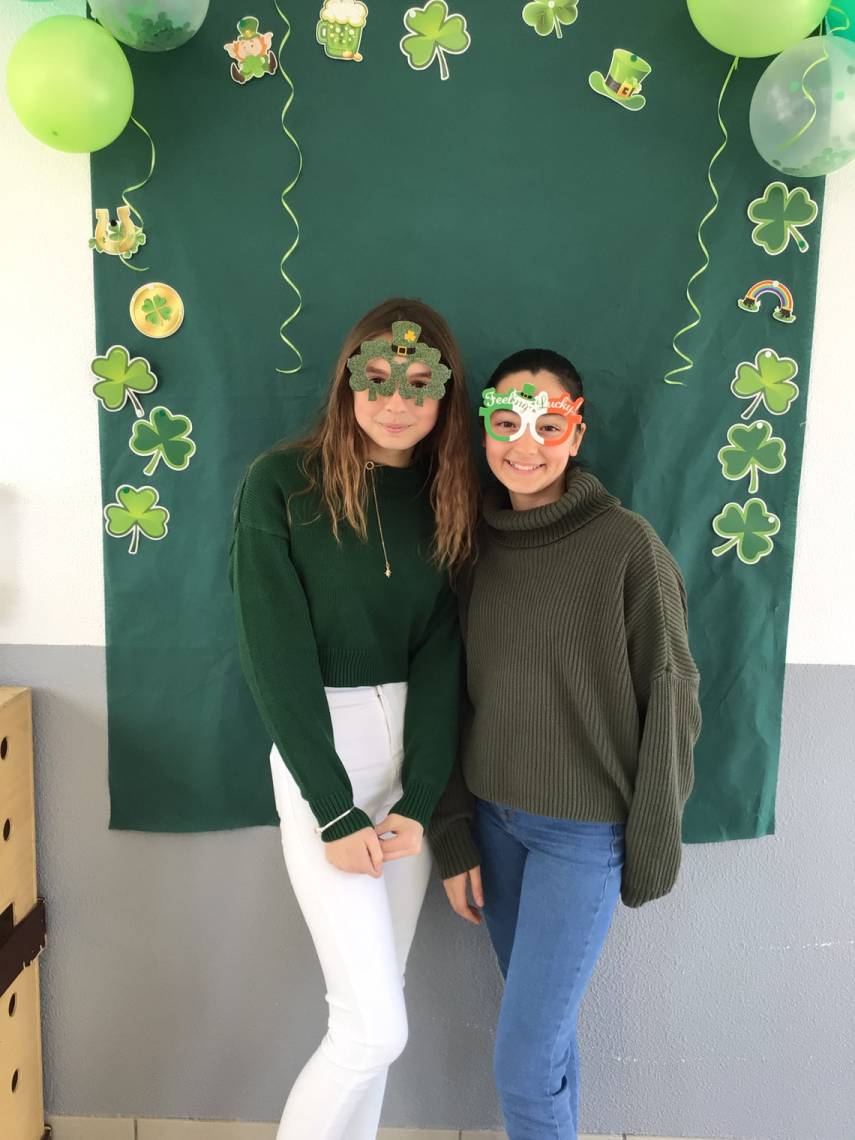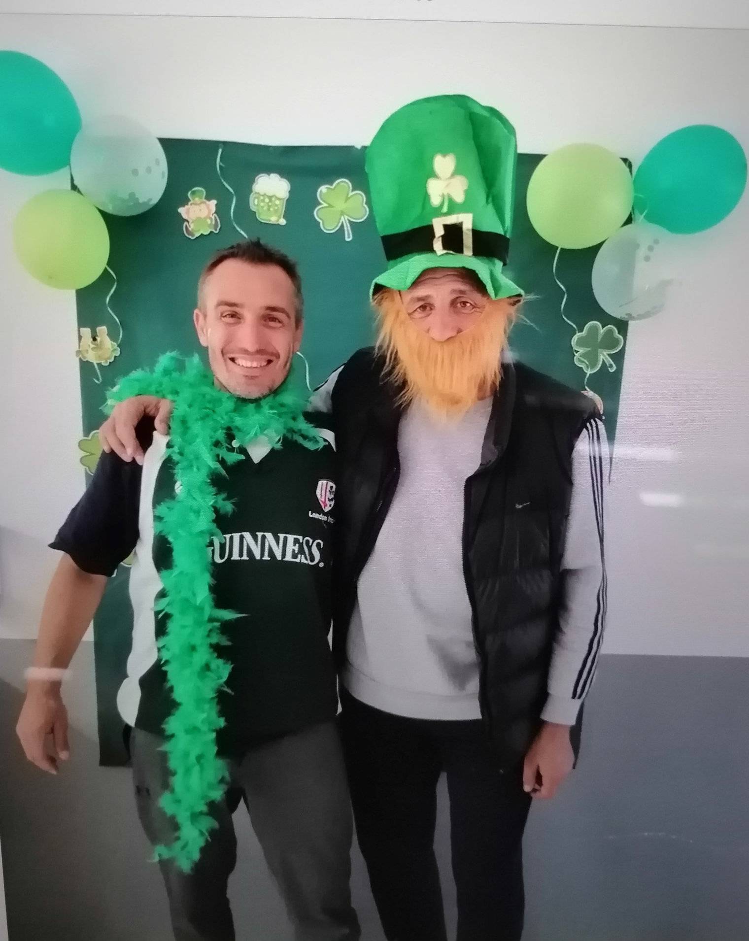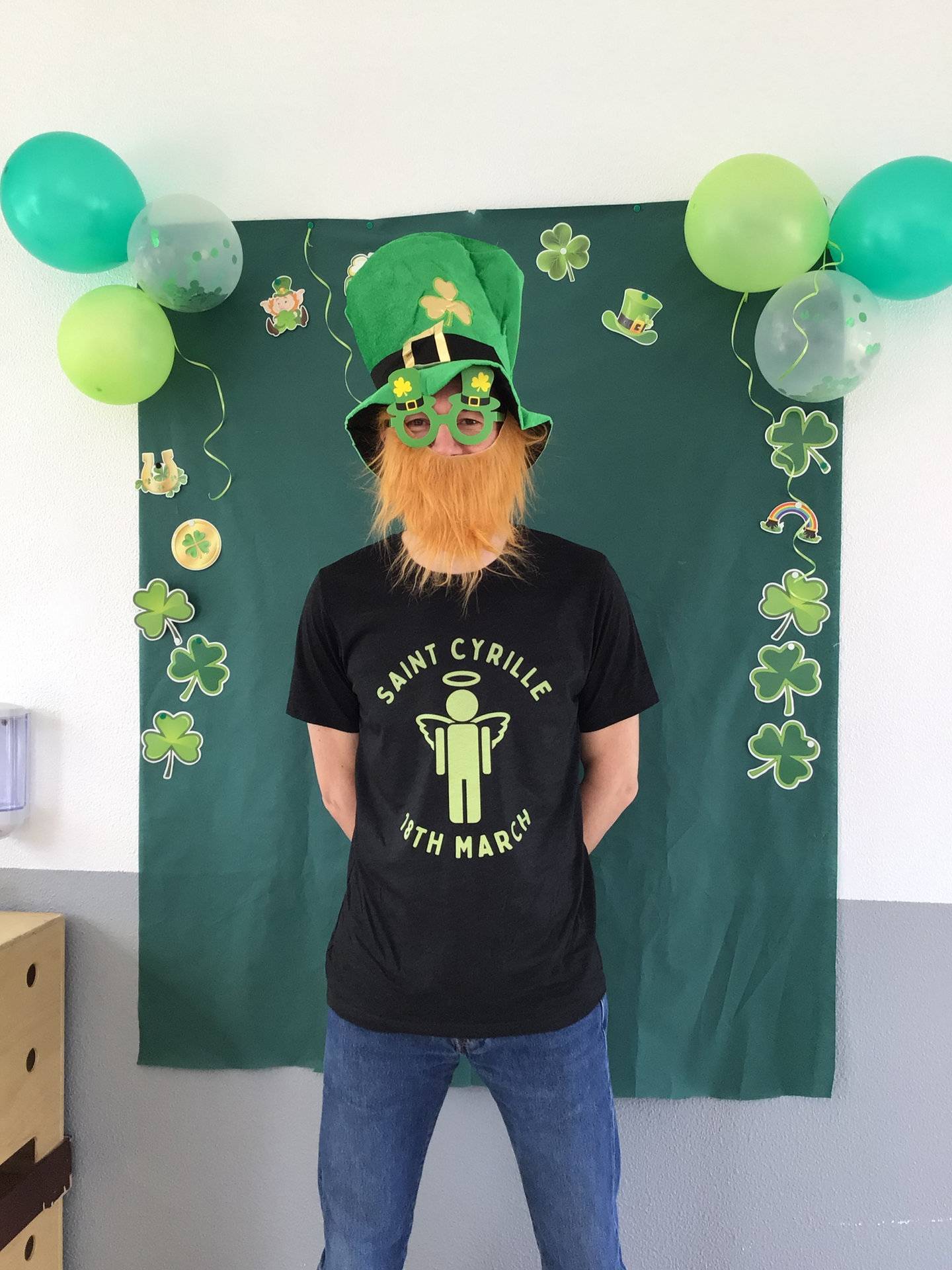 Repas irlandais à la cantine, photos dans la cour avec accessoires.