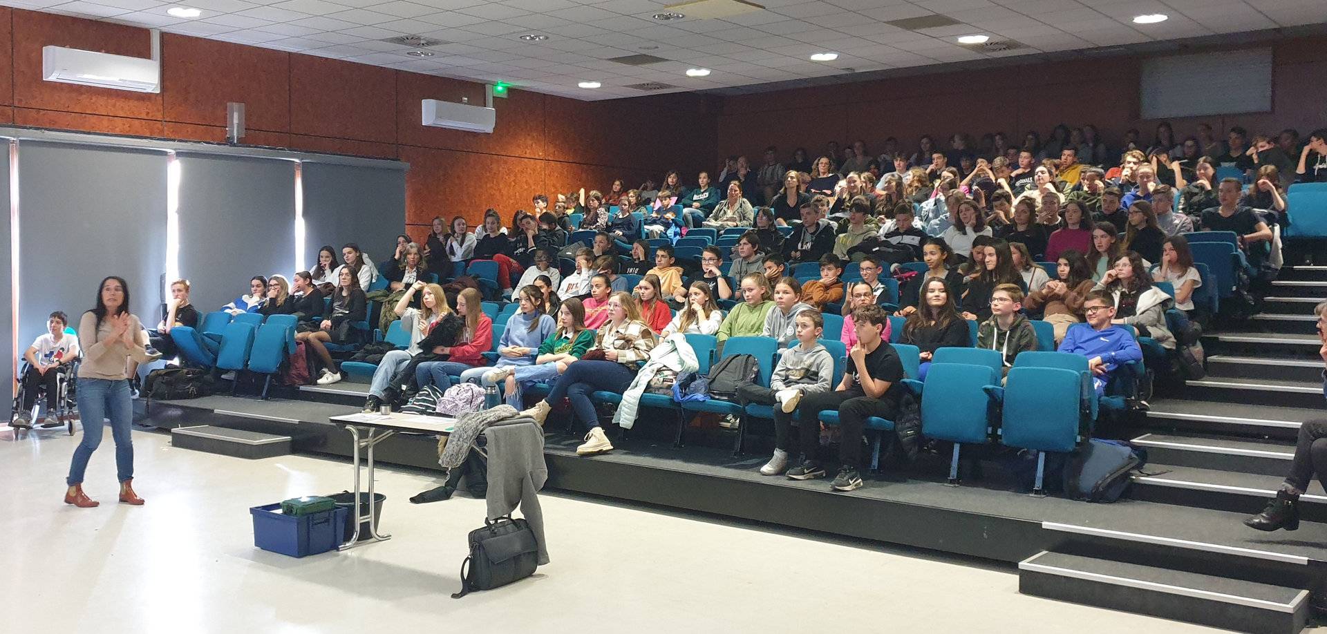 Tous les élèves et personnels étaient conviés mardi 21 mars en salle Paul Claudel pour participer à une réunion "développement durable" organisée par l'équipe de direction, Laurianne Berchoux et Sandrine Rieux. Nathalie Van Troys directrice de l'ensemble scolaire est intervenue sur l'ensemble de la journée pour insister sur la nécessité plus que jamais d'agir que ce soit pour des questions de bon sens ou de règlementation à respecter.