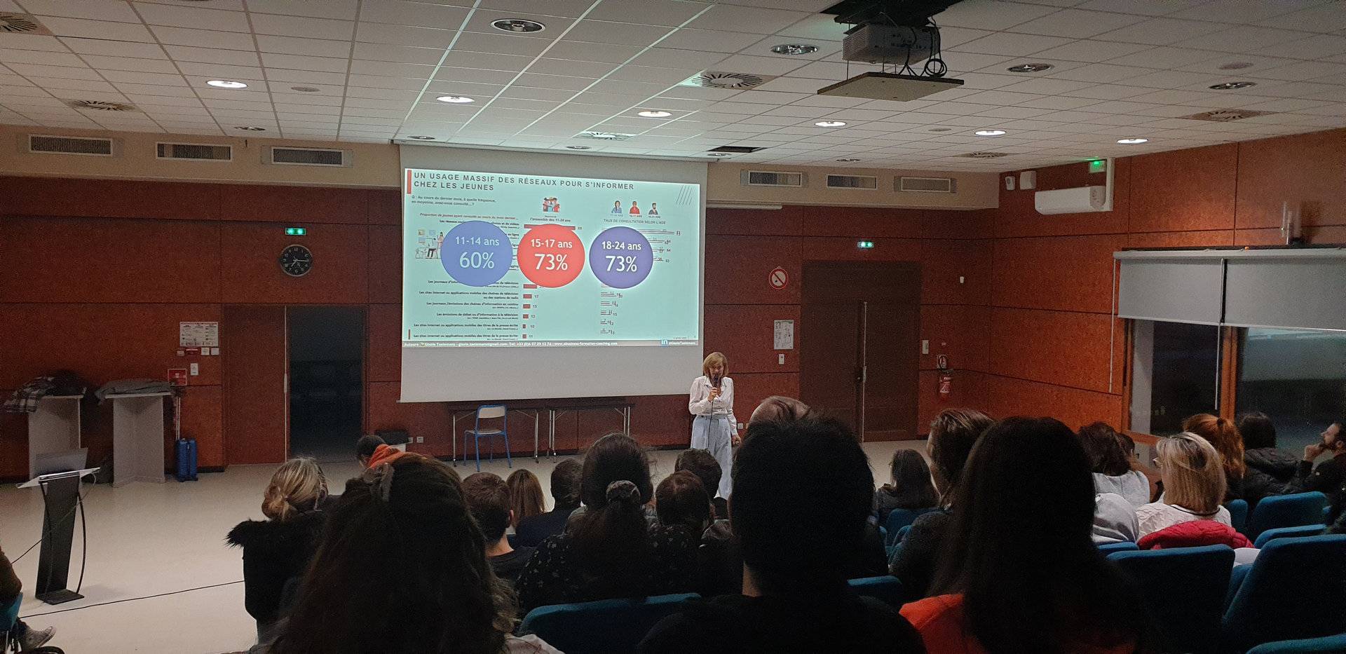Le 23 mars dernier nous avons pu accueillir Gisèle Taelemans pour une conférence/débat organisée par le CJD Nord-Isère (Cercle des Jeunes Dirigeants) dans notre belle Salle Paul Claudel au sein de l’établissement. Les Dirigeants, communauté éducative, administrateurs, parents et apprenant ont pu prendre conscience de l’influence négative des réseaux mais aussi et surtout des influence et utilisation positive et incontournable de ses réseaux pour vivre dans notre temps ! Des conseils pour vérifier l’information et pour protéger son profil, complétés avec le message de devenir acteur actif et constructif des réseaux sociaux.