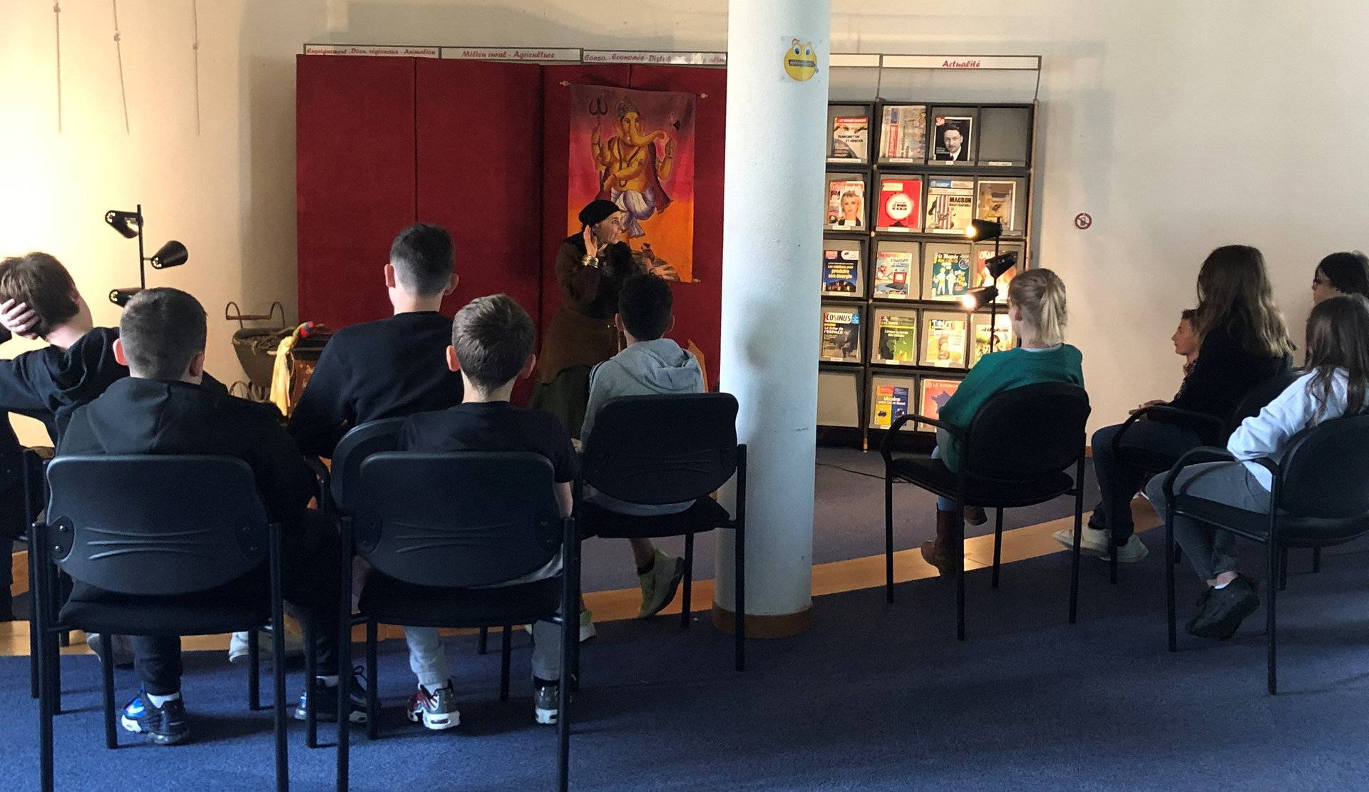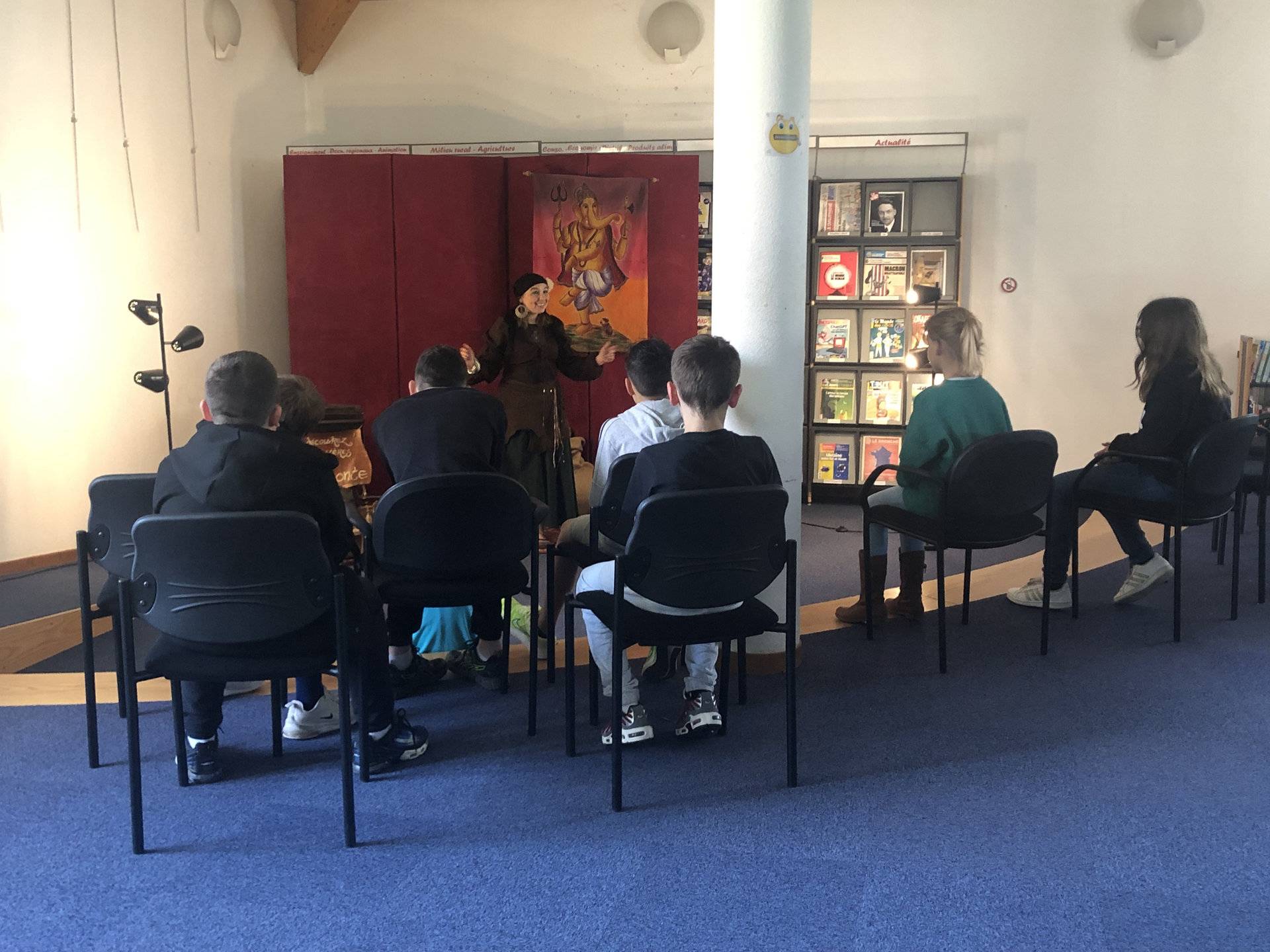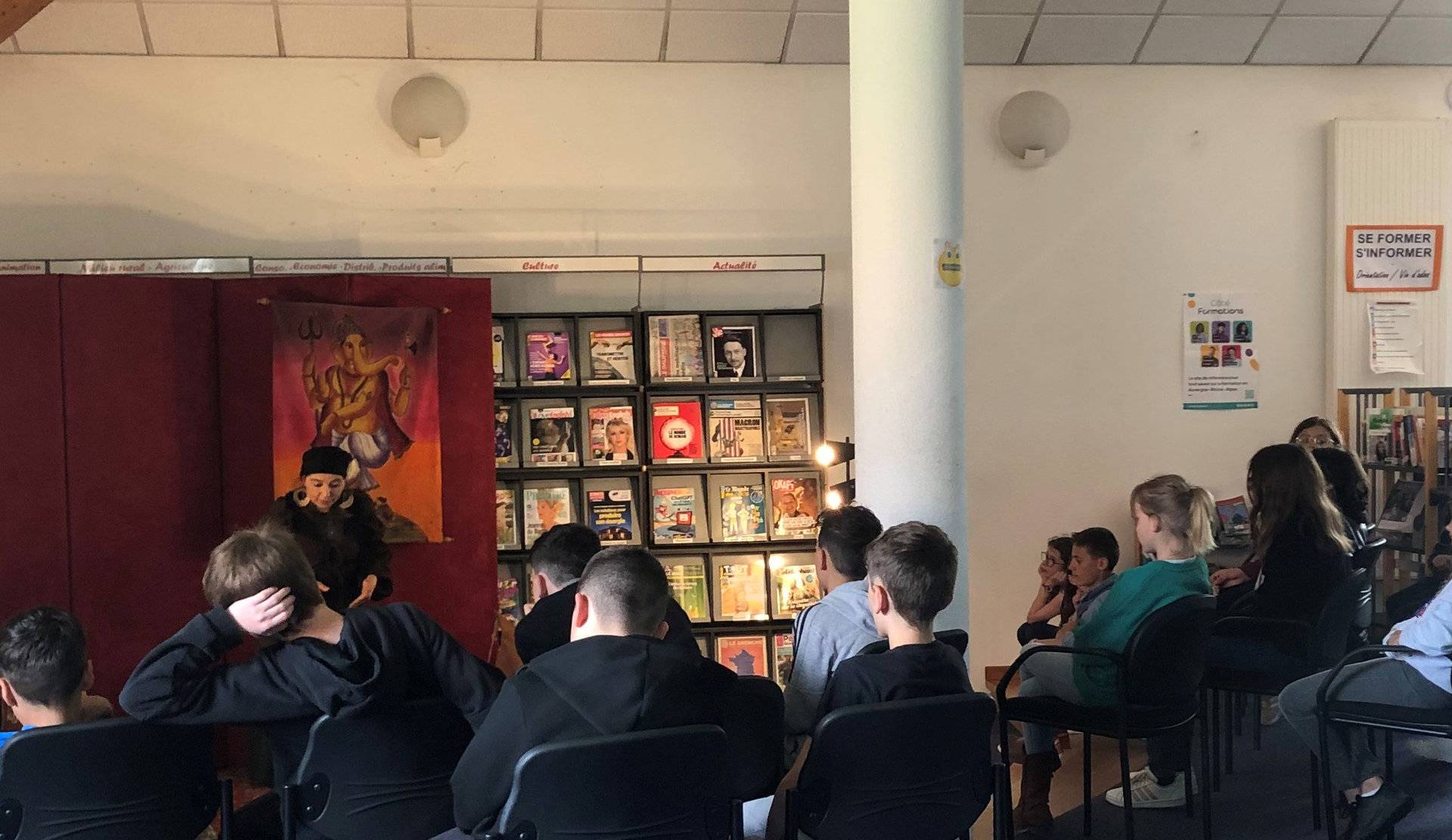 Mardi dernier nous avons reçu Jocelyne Merle, Conteuse, accordéoniste, et chanteuse. Et je tenais à remercier le personnel du CDI et tout nos collègues qui sont venus assister à son spectacle de BROC'CONTE. Un bric à brac d'objets contant des histoires de tous les continents. Un spectacle participatif ou un petit groupe d'élèves se sont plaisamment pris au jeu.