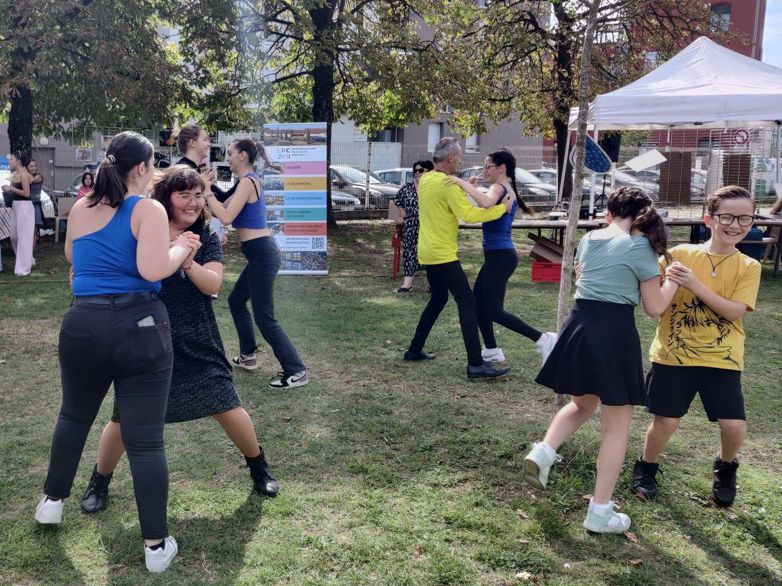 L'animation danse avait pour objectif de faire découvrir des danses latines(Bachata, Salsa,Cha-Cha, Kizomba. mais aussi d'autres horizons la Polka, le Zirtaki, le Kuduro...Quelques élèves danseurs volontaires, (seconde G, Terminale Sapat et Vente, Première G, terminale G, mais aussi nos collégiens EN et PRO) ont dansé sur différents rythmes tout au long de la journée , en suivant l'inépuisable Mr Morel (merci à lui pour cette énergie hors-pair!). Ils ont également invité à danser des familles, enseignants, participants au stand et membres de la Direction. Nous remercions également Mme Barrière pour sa très belle démonstration de rock avec Mr Morel. Quelle joie de danser tous ensemble avec une énergie et cohésion très enrichissante.
