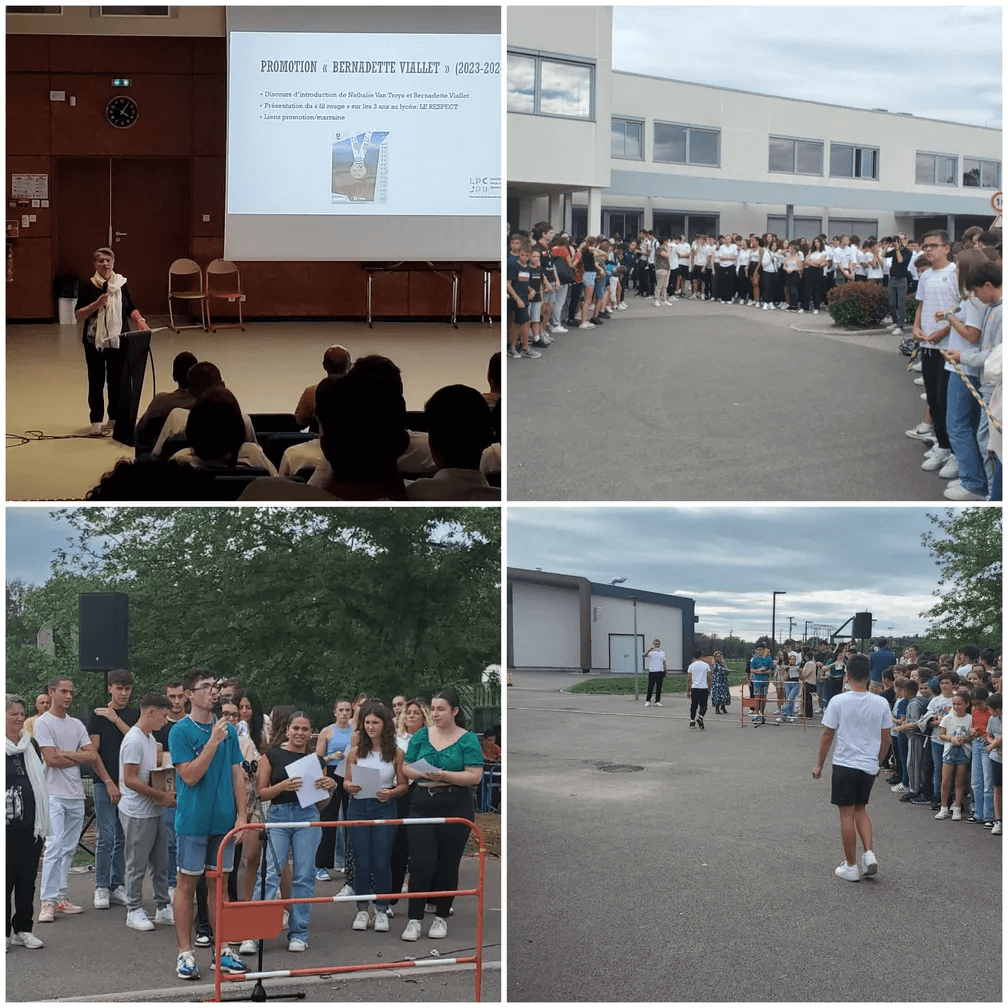 La cérémonie d'intronisation des secondes générales, professionnelles et CAP a été un moment fort pour notre établissement. Ces élèves ont reçu de beaux et touchants discours et ont symboliquement franchi la cour du collège au lycée sous les applaudissements. Ensuite ils ont reçu une médaille qu'ils transmettront à leur tour.