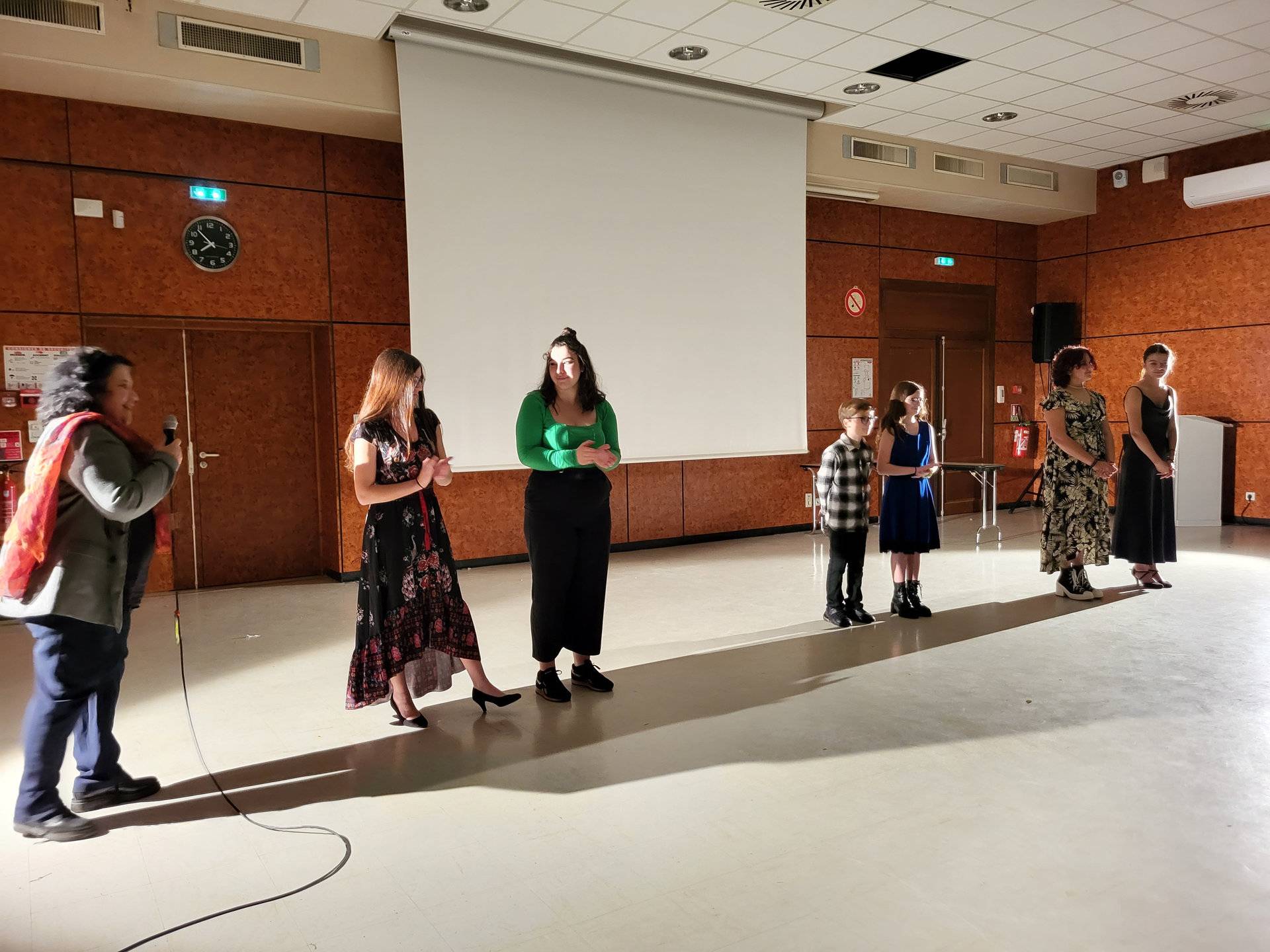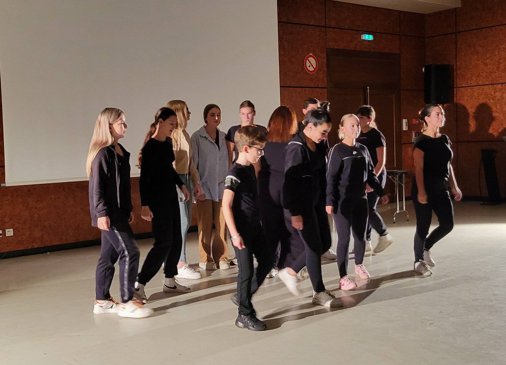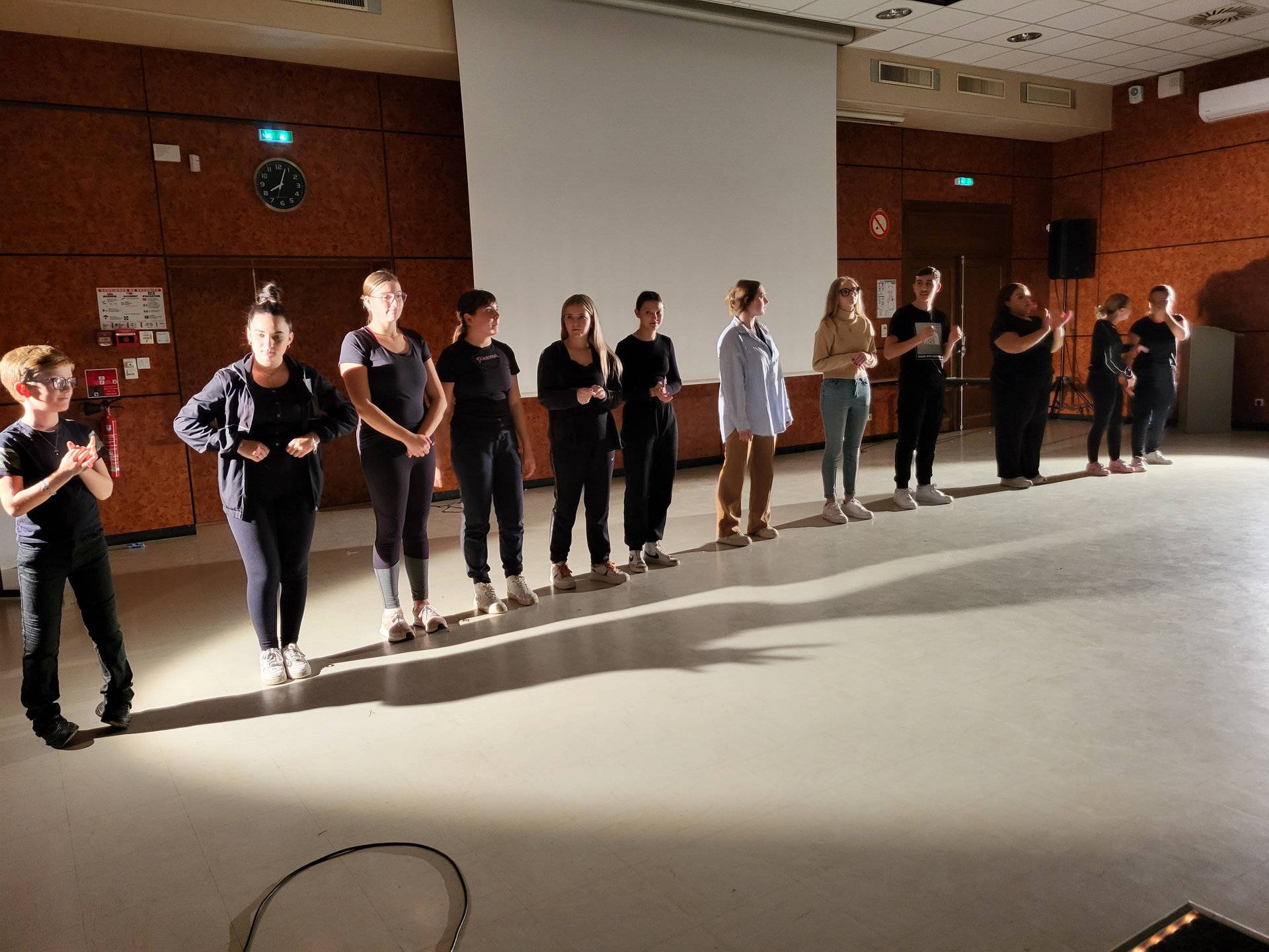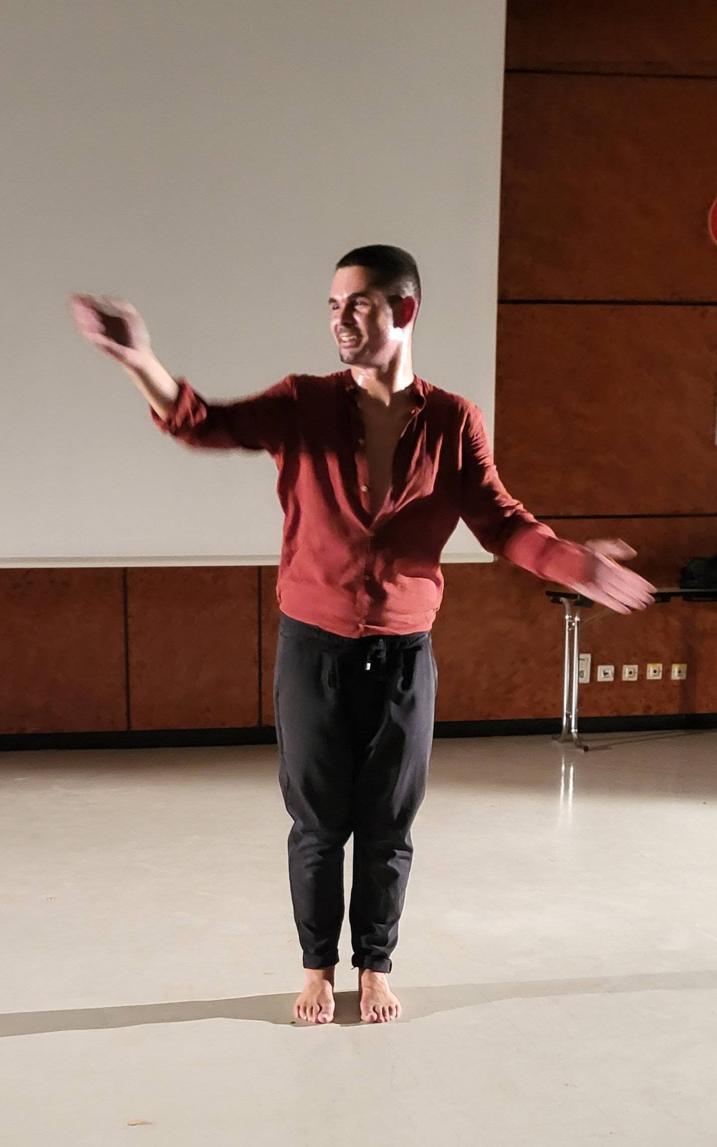 Le mardi soir nous avons également proposé une représentation à 19h30 en salle Paul Claudel pour les élèves concernés, parents d'élèves de ces classes et les membres du personnel. La première partie était composée d'une brève représentation du travail effectué (danse ) par les élèves volontaires qui ont participé à l'atelier, d'une ou deux danses de nos élèves danseurs et enfin en deuxième partie d' un spectacle solo du danseur Mattia Carlucci.