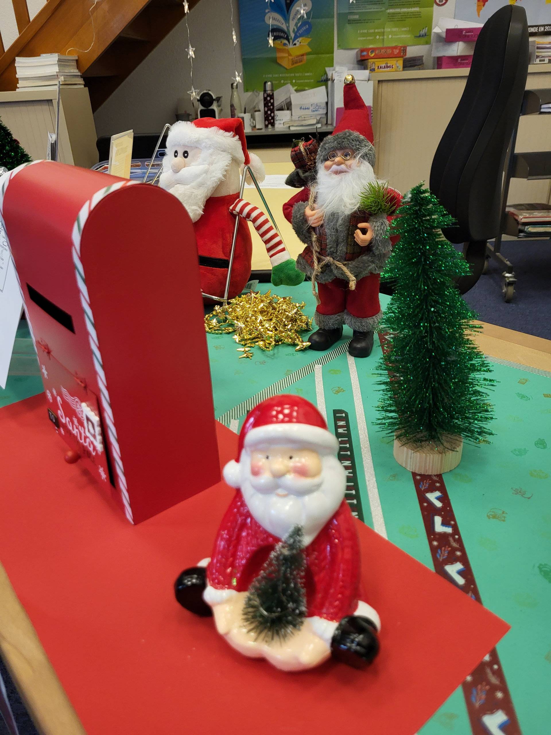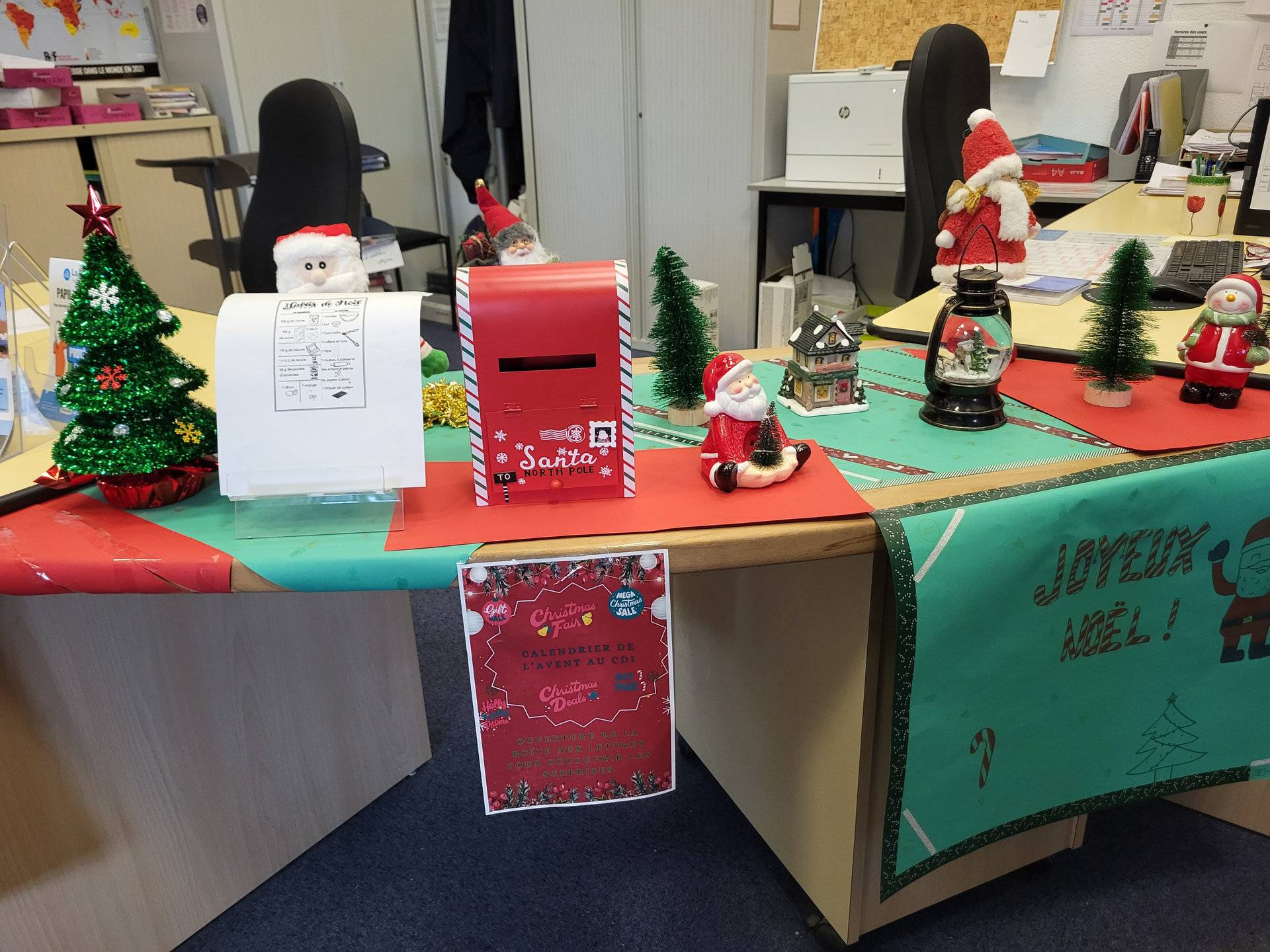 Un calendrier de l'Avent est à disposition sous forme de boite aux lettres, chaque jour, les élèves découvrent: Une énigme Mathématiques, une recette de Noël, une phrase positive ou un défi.