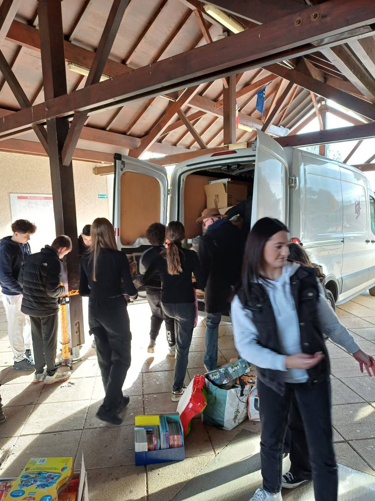 Encore une belle collecte cette année pour les resto du cœur jouets et livres remplissaient le hall de l'ensemble scolaire.