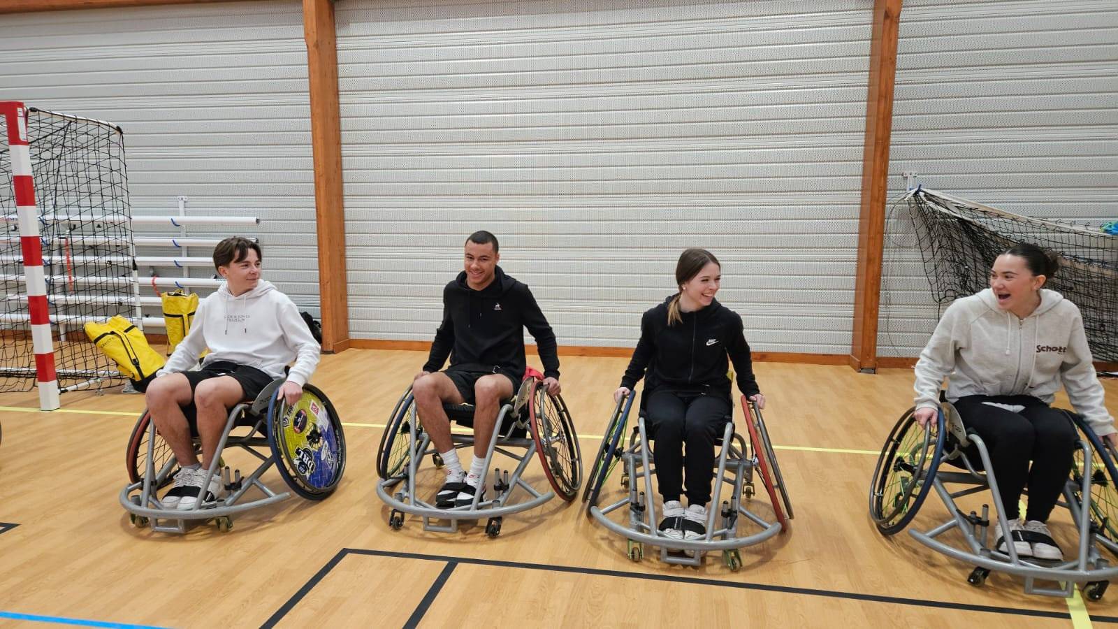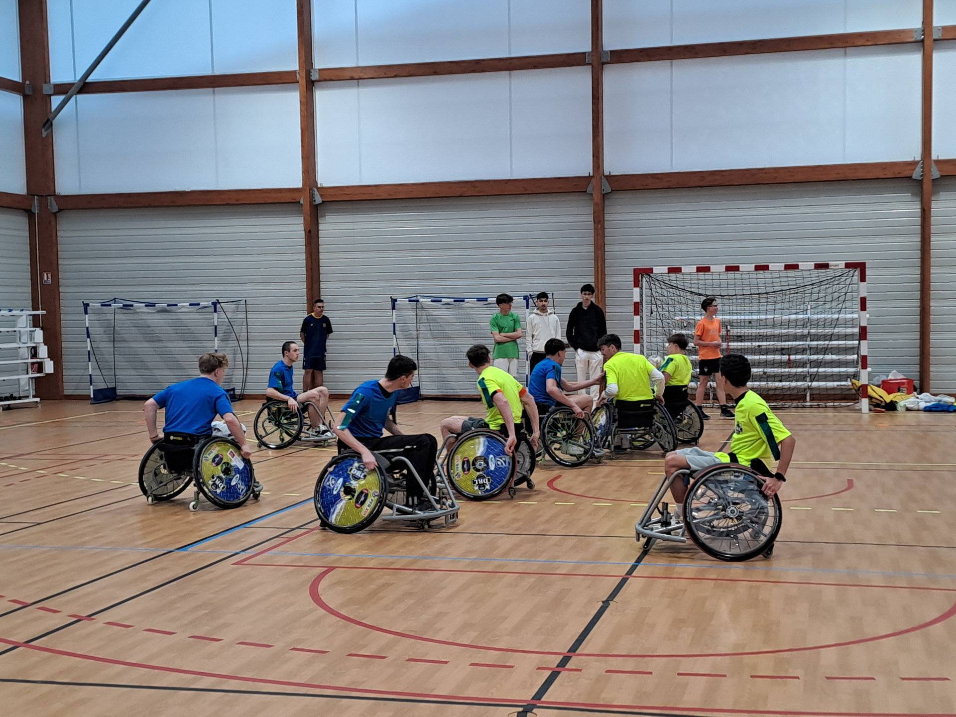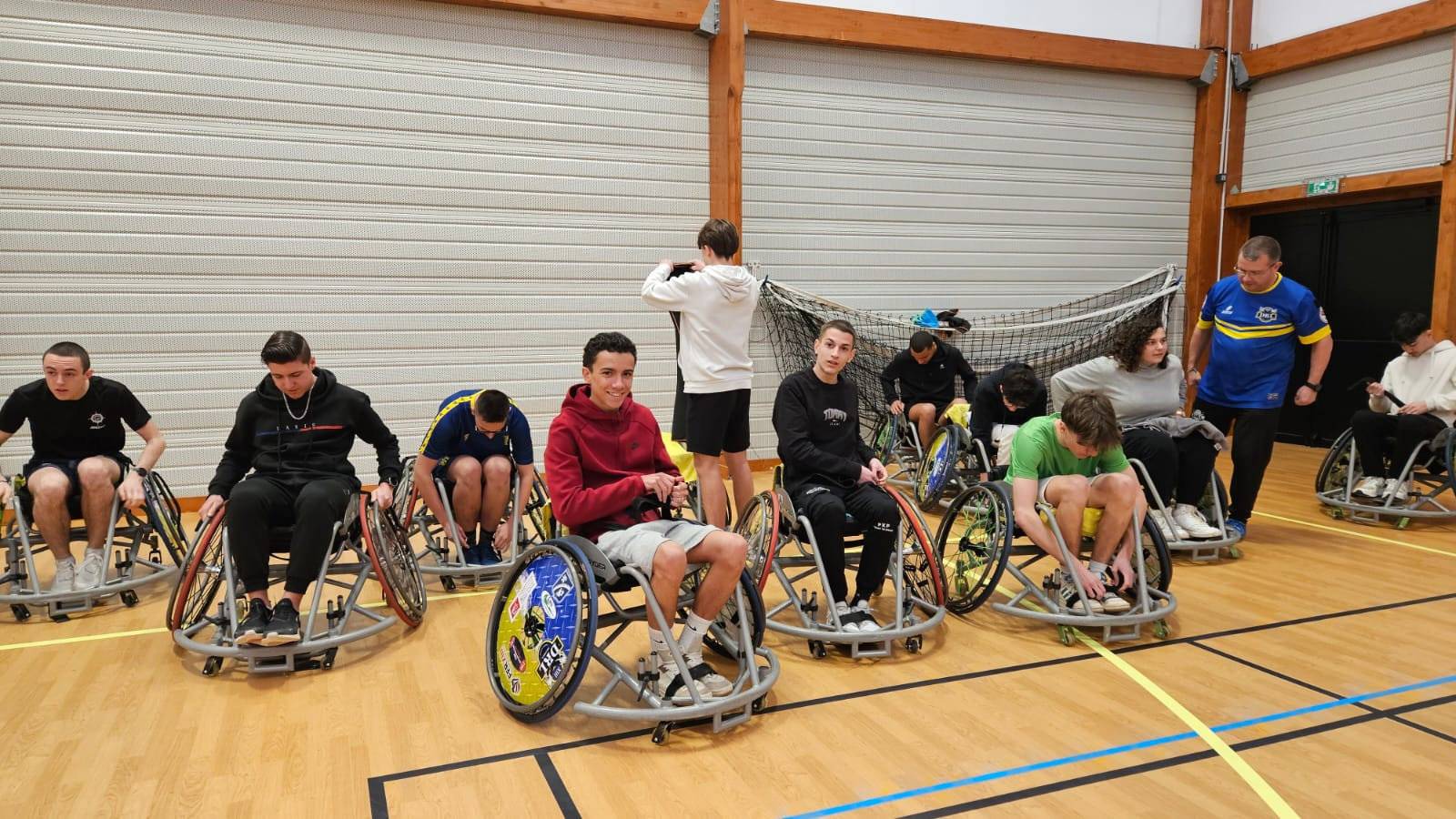 Dans le cadre de l'option sport les élèves de 1ere et terminale ont accueillis le club de Décines Rugby League 13, qui les a initié au rugby fauteuil.