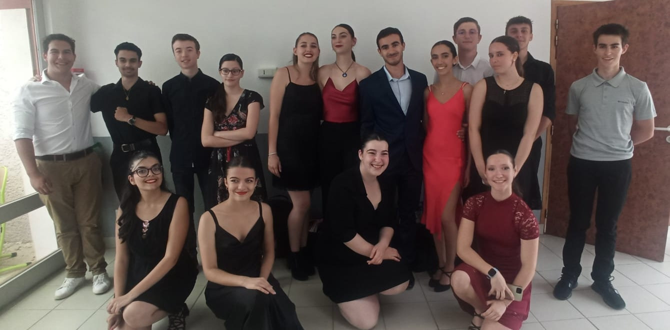 Une magnifique soirée colorée et chaleureuse est venue illuminer ce mois de juin : en effet, le 9 juin, les élèves du groupe de danse de Mr Morel et Mesdames Assade ont proposé un spectacle de danse très varié, pour les familles du lycée général et professionnel et tout le personnel .Pendant plus d’une heure trente, ils ont pris possession de la salle Paul Claudel sur des rythmes venant de différents continents : Amérique Latine (salsa, bachata, kizomba, tango ,merengue, cha cha, rumba),Amérique du Nord (Etats-Unis) (Madison), Afrique :kuduro (Angola) et Jéruzalema(Afrique du Sud) et bien sûr Europe avec le paso doble , le zirtaki, la polka et la valse. Les élèves danseurs étaient très élégants car ils avaient fait beaucoup d’efforts sur leurs tenues en les adaptant aux différentes danses. Les chorégraphies étaient travaillées avec Mr Morel, et Sara Assade pour le merengue. Les élèves ont proposé 16 danses et une bachata bis durant laquelle ils ont invité des enseignants, des membres de la direction et leurs familles à danser avec eux. L’ambiance était très festive et le public très actif en applaudissant, en suivant le rythme des musiques, pour soutenir nos danseurs qui avaient un peu l'appréhension de se produire devant une salle pleine. Quelques élèves avaient le traque également avant d’expliquer en espagnol mais aussi en anglais et en portugais, l’origine de ces danses. C’est un exercice difficile qu’ils ont parfaitement réussi.Merci à Mathis, Ofina (1ère G) Théo (Terminale Sapat)et Kim, Lois, Jules,Kilian et Robin (Terminale Générale) pour ces prouesses linguistiques.