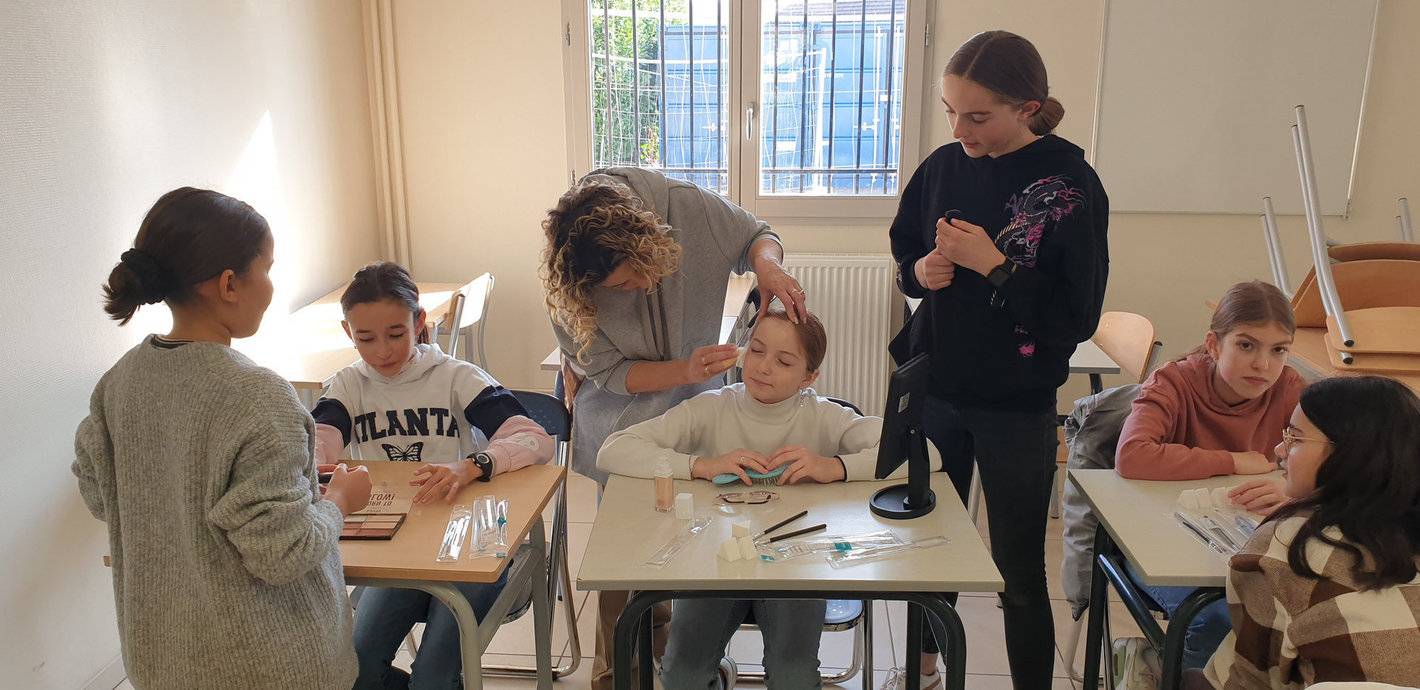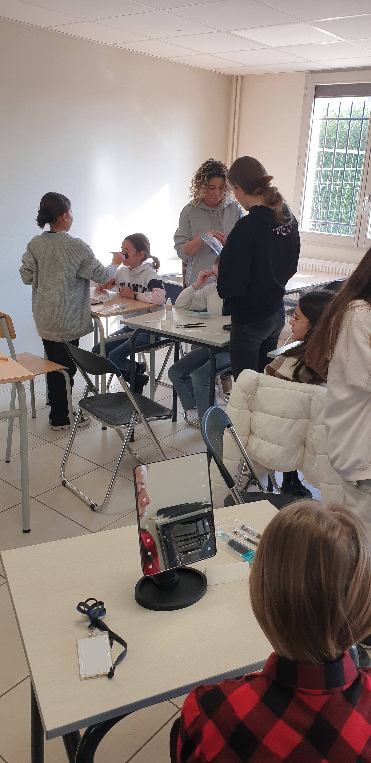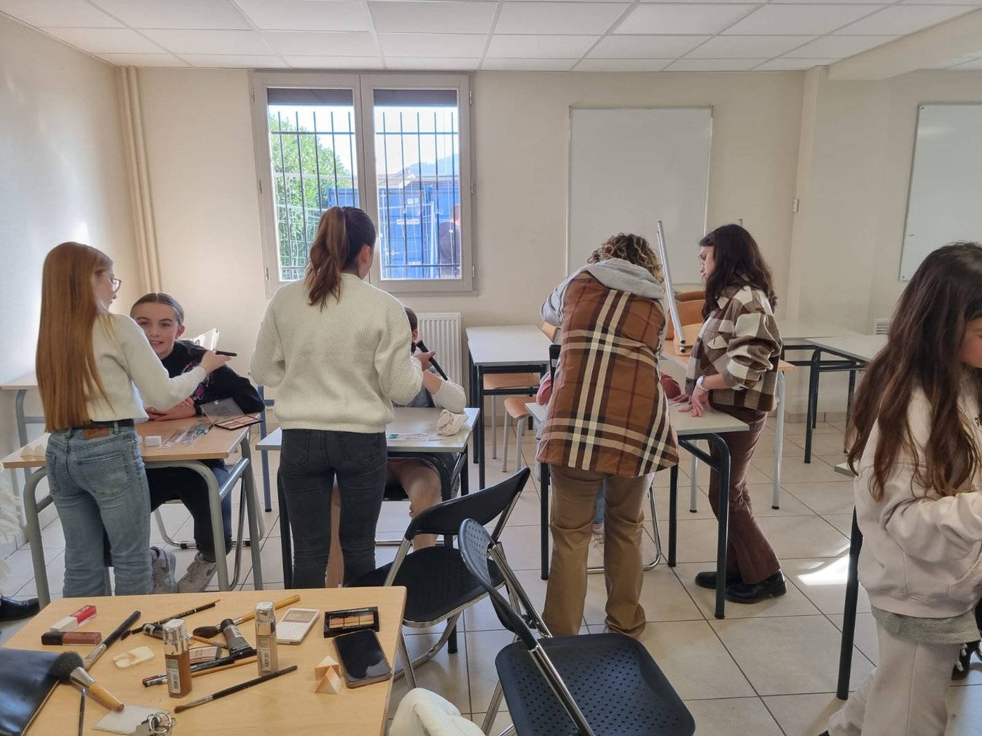 Les élèves de l'ensemble scolaire ont été conviés à un atelier maquillage durant la pause méridienne. Cindy était aux commandes pour donner des conseils make-up. Cet atelier permet aux élèves de comprendre comment adapter son maquillage aux différentes occasions (rdv professionnel, oral, stage...)