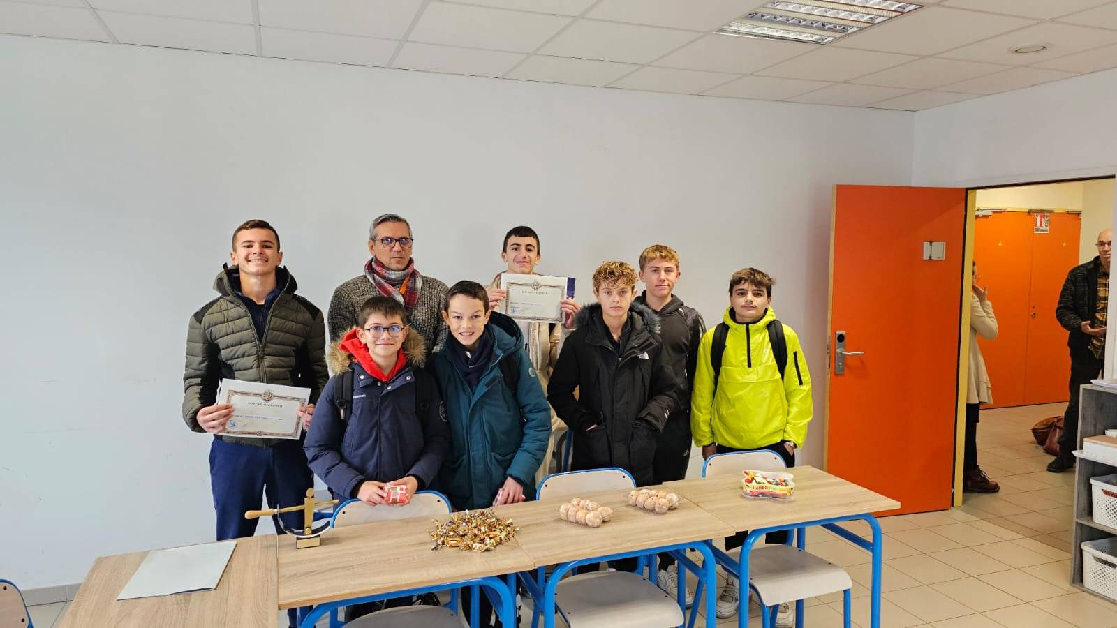 Remise des prix pour le tournoi annuel de baby-foot, en présence de Jade Sabot et Sébastien Fougerousse.