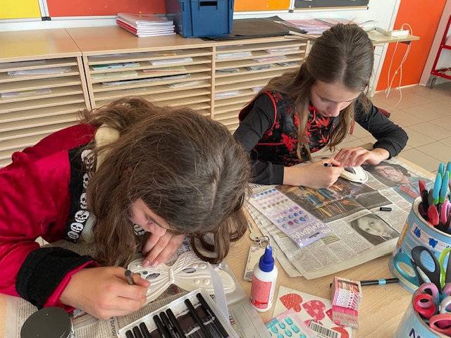 A l’occasion des festivités du carnaval qui s’est déroulé mardi 13 février, et de son fameux défilé déguisé, un atelier créatif s’est déroulé dans la salle d’Arts Plastiques de 13h30 à 14h10. Il a permis à nos élèves de parfaire leur tenue festive, en y ajoutant une touche de créativité.