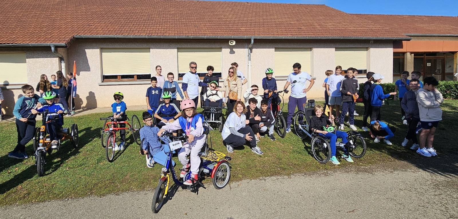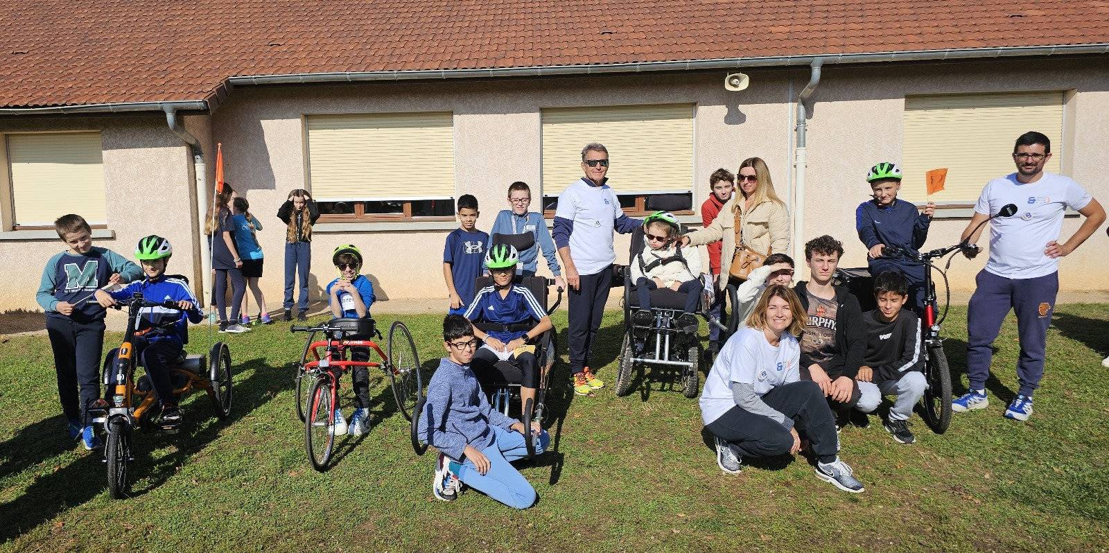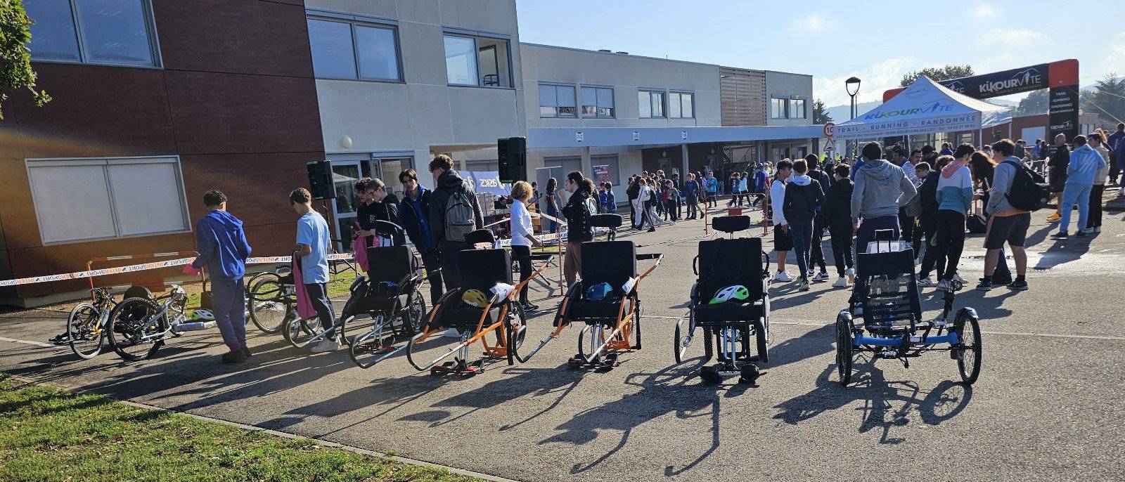 C'est par un magnifique temps automnal que s'est déroulé ce vendredi 11 oct le cross de l'institution sœur Emmanuelle en faveur de l'association Handi Move & Fun créée en 2022 par Julie en Coralie Bonnaire, présents à la manifestation. Plus de 1300 élèves et une vingtaine d'enfants en situation de handicap sur Joëlete ou tricycle ont participé à la manifestation.