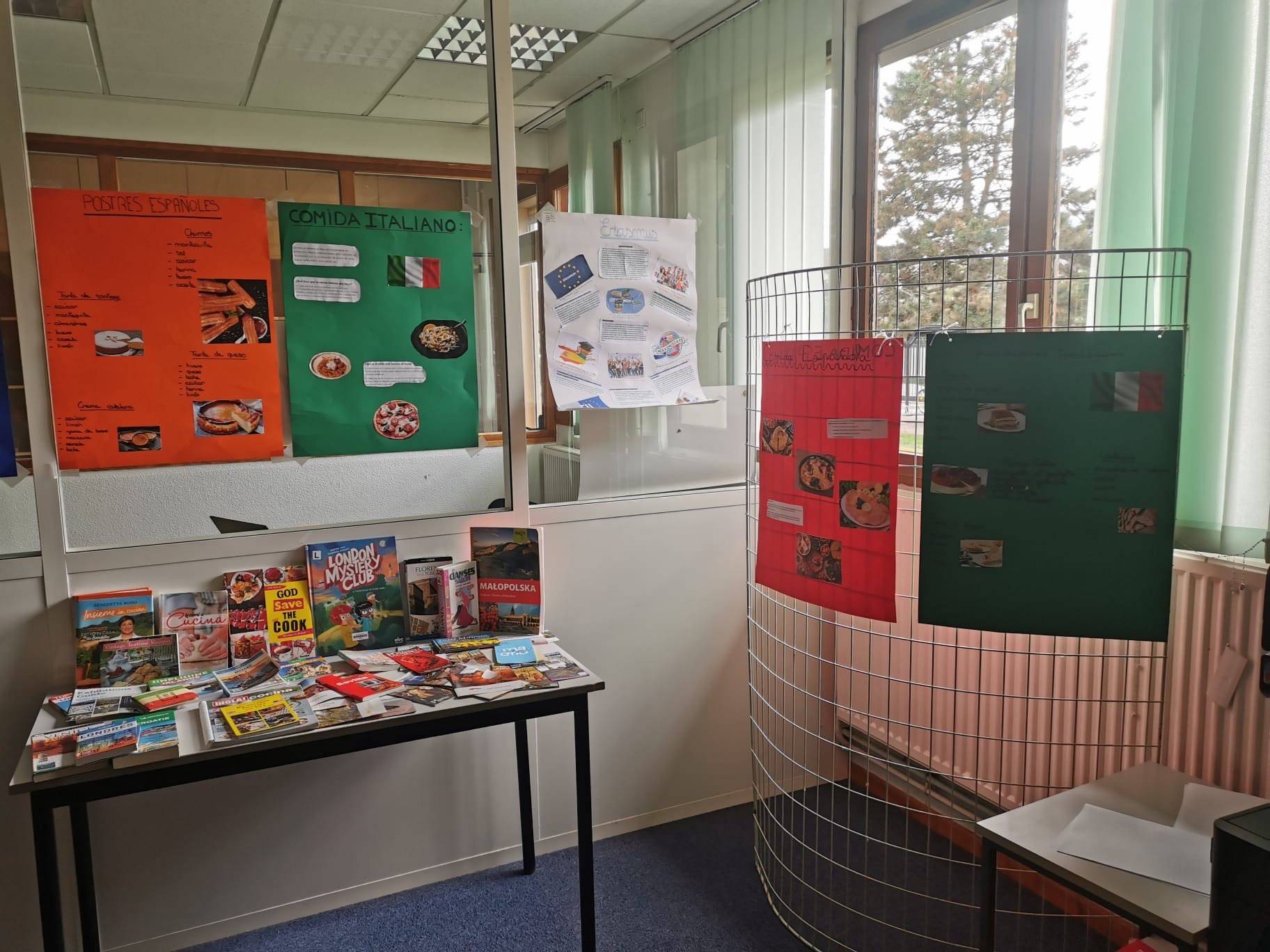 Pour cela, nous avons décidé de faire participer plusieurs classes en insistant sur différents pôles : la découverte de danses européennes, un goûter préparé par des élèves composé de spécialités européennes, une vidéo recueillant différents témoignages de stagiaires Erasmus. Parallèlement, une exposition sur les danses et des aspects culinaires des pays concernés était au CDI réalisée par les élèves de Première Sapat (en Anglais) et de Terminale G(en espagnol).Tout ceci en anglais et en espagnol avec de magnifiques dessins réalisées par une élève de Terminale, sans oublier la tenue de flamenco de Mr Morel.