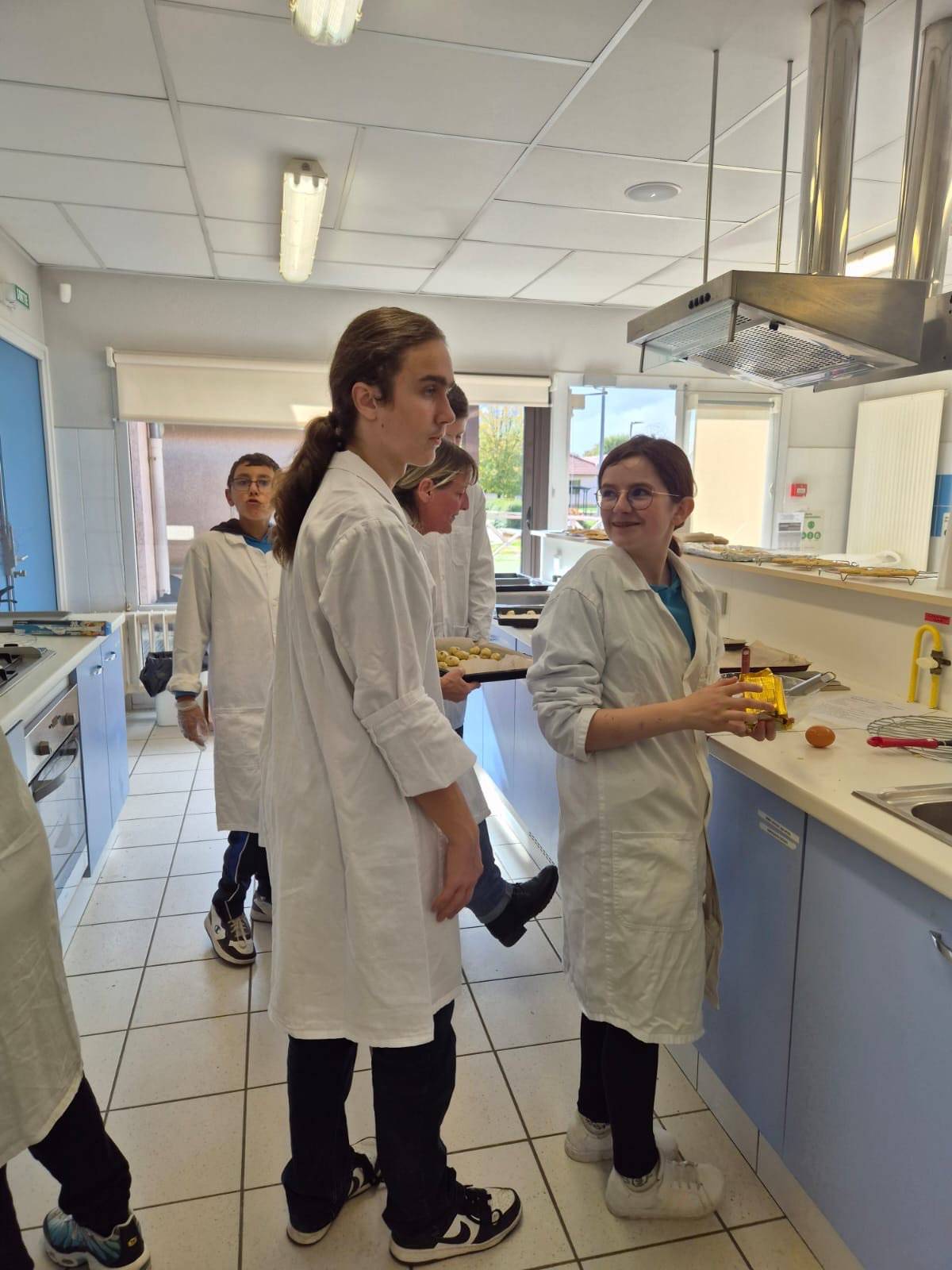 Le jeudi et le vendredi, la cuisine a été investie par différents groupes : les 3ème Pro ont cuisiné des spécialités britanniques et irlandaises (cookies, muffins, pancakes) sous les yeux bienveillants de Mmes Benedris et Sylvie Fournié.(In English of course !) Les 1ère Sapat se sont rendus en cuisine pendant le cours d’Anglais de Mme Assade pour confectionner les spécialités suivantes :applestrudel et sachertort (Autriche) Torta della Nonna (Italie) Tarta de Santiago (Espagne), Pasteils de Nata (Portugal).Cela leur a permis de découvrir des recettes inconnues !