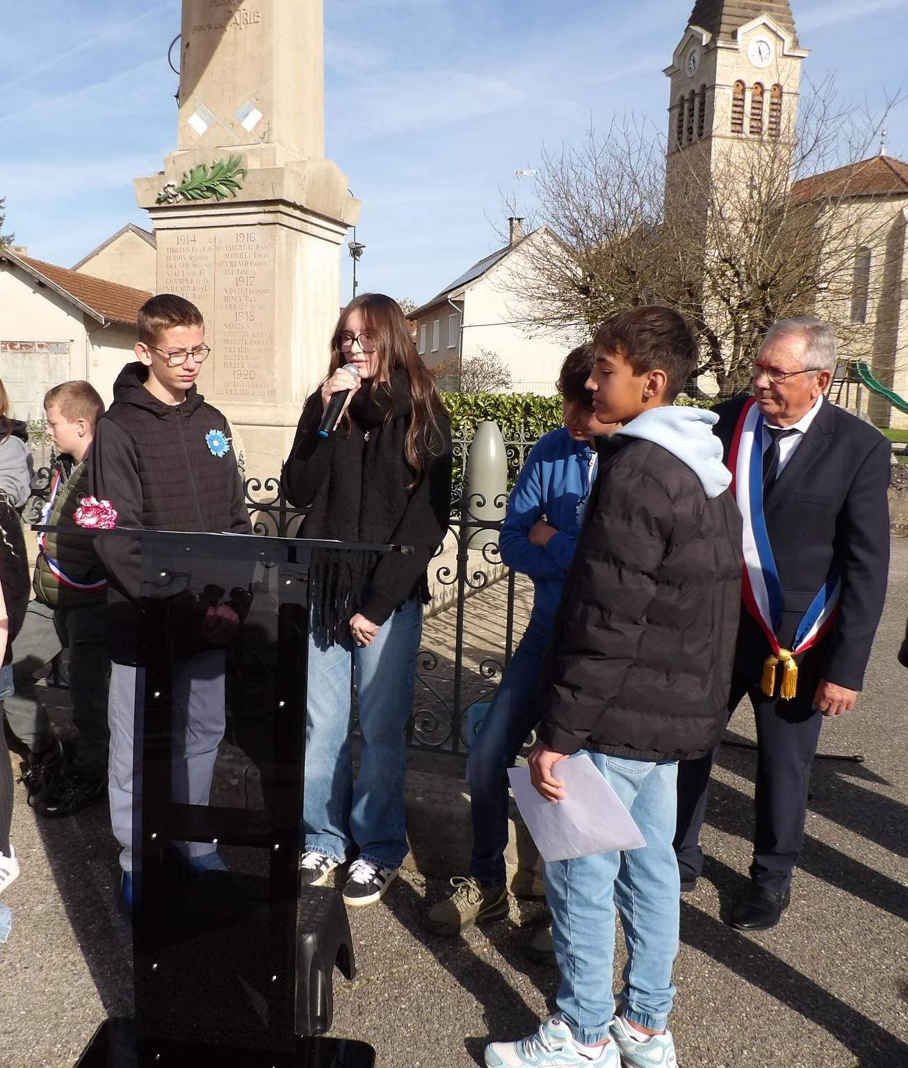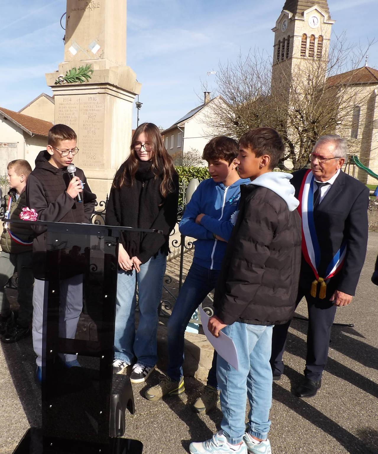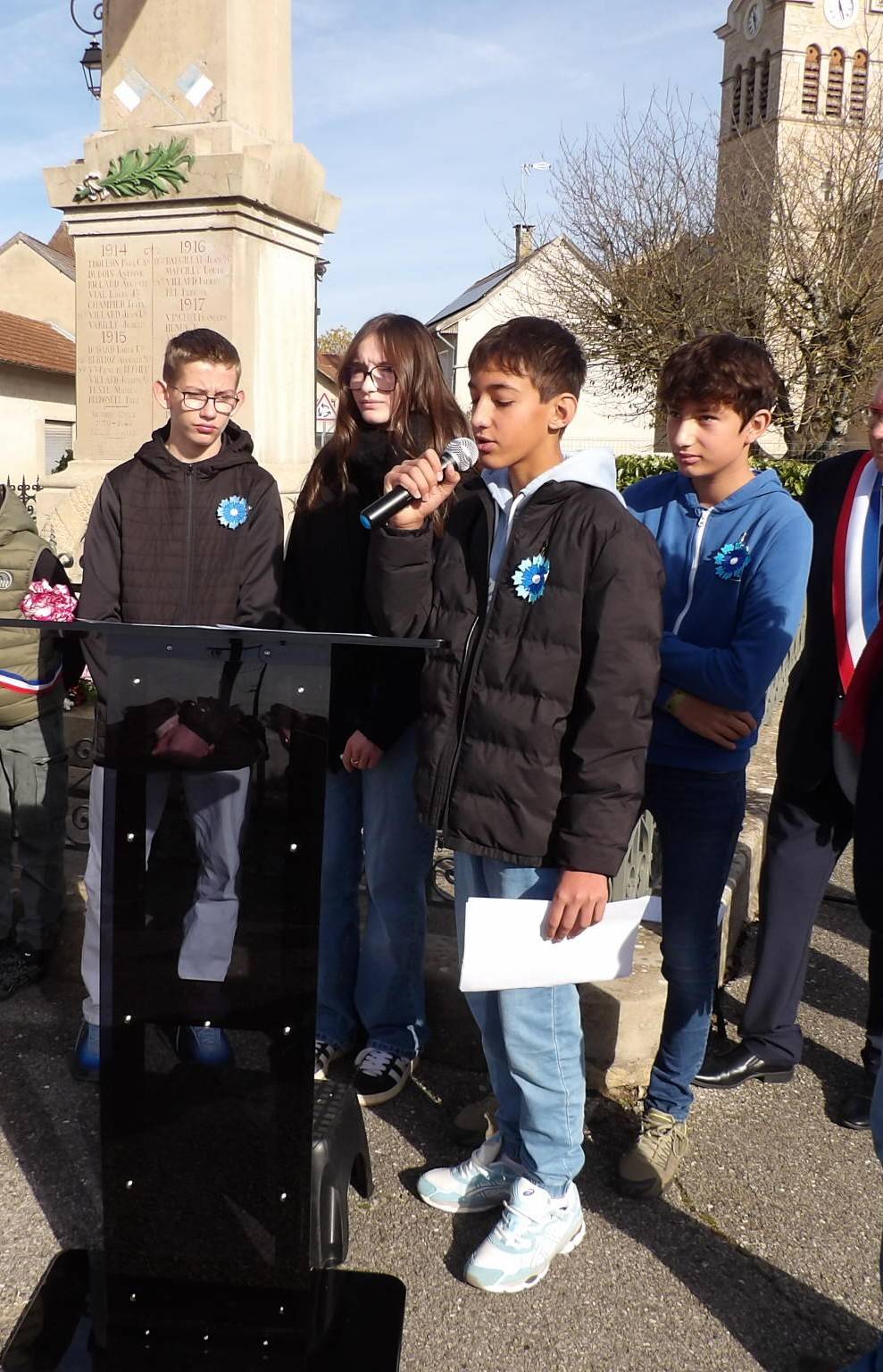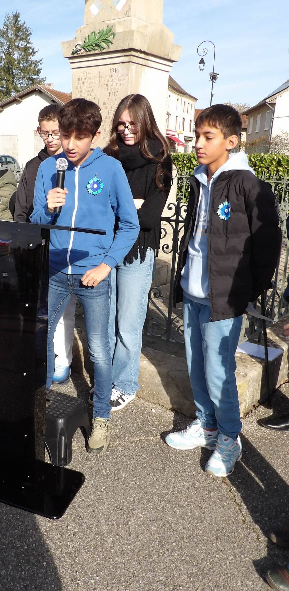 Ce mardi 11 novembre, quatre élèves de 3N1 ont eu l’honneur de participer à la cérémonie de commémoration de l’Armistice à Optevoz.