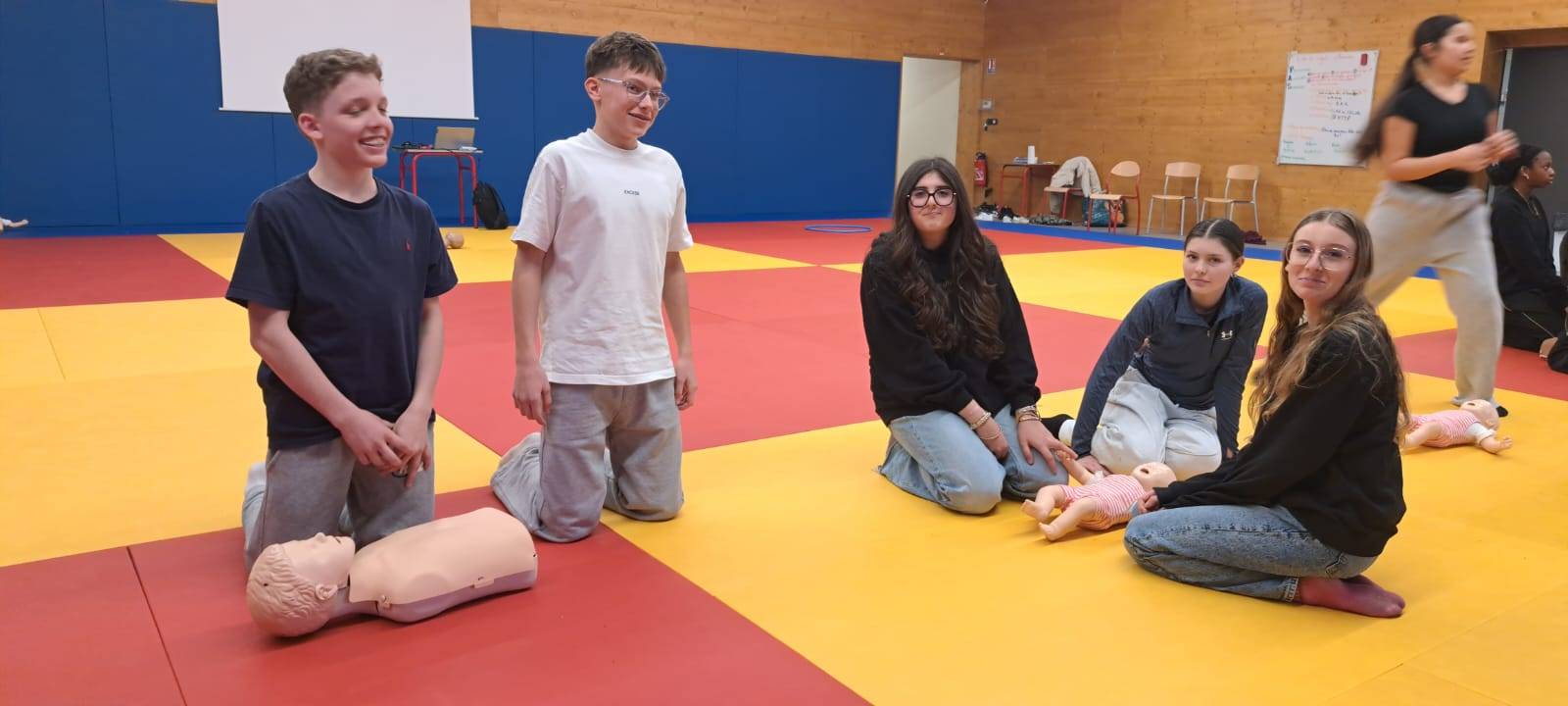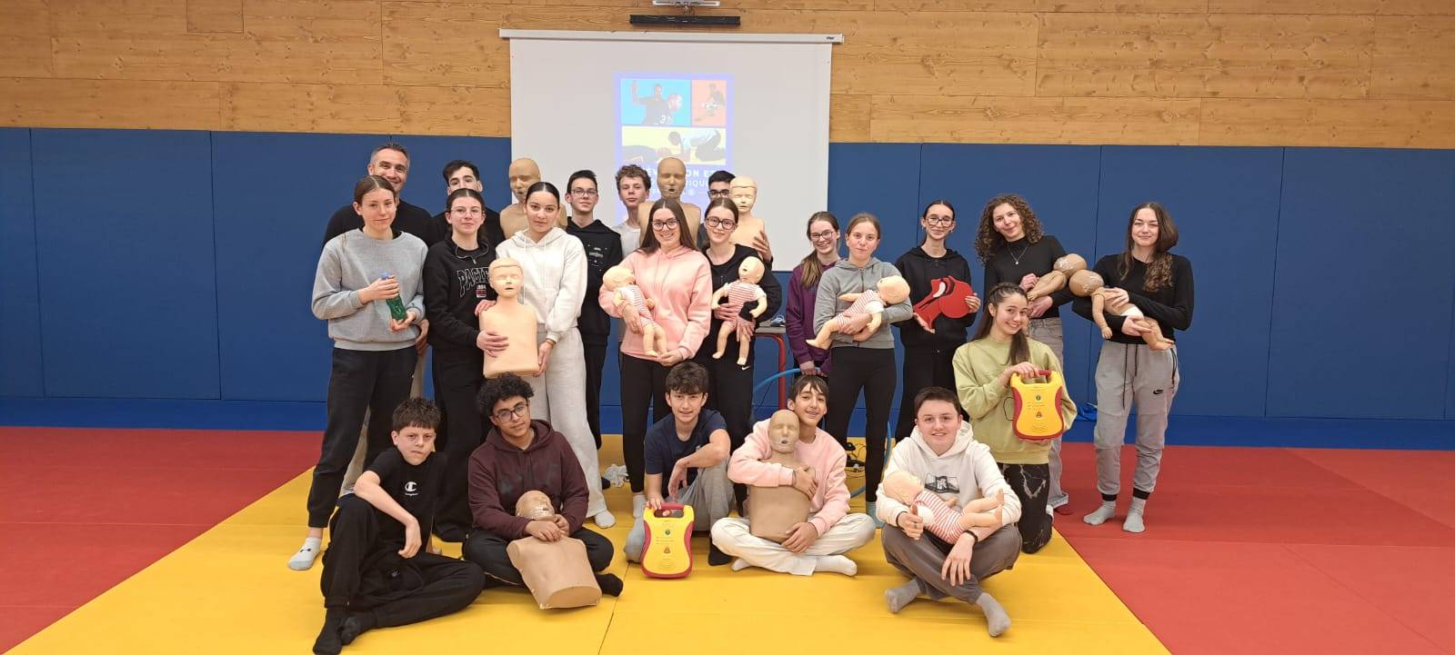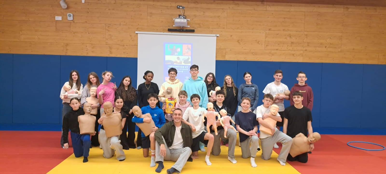 Suite à une sensibilisation menée auprès des classes de troisième du collège, 80 élèves ont répondu présents et se sont engagés dans une formation complète de 7 heures pour apprendre les gestes qui sauvent.