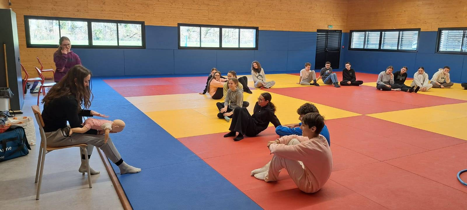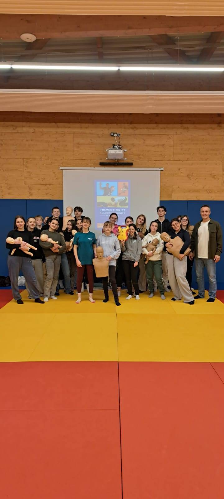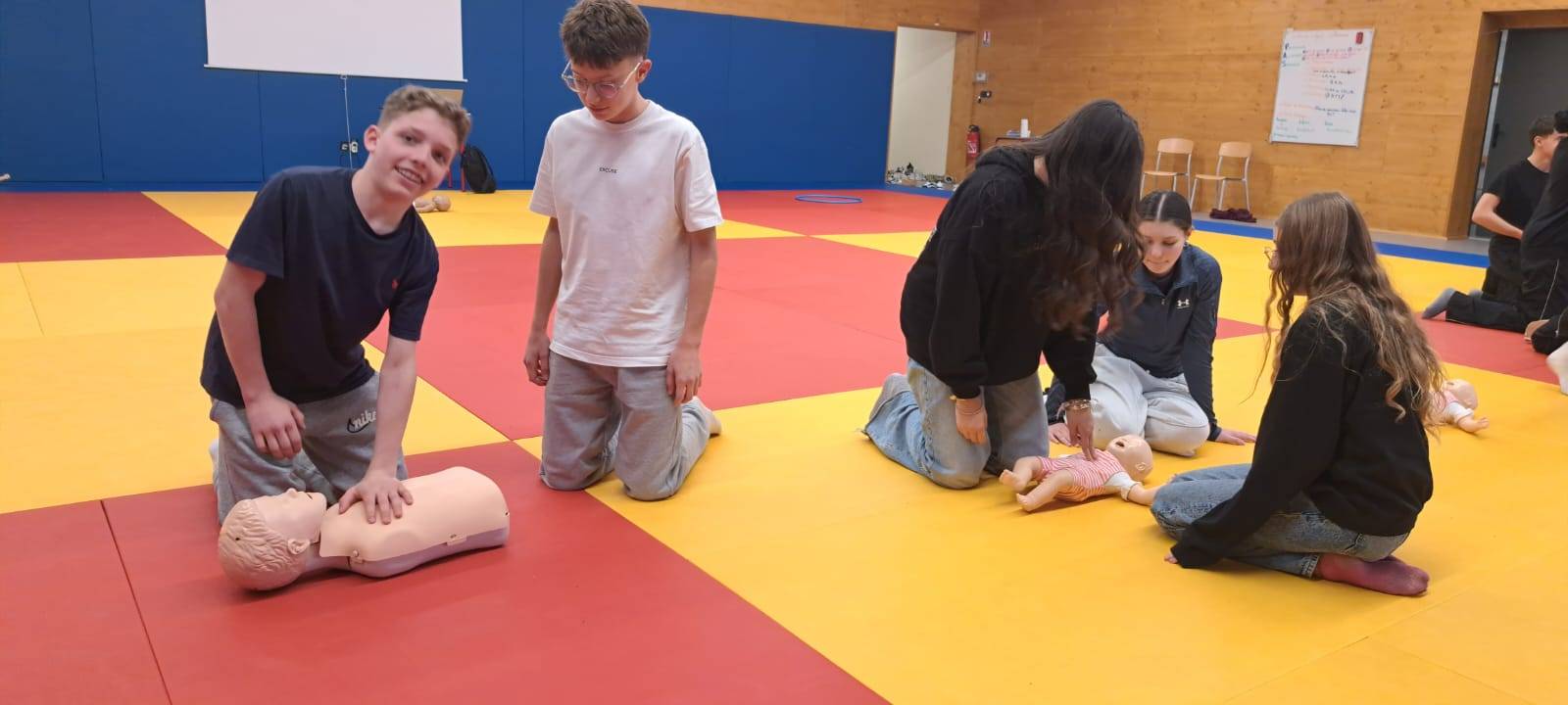 Suite à une sensibilisation menée auprès des classes de troisième du collège, 80 élèves ont répondu présents et se sont engagés dans une formation complète de 7 heures pour apprendre les gestes qui sauvent.