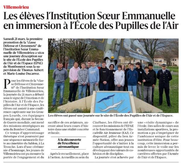 Participation à la cérémonie de commémoration dédiée aux soldats du Groupe Lourds de l’Armée de l’Air, un moment empreint de respect et de recueillement en hommage à leur engagement et à leur courage. Cette cérémonie a été suivie d’une visite de l’École des Pupilles de l’Air, où l’engagement et le sérieux des élèves ont été particulièrement mis à l’honneur.