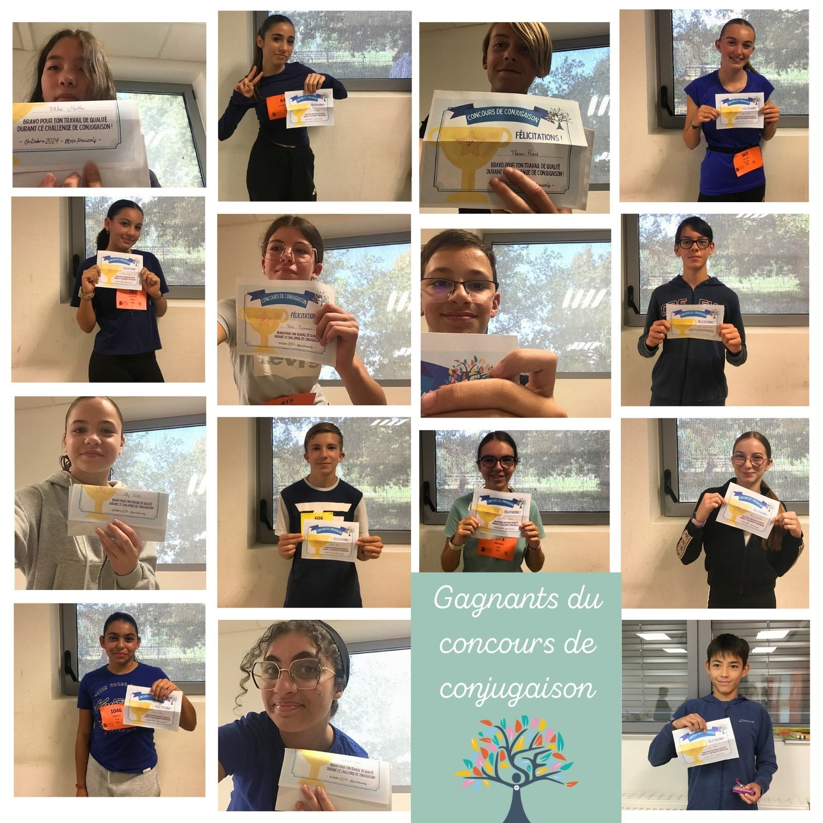 Félicitations aux élèves de 4n3 et 4n4 qui ont obtenu de beaux résultats lors d'un concours de conjugaison.